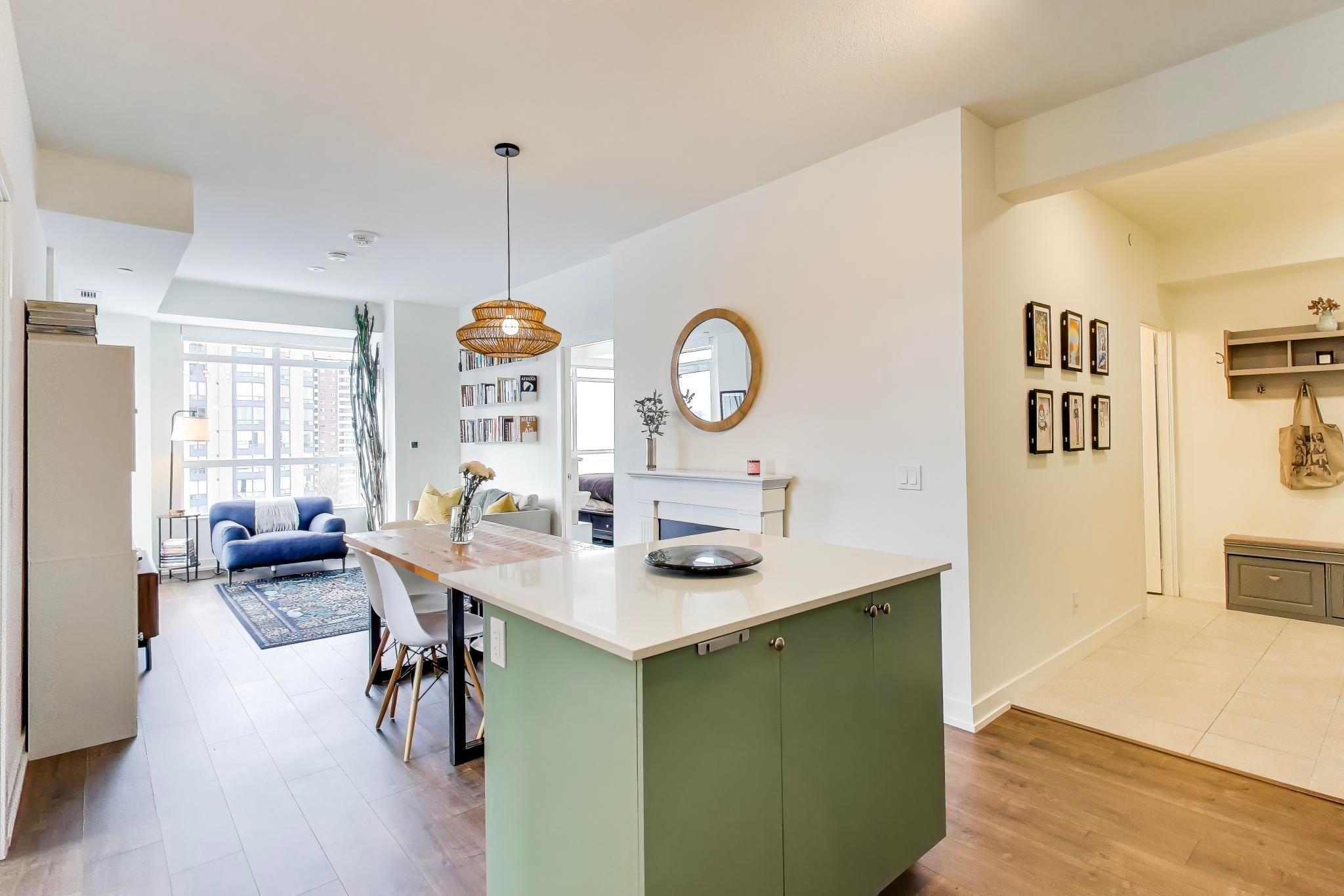 1041 sq ft bright and spacious 3-bedroom, 2-bath corner unit offers a highly functional layout where every square foot is thoughtfully used, featuring rare 9-ft ceilings available on select floors, laminate flooring, and quartz stone countertops. Located in weston, recently named toronto life's #1 neighbourhood to buy in (october 2025), this well-maintained home showcases pride of ownership throughout and enjoys serene, unobstructed views of the humber river and stunning sunsets, perfect for nature lovers and those seeking a calming retreat after a long day or while enjoying morning coffee. Developed by reputable non-profit builder options for homes, the building is professionally managed with low maintenance fees that help preserve long-term value. Enjoy convenient access to the eglinton crosstown and up express just steps away, offering a quick connection to pearson airport and union station. With abundant natural light, airy living spaces and a peaceful riverside setting, this unit presents an exceptional opportunity for comfortable and balanced city living.