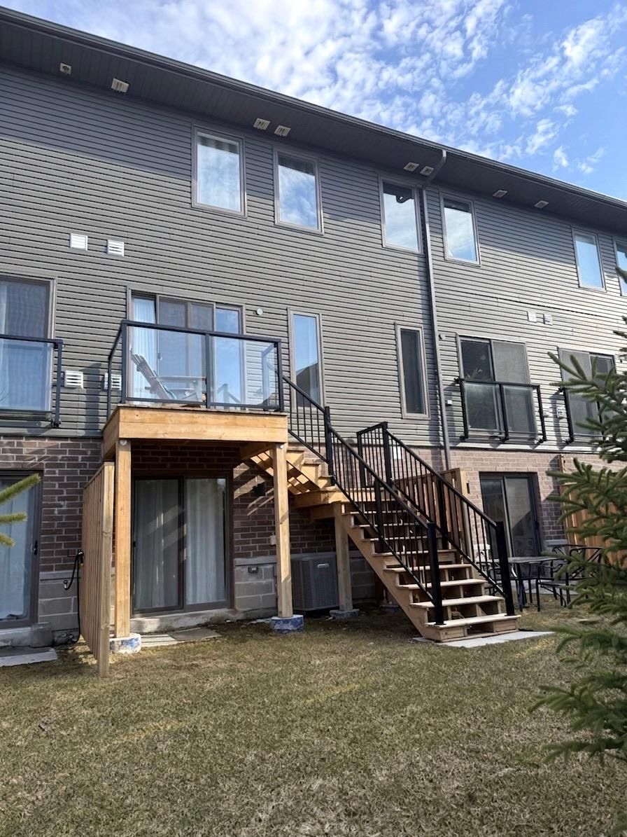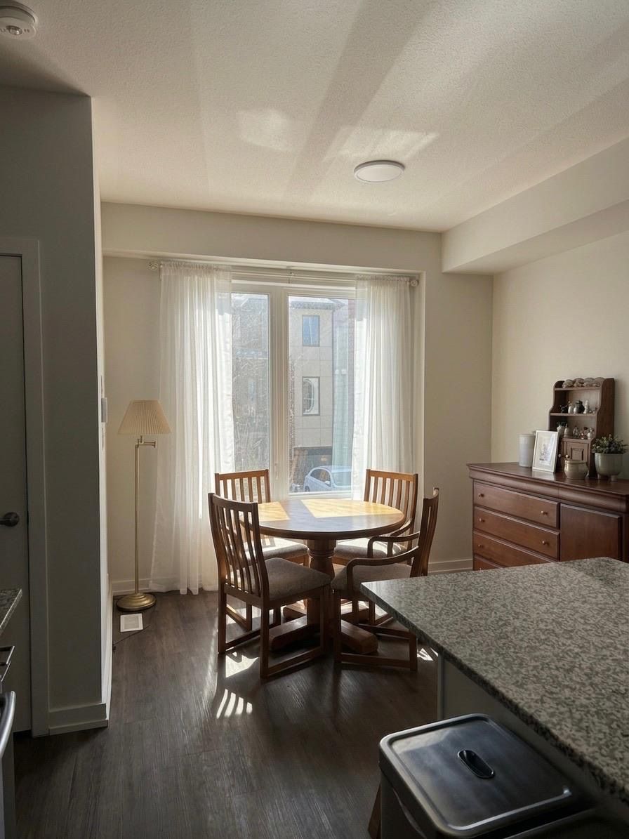 Absolutely gorgeous townhome @a top & most desirable location in collingwood. Live between mountains and lake in collingwood! Stunning, modern 3-story townhouse. Next to cranburry trail. 9' high ceiling, luxurious plank vinyl flooring& matching oak stairs. Granite kitchen countertop plus glass balcony facing green plants. Near blue mountain, mins to entertaining district, groceries,shoppings. Skiing, tracking, biking, cruise and enjoy blue waters and beaches.