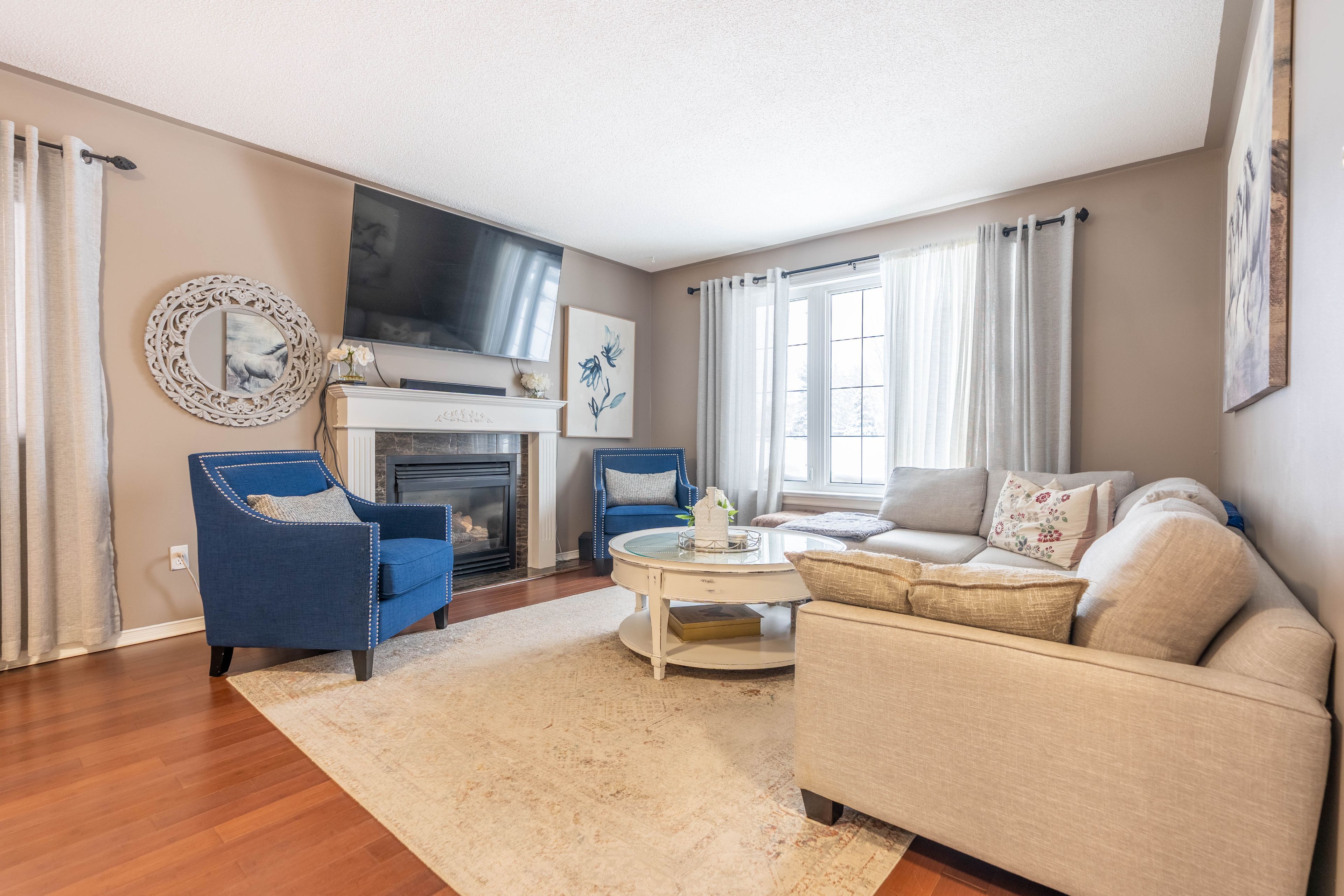 • Hardwood floors and gas fireplaces create a welcoming atmosphere.
