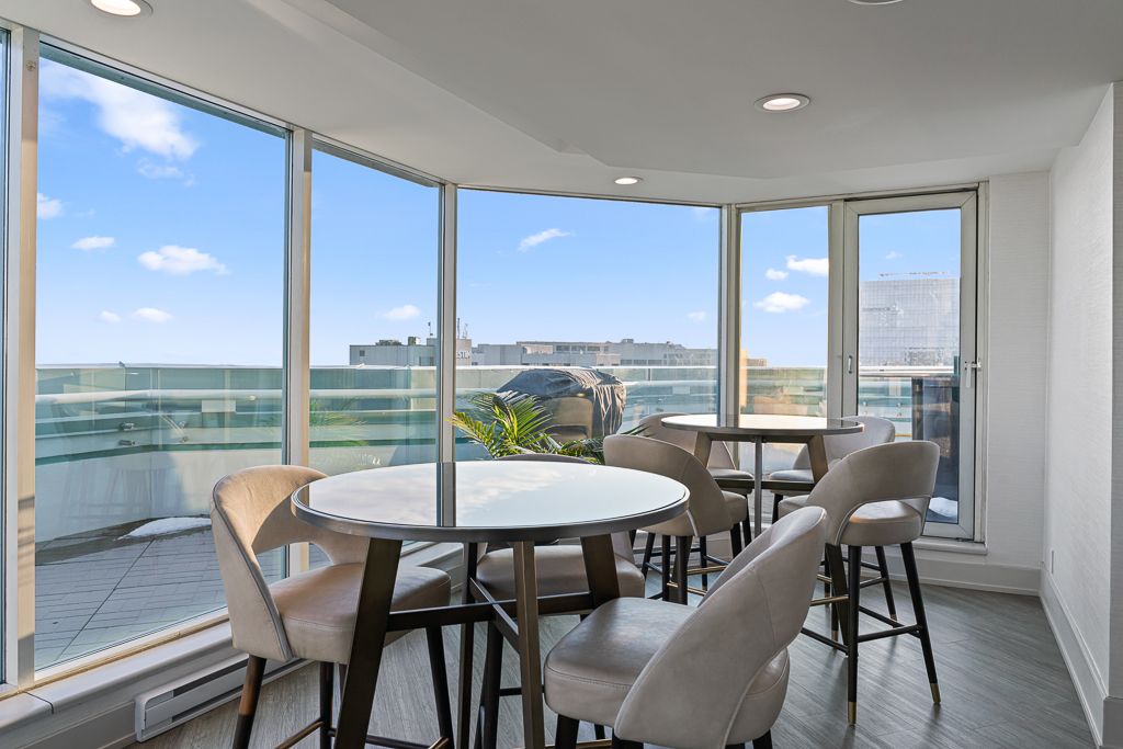 • Floor-to-ceiling windows offer serene North views of the city.