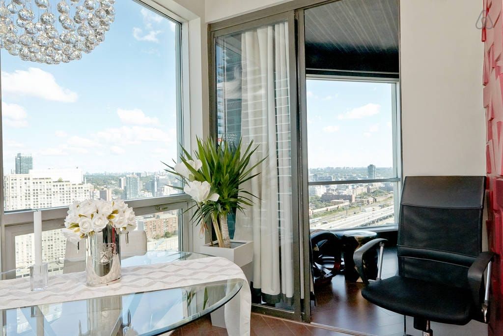 Experience harbourfront luxury in this stunning 750 square foot penthouse at 3604-10 yonge street. This newly renovated custom designed 1+1 unit showcases 9 foot ceilings, hardwood floors and floor-to-ceiling windows that frame spectacular city views from every room. The thoughtfully designed kitchen features stainless steel appliances and custom-built cabinetry, perfect for culinary enthusiasts. The oversized master bedroom includes mirrored closet along the full length of aside wall and the spacious solarium provides flexibility as an additional bedroom or home office. Beautifully renovated 6-piece bathroom includes oversized shower and big deep bathtub. Exquisite custom-tray ceilings paired with high-end, adjustable lighting create a tailored, luminous ambiance throughout the entire home. This exceptional property includes one underground parking space and one storage locker. The maintenance fees cover all utilities plus full hd bell tv and 1. 5tb internet service. Impressive 10,000 square feet of amenities with both indoor and outdoor pools, hot tub, sauna, professional fitness center and 360 sky-lounge and outdoor bbq areas. Location is everything. Union station sits just 200 meters away, connecting you to toronto's entire transit network. Grocery stores, sports bars, restaurants and coffee places are within very short walking distance. Professional concierge services and 24-hour security ensure safety, piece of mind and convenience witht his stunning unique penthouse. *for additional property details click the brochure icon below*