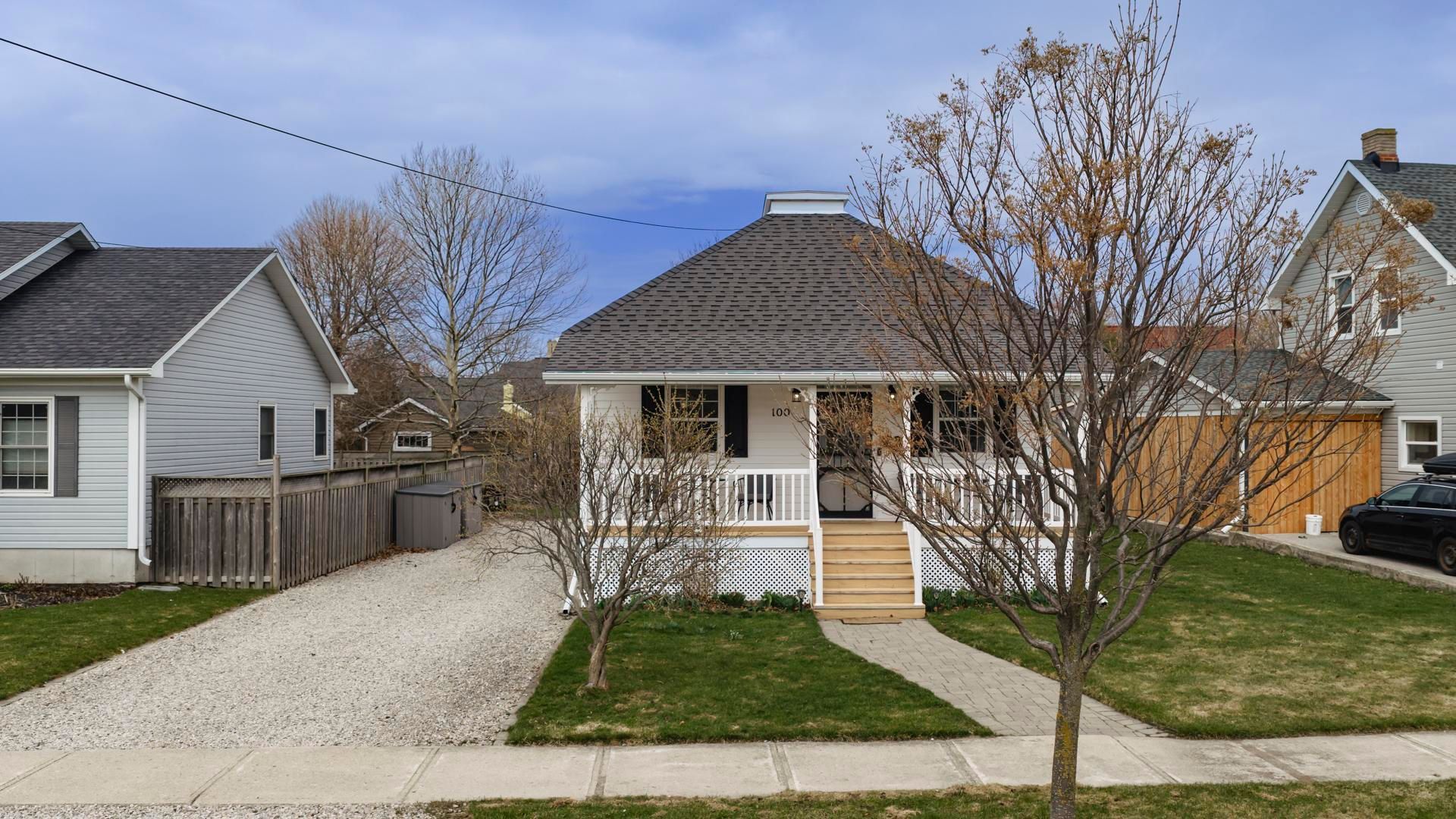 Located in a sought-after pocket of goderich's west end, 100 arthur street is a stunning example of how classic charm and modern luxury coexist. This 2+1-bedroom bungalow has undergone a top-to-bottom transformation, emerging as a truly turn-key home where every inch has been updated. From the moment you pull up, the superb curb appeal and quiet neighborhood atmosphere set the tone, situated just across the street from goderich's most adorable tiny public outdoor space, octogenarian park. Inside, the home offers a bright main level with an airy, spacious feel thanks to 9' ceilings throughout, soaring to 10' in the living room. The fully appointed kitchen designed for the modern chef, features a gas stove hookup and a sophisticated built-in combi wall oven/convection microwave. Beyond the aesthetics, the home provides total peace of mind with a newly upgraded 200-amp electrical panel and whole-home surge protection. The location is unbeatable, offering a lifestyle defined by convenience and beauty. You are steps from the breathtaking lake huron lakefront and pristine beaches, and a short walk to the downtown district's amazing dining, cafes, and vibrant farmers' markets. The interior is further complemented by a remarkable lower level featuring rare 8-foot ceilings, offering incredible potential for a separate income-generating suite or a private family flat with space for two additional bedrooms. A standout feature remains the spacious front porch - the perfect setting for a morning coffee or a glass of local beer or wine while soaking in the peaceful surroundings. This is a rare opportunity to own a fully revitalized home in a prime location where all the work has been done for you. Do not delay-schedule your private showing today and experience the incredible vibe at 100 arthur street.