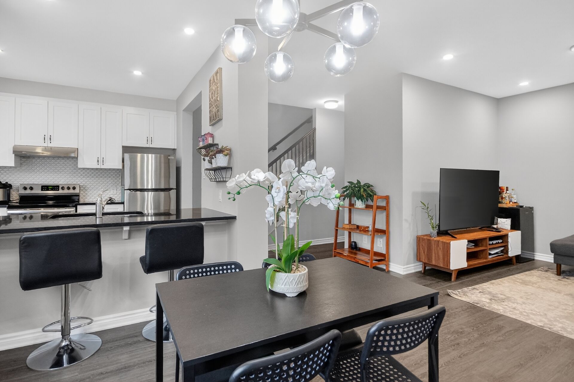 • Bright open-concept main floor with high ceilings and stylish flooring.