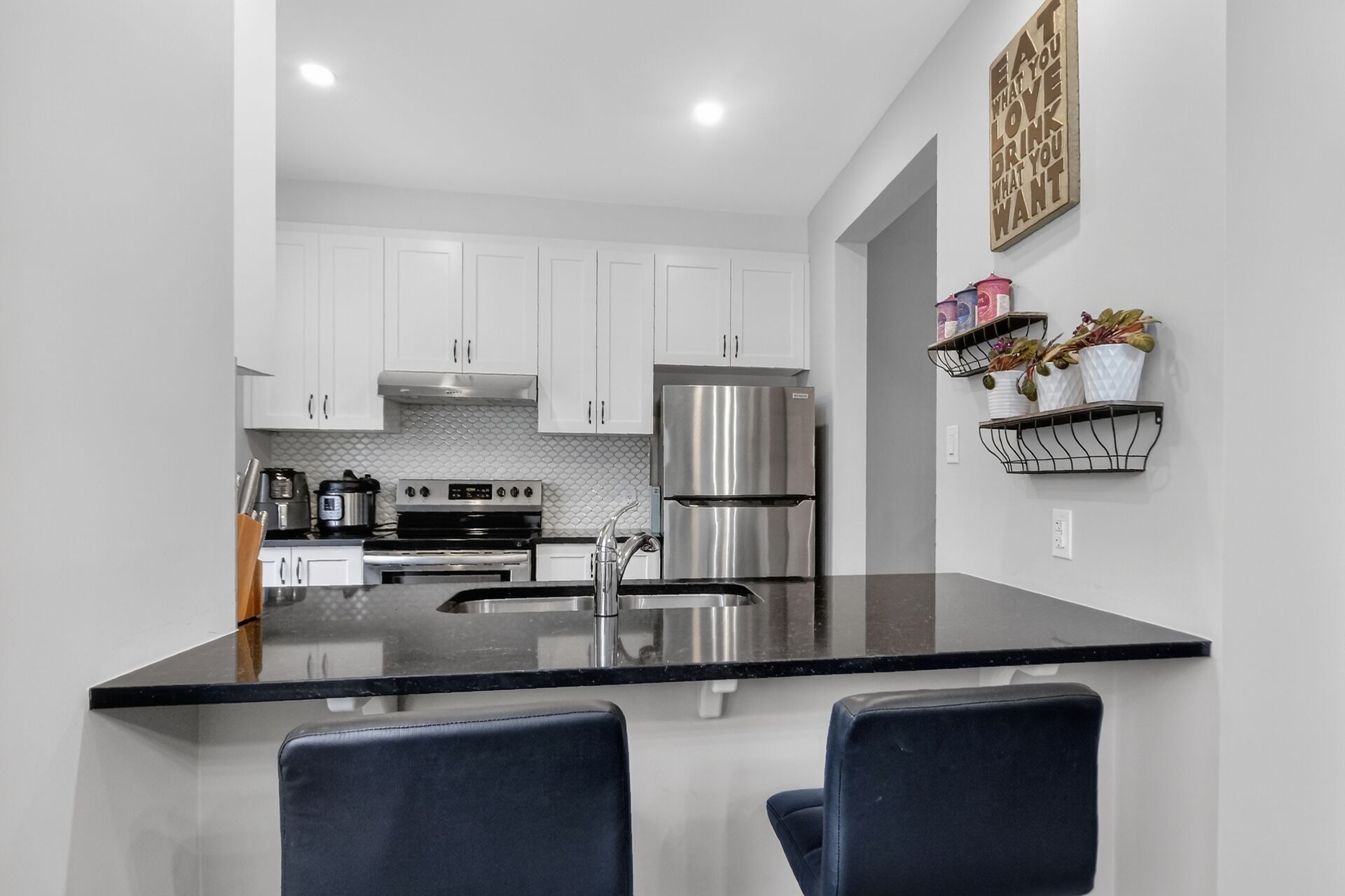 • Gourmet kitchen with quartz countertops and top-tier appliances.