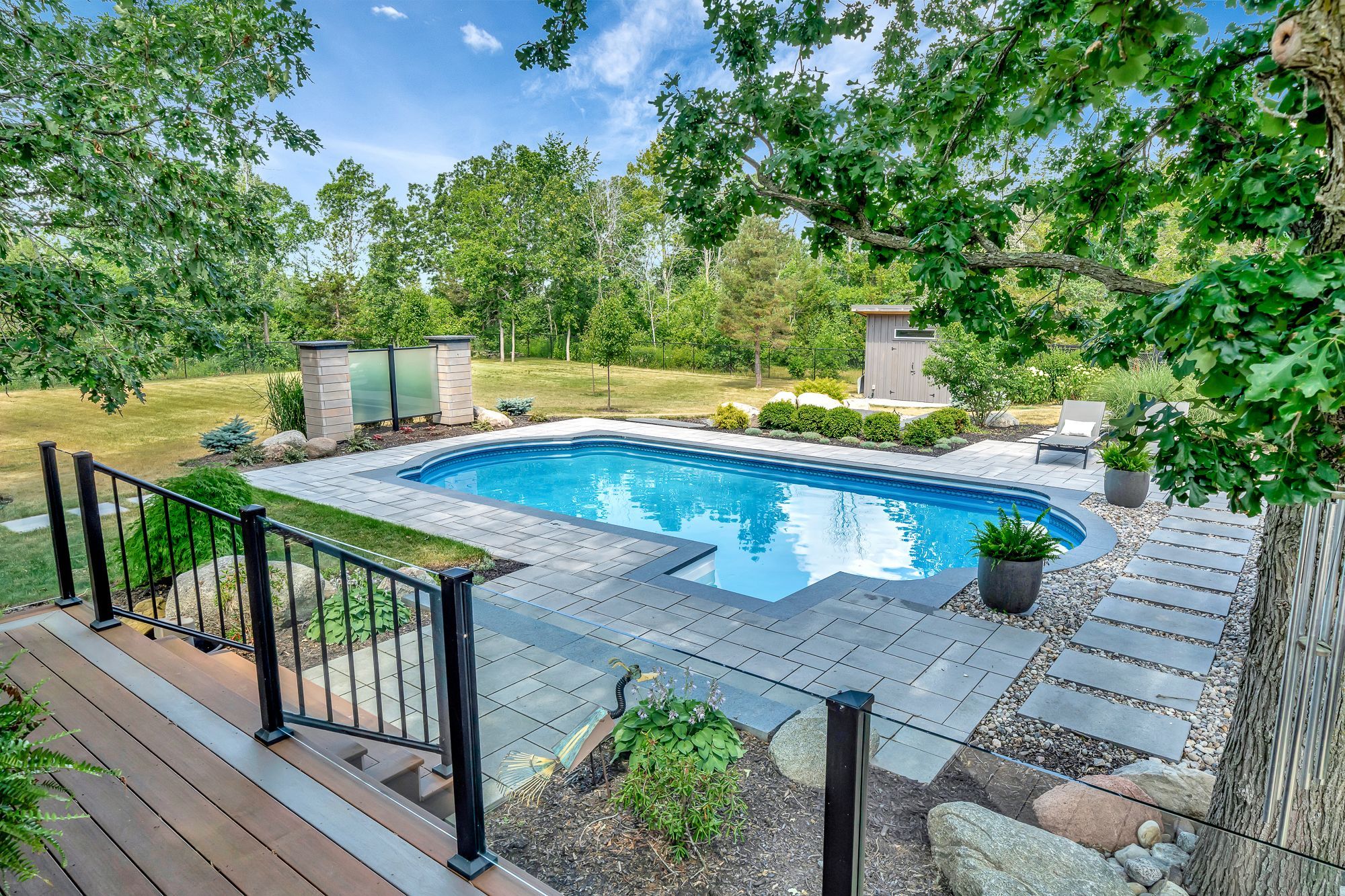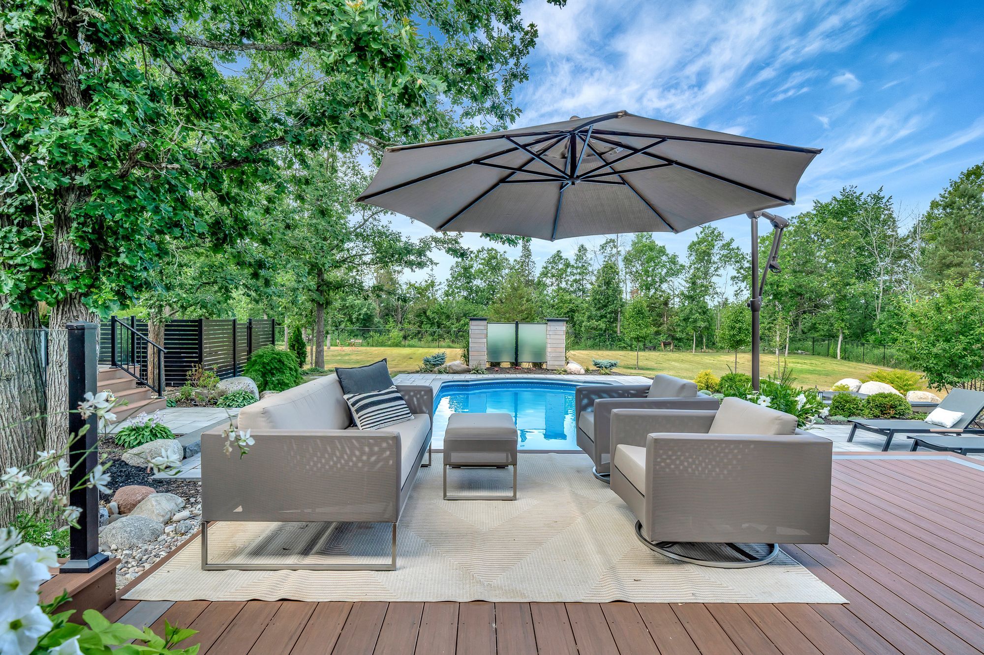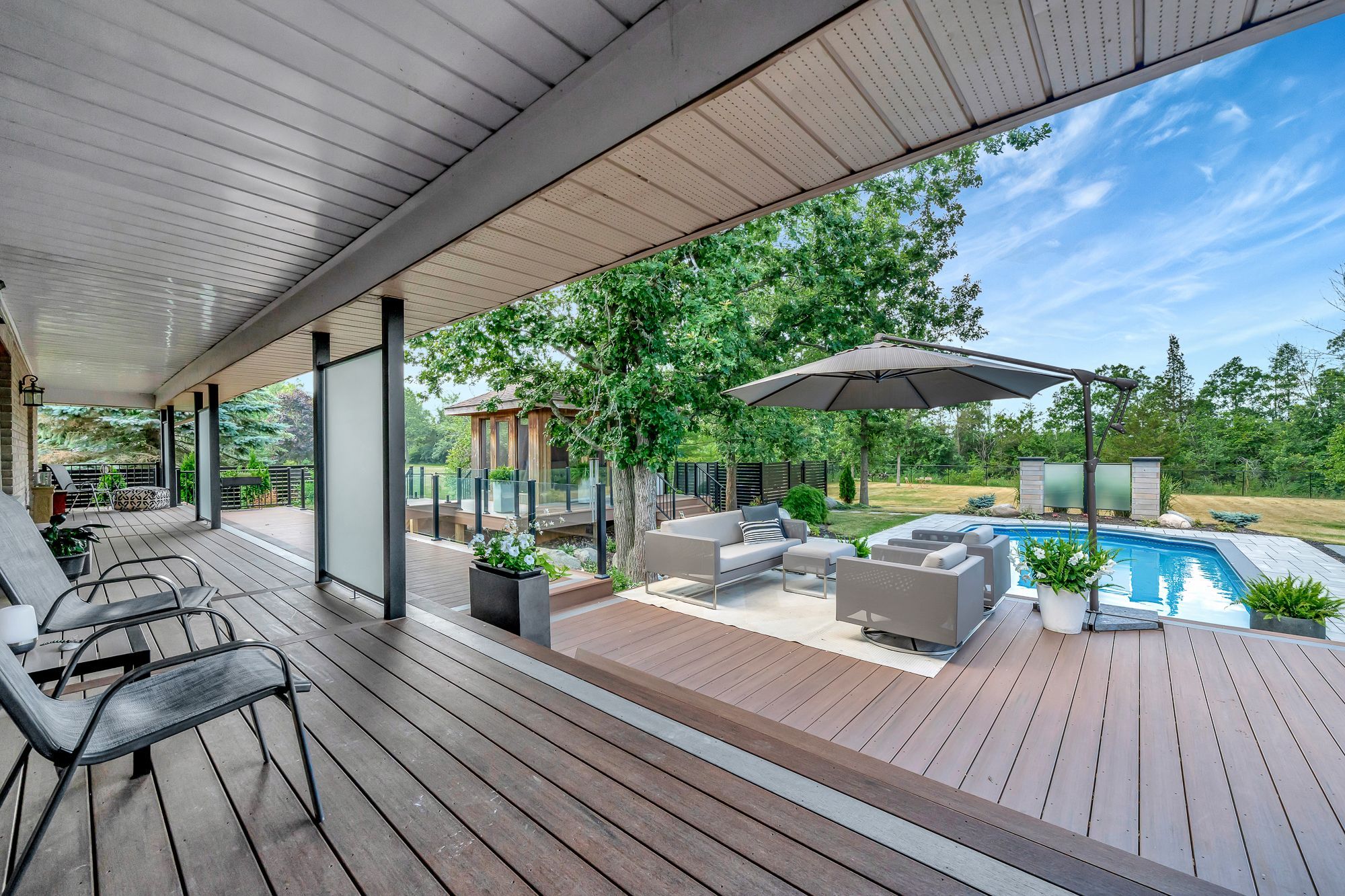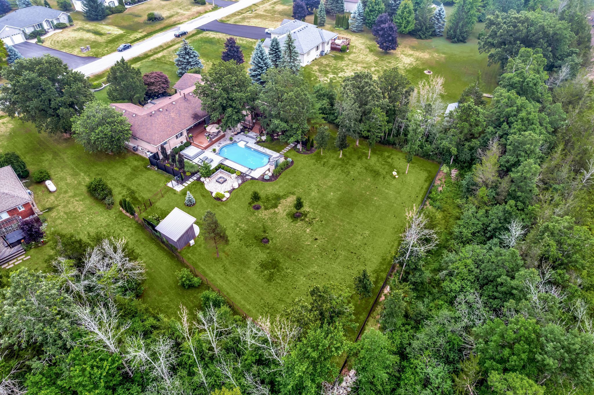 • Large, landscaped lot with a private outdoor oasis featuring a pool and gazebo.