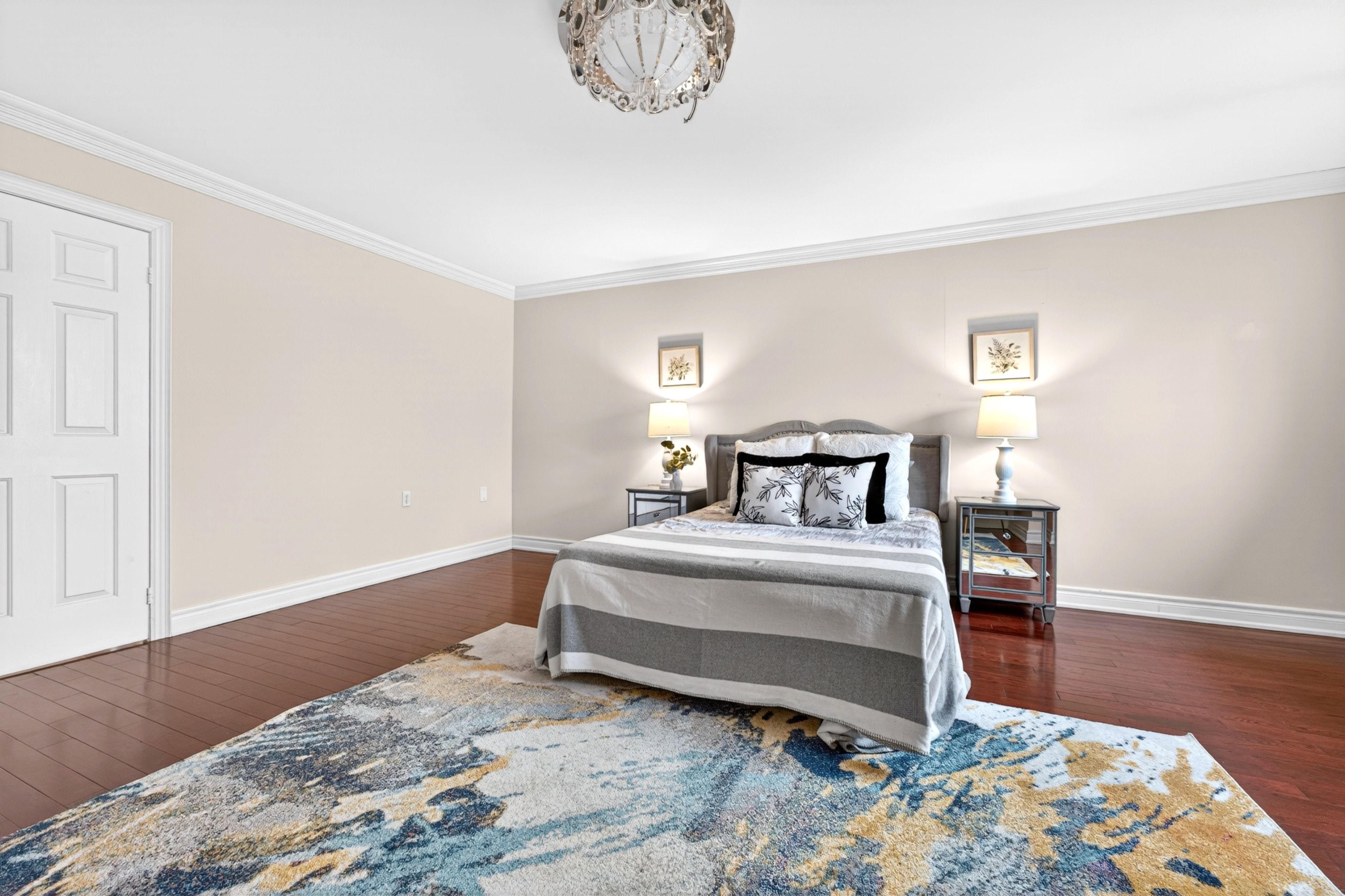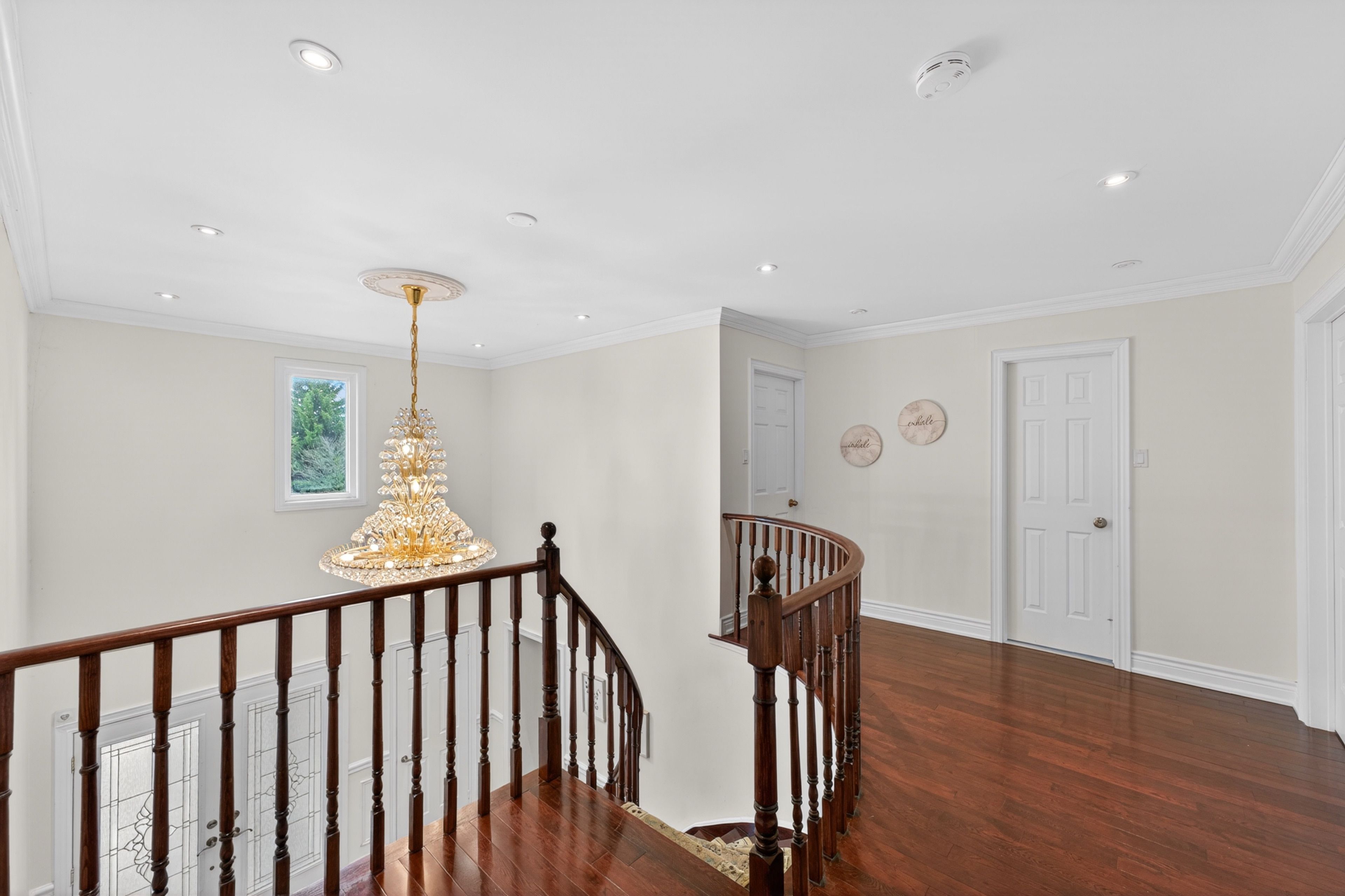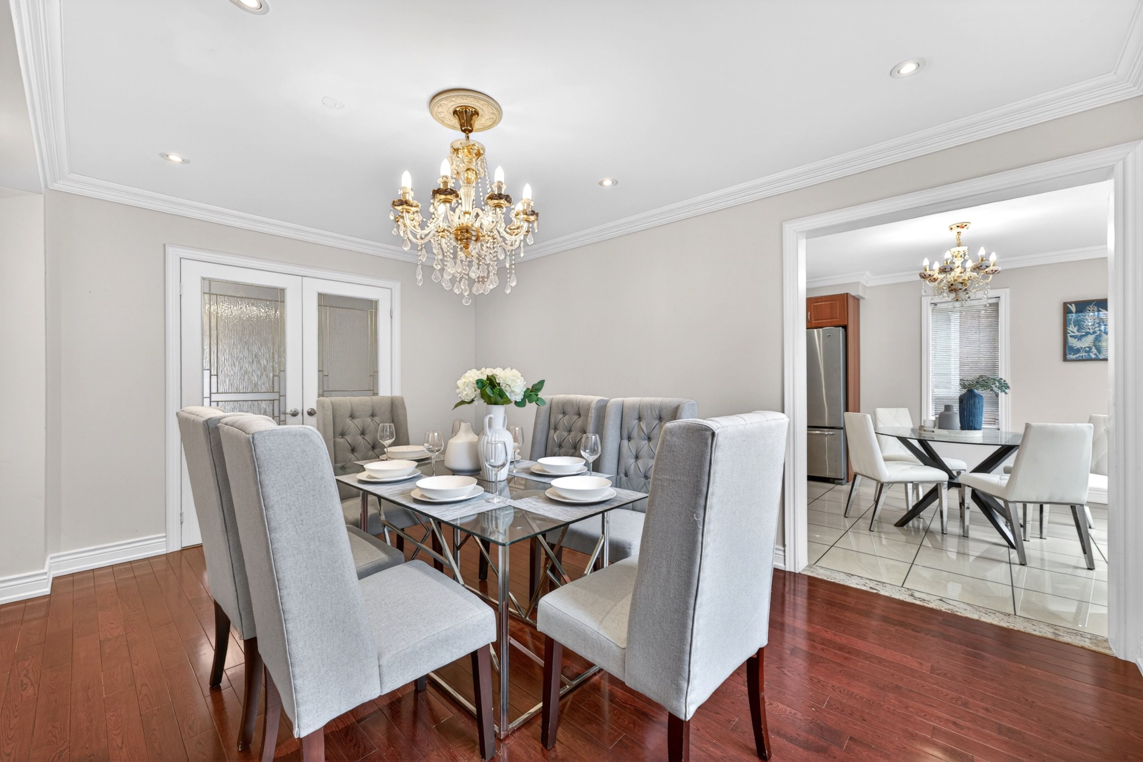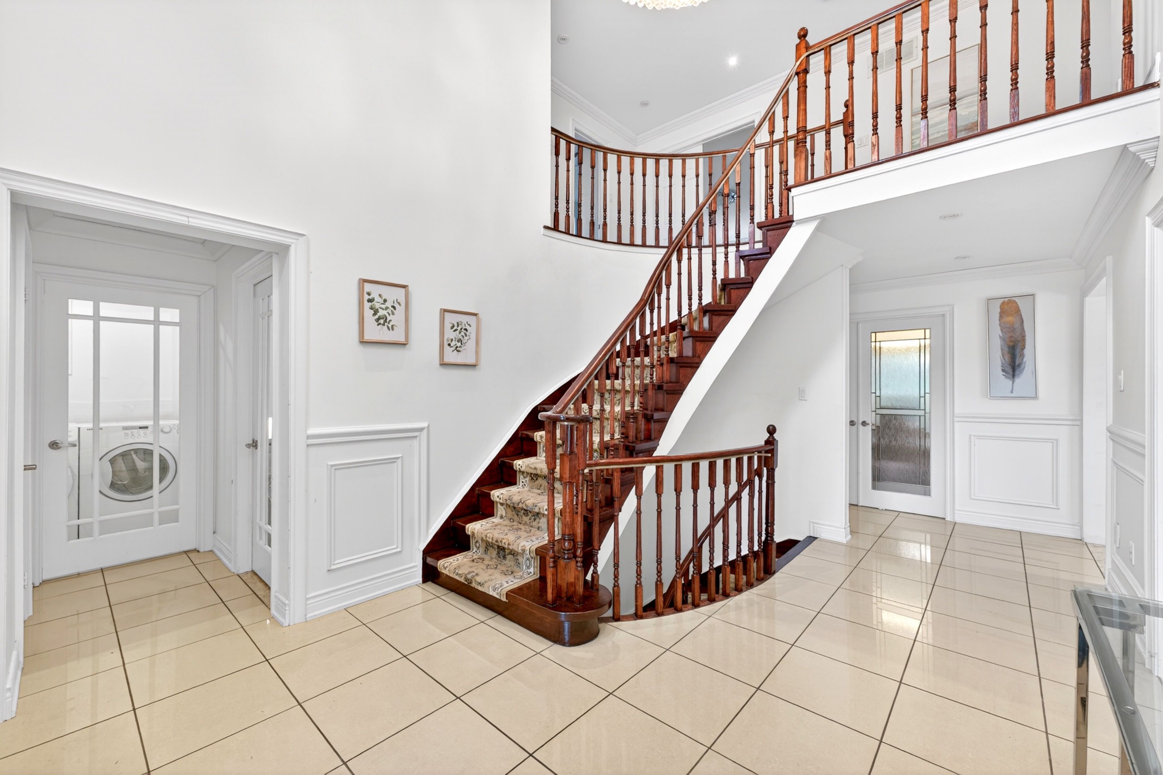 • Impressive 16' entrance with stunning crystal chandeliers.