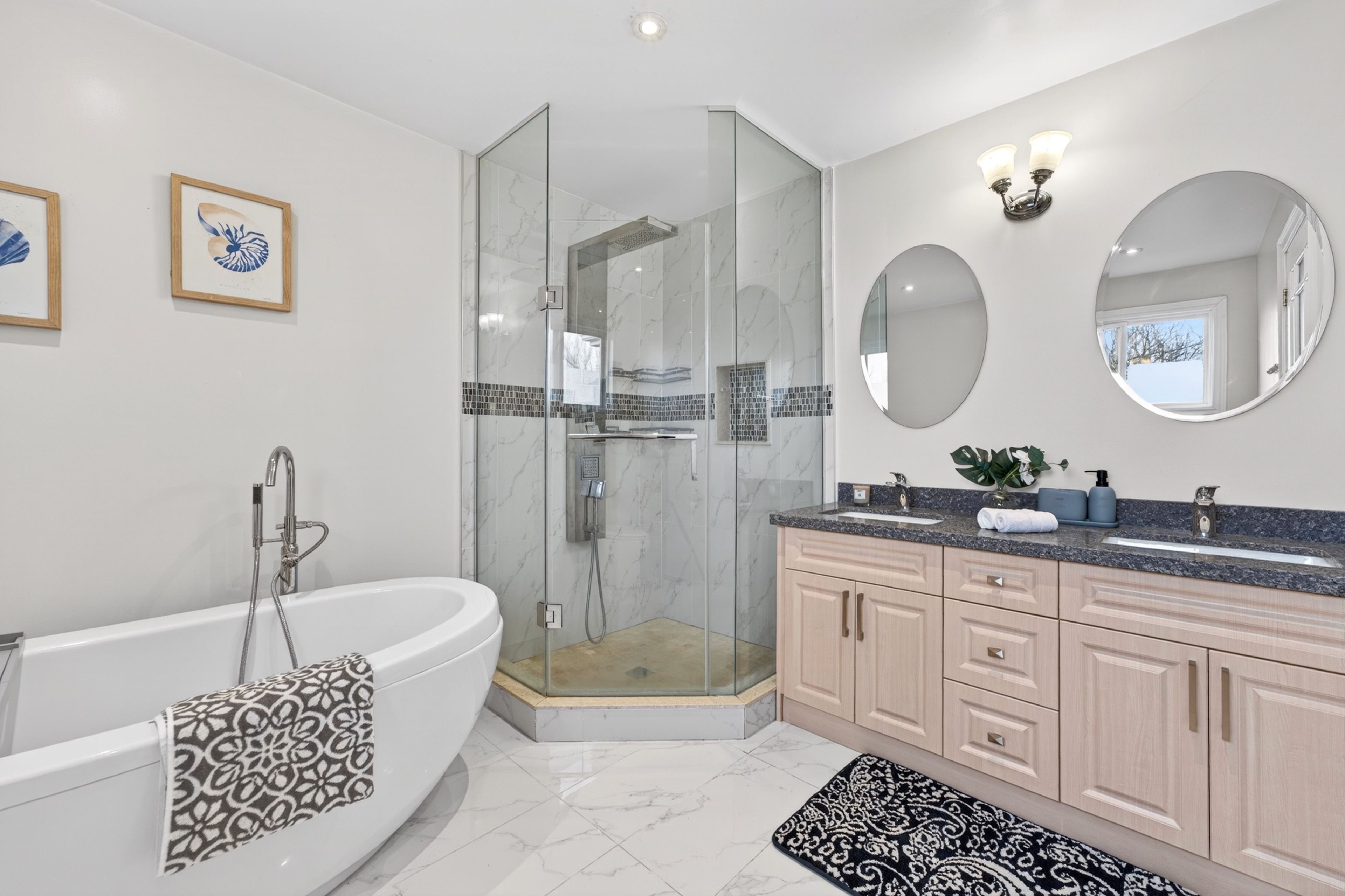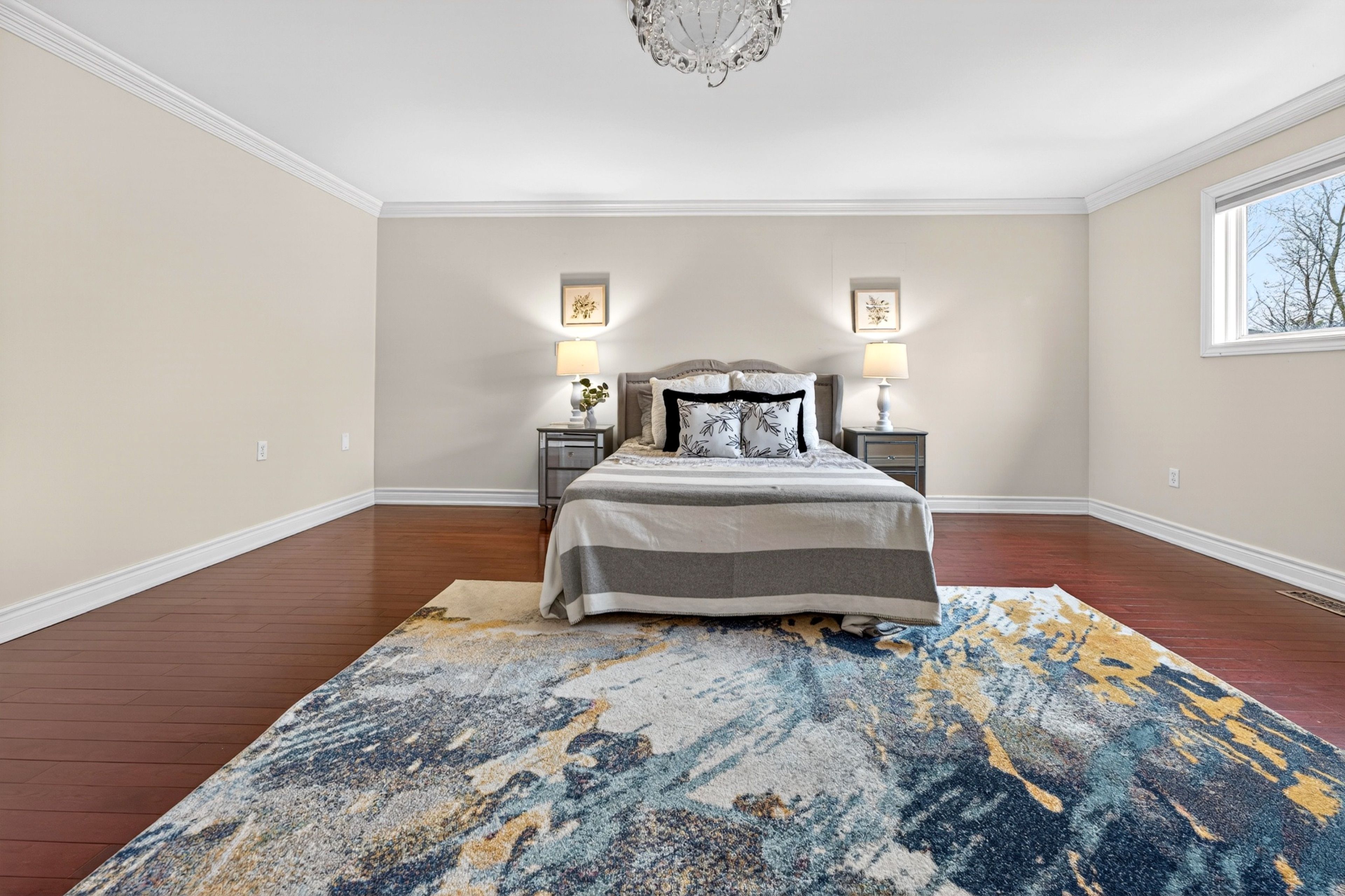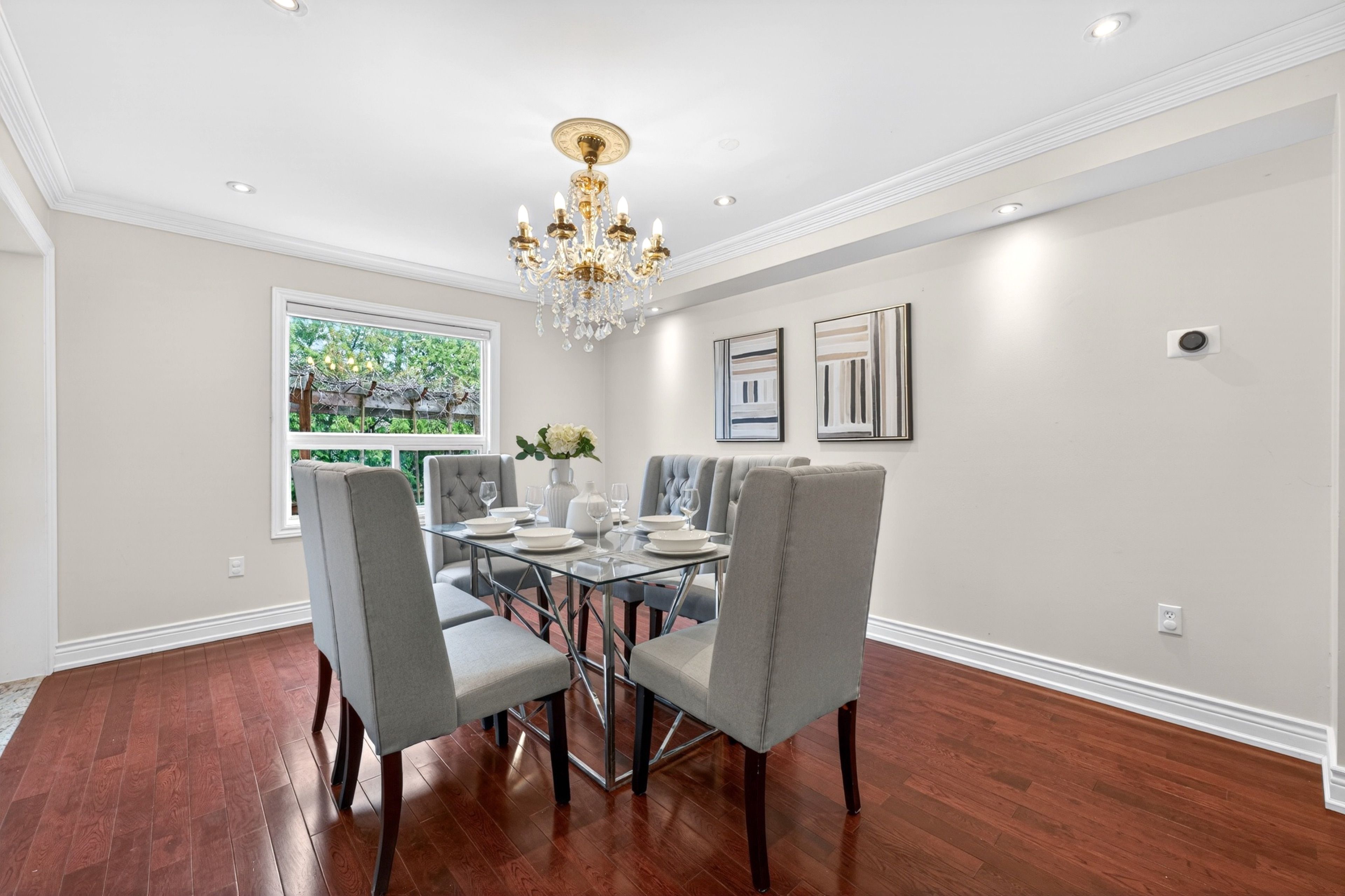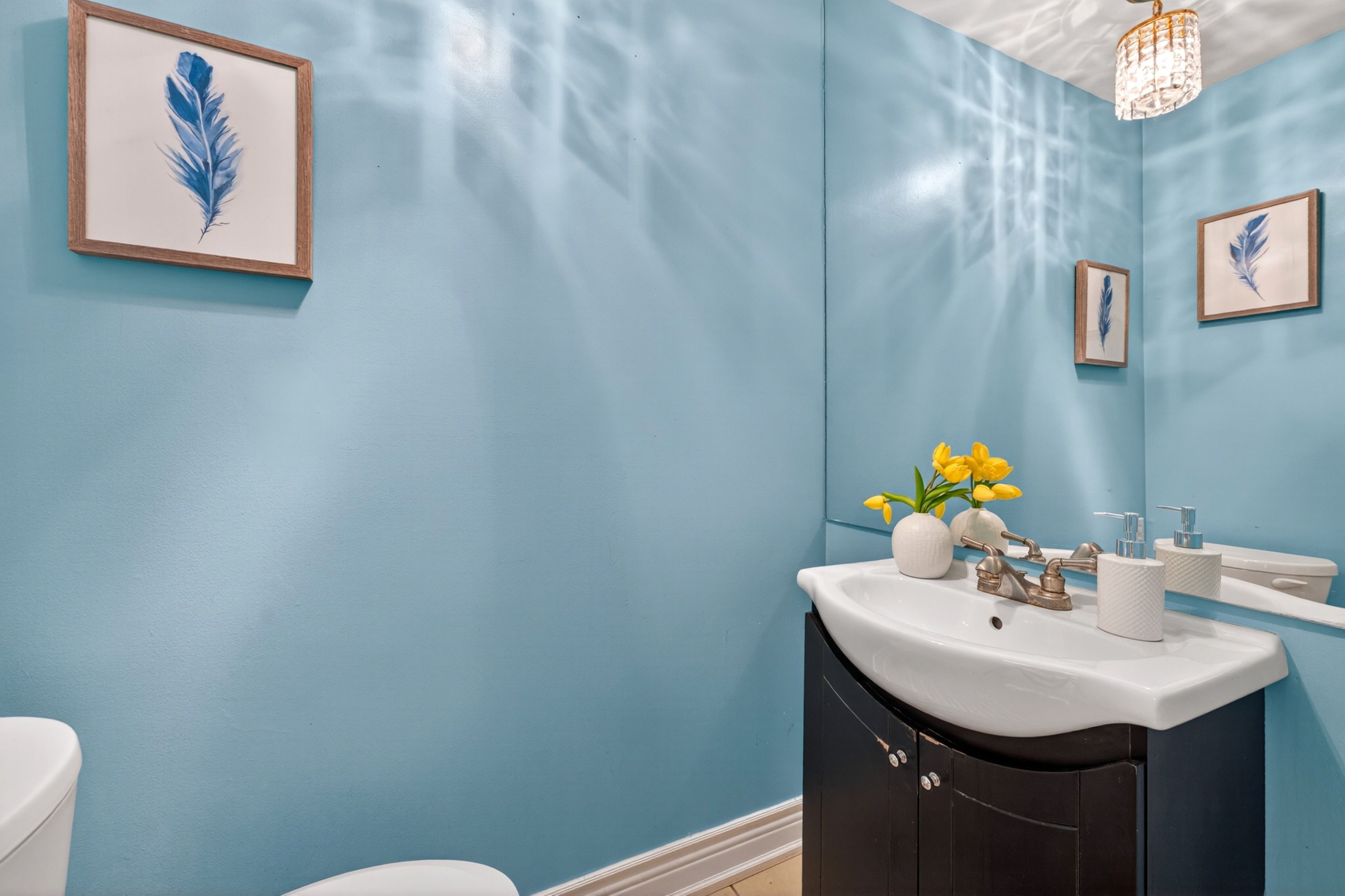 • Impressive 16' entrance with stunning crystal chandeliers.