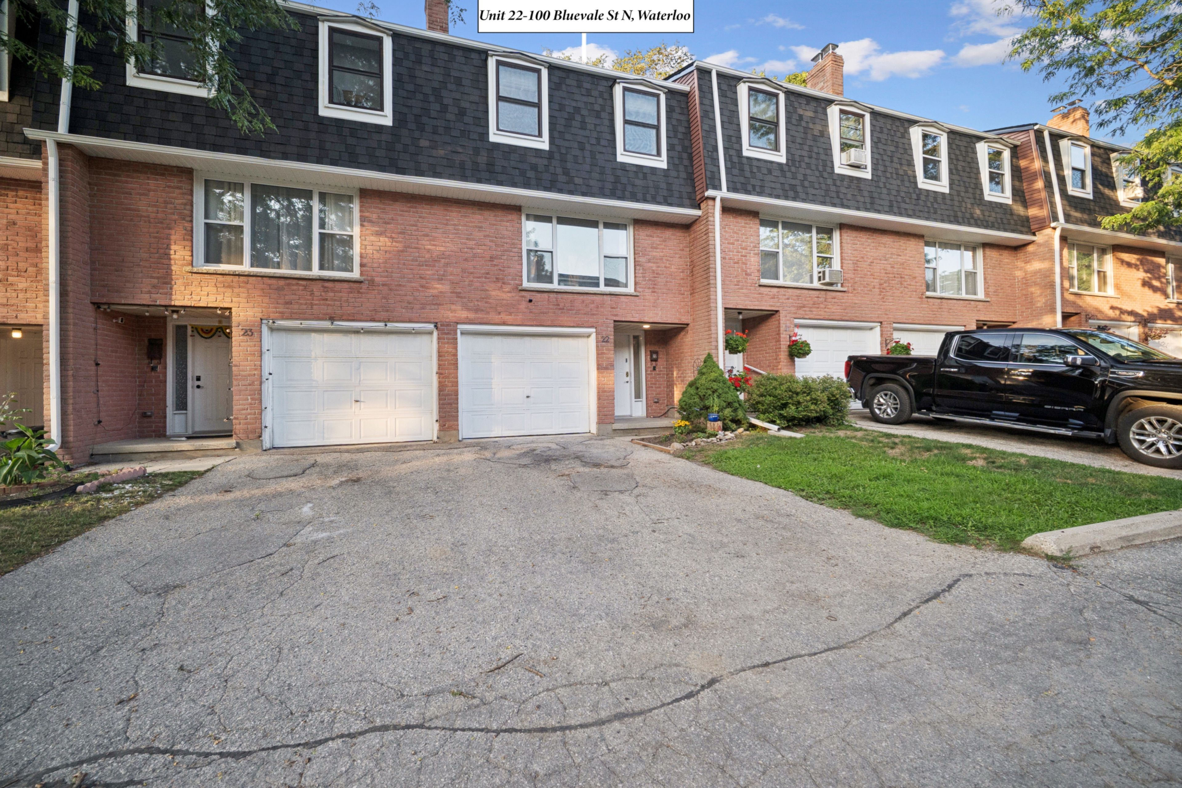 Welcome to 100 bluevale street north, unit 22 a beautifully fully renovated multi-level condo townhouse that offers turnkey living in one of waterloos most desirable and convenient neighbourhoods. Spent over $100k in recent upgrades, this home is fully updated from top to bottom, showcases impeccable craftsmanship, modern style, and thoughtful upgrades throughout. Step inside to an open-concept main floor that exudes warmth and elegance. Wide-plank flooring flows seamlessly through the bright living and dining areas, while the custom kitchen steals the show, full-height backsplash, soft-close cabinetry, stainless steel appliances, and designer lighting. Perfect for both everyday living and entertaining. Upstairs, you'll find three generously sized bedrooms with sleek finishes, updated closets, and no carpet. The spa-inspired bathroom features stylish tilework, a custom vanity, premium fixtures, a granite countertop, and a fresh, calming ambiance. A convenient powder room on the main floor adds function to form. Major mechanical upgrades include a new furnace, air conditioner, and water heater, along with updated plumbing, electrical outlets, switches, and insulation , offering peace of mind and energy efficiency for years to come. Outside, enjoy a private, backyard with a patio perfect for bbqs, morning coffee, or a peaceful retreat. This home is ideally located close to top schools like bluevale collegiate, lincoln heights ps, and st. Agnes. Grocery stores, coffee shops, restaurants, and daily conveniences are all within a short walk. Nature lovers and families will appreciate nearby parks, including harvard park, bechtel park, and waterloo park, with trails, playgrounds, and more. Minutes to conestoga mall, the university of waterloo, wilfrid laurier university, and major transit routes, including ion lrt. Stylish, functional, and move-in ready this home is perfect for professionals, families, or investors seeking quality and location in one complete package.