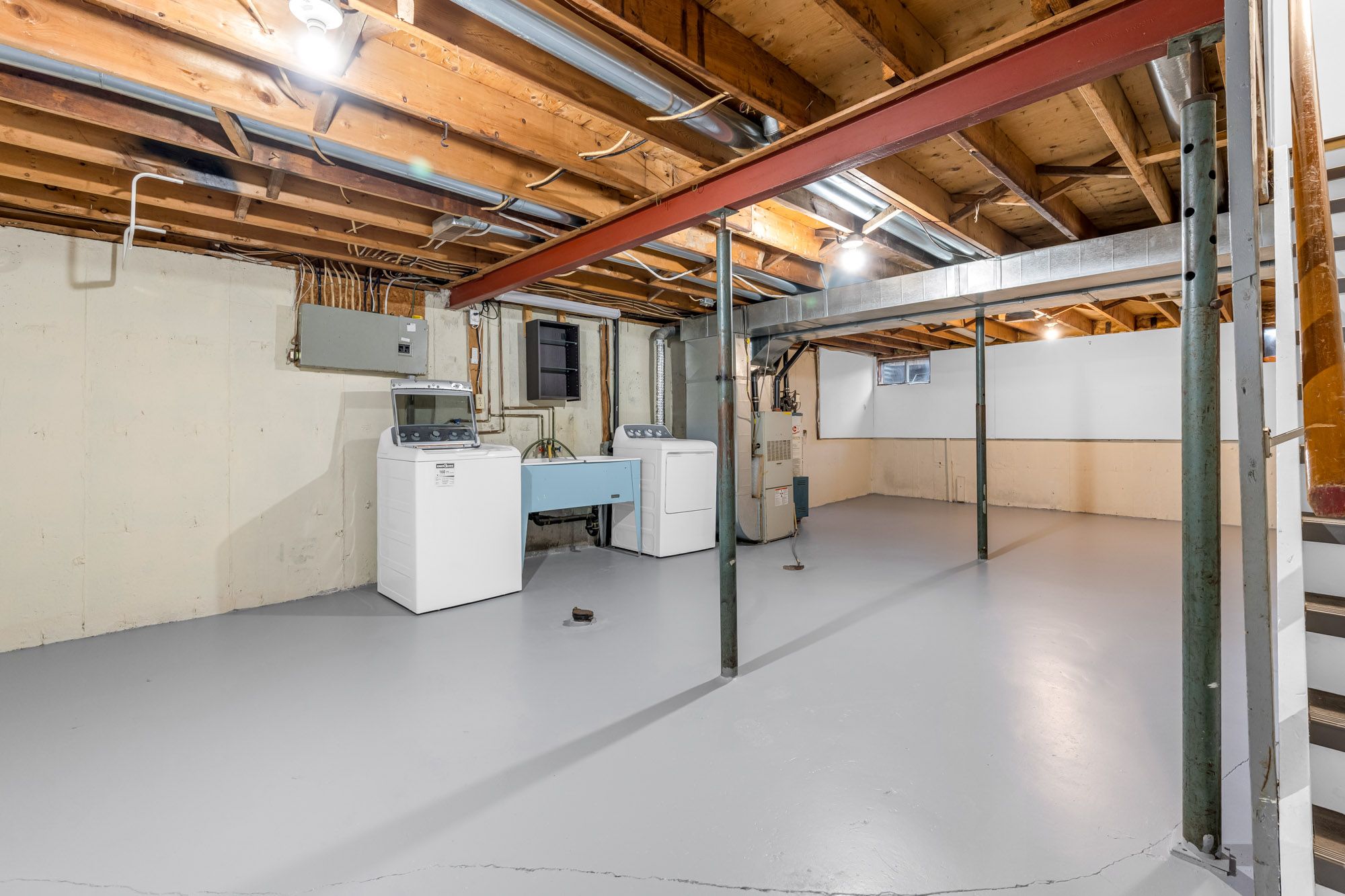 • Unfinished basement provides extra storage and room for activities.