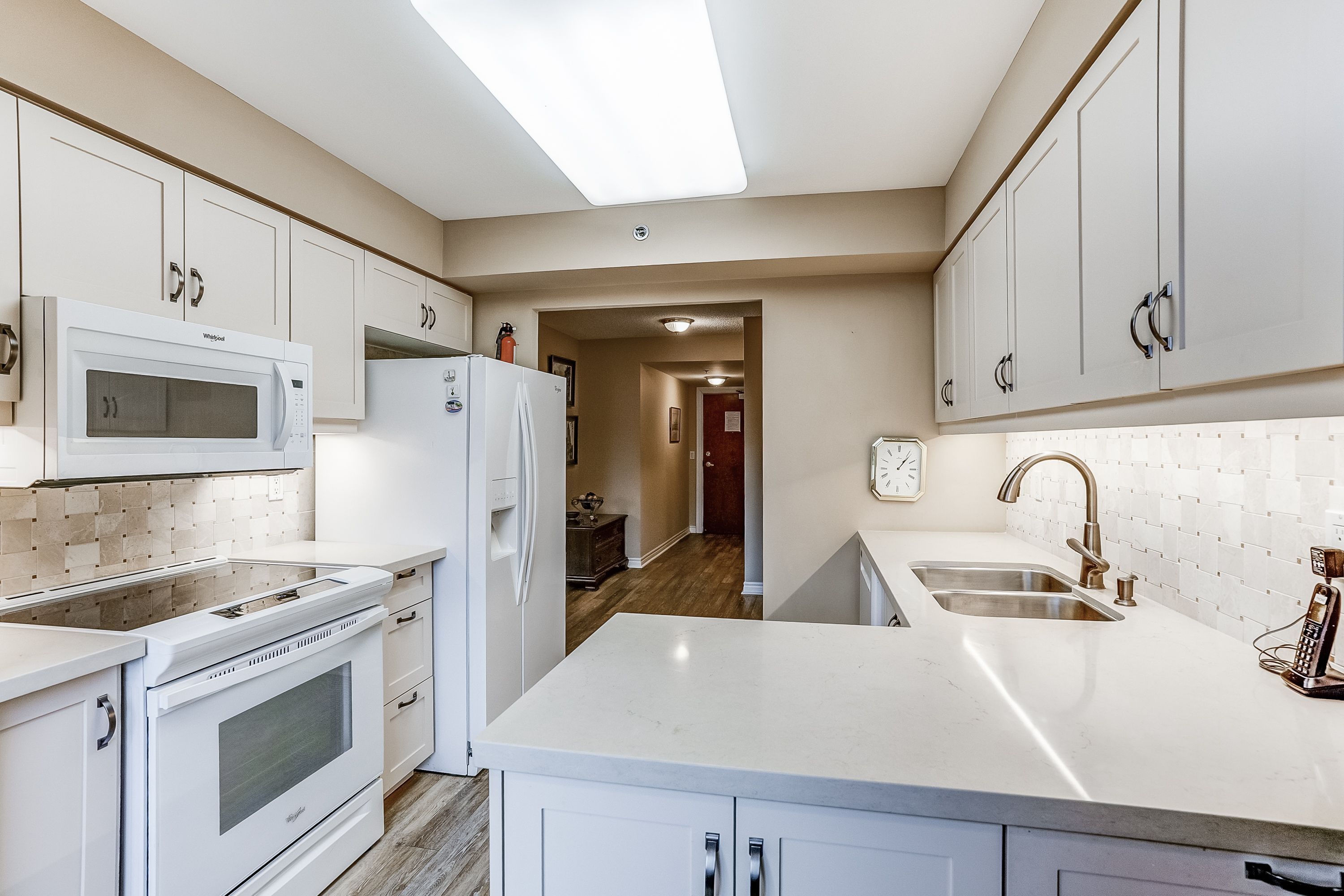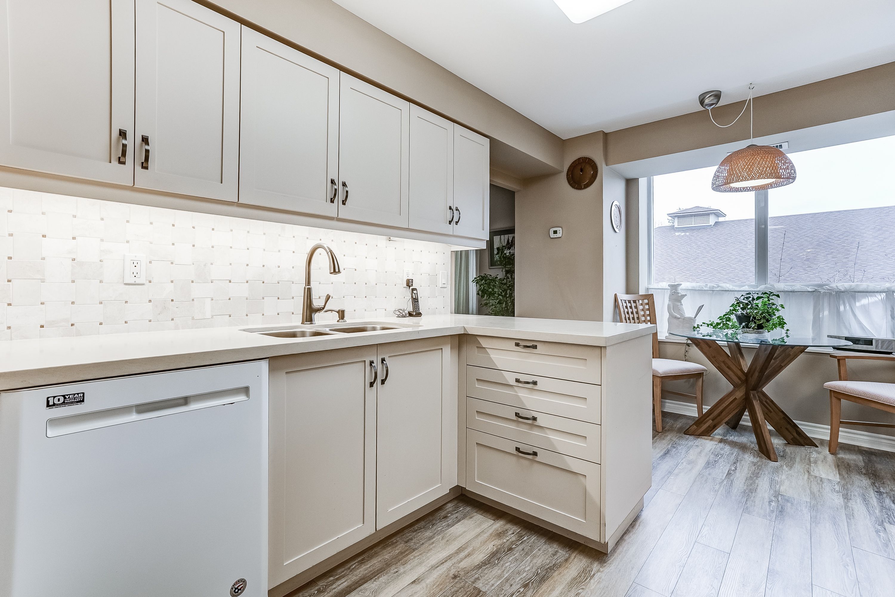 • Bright corner suite with two bedrooms, a den, and two bathrooms.