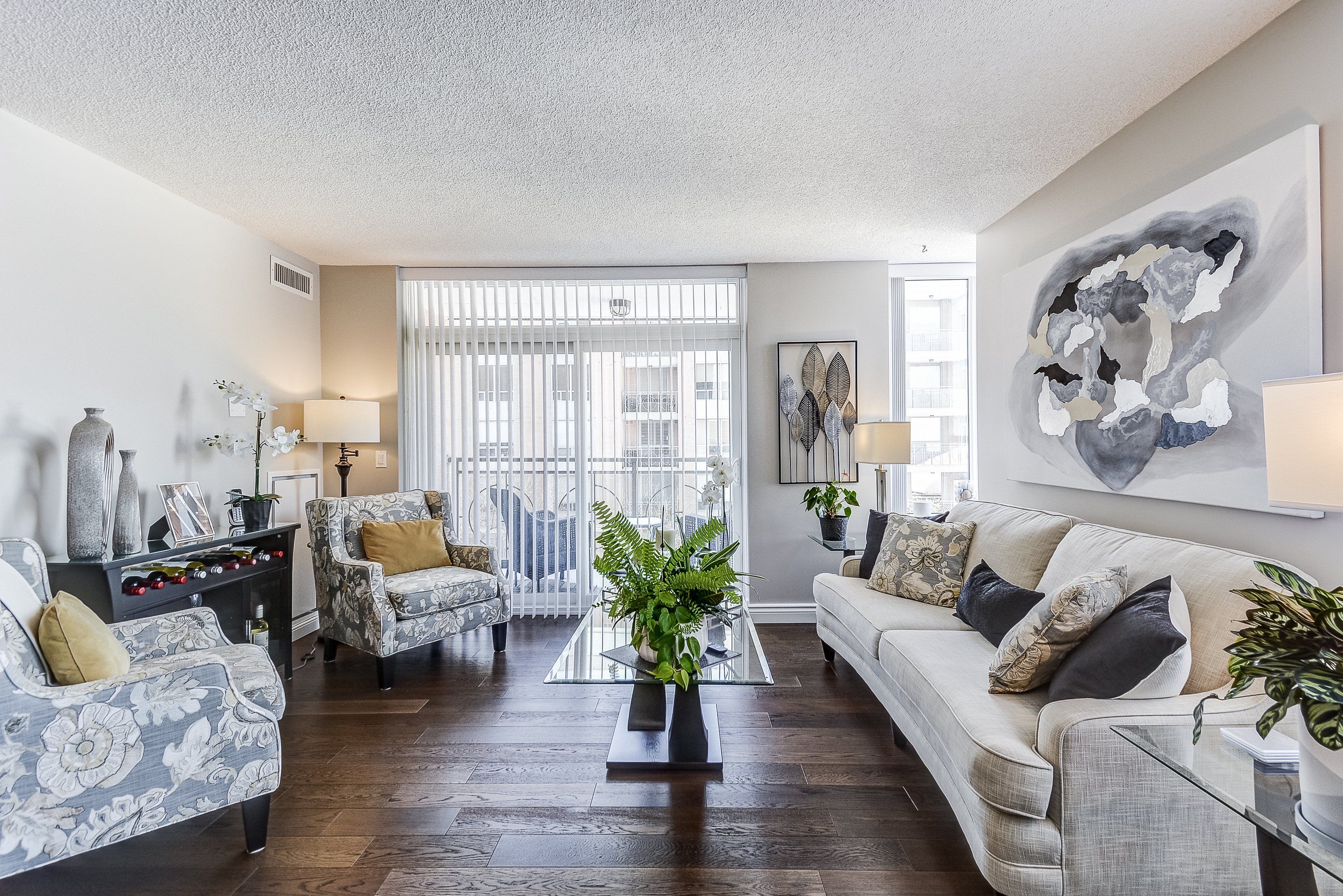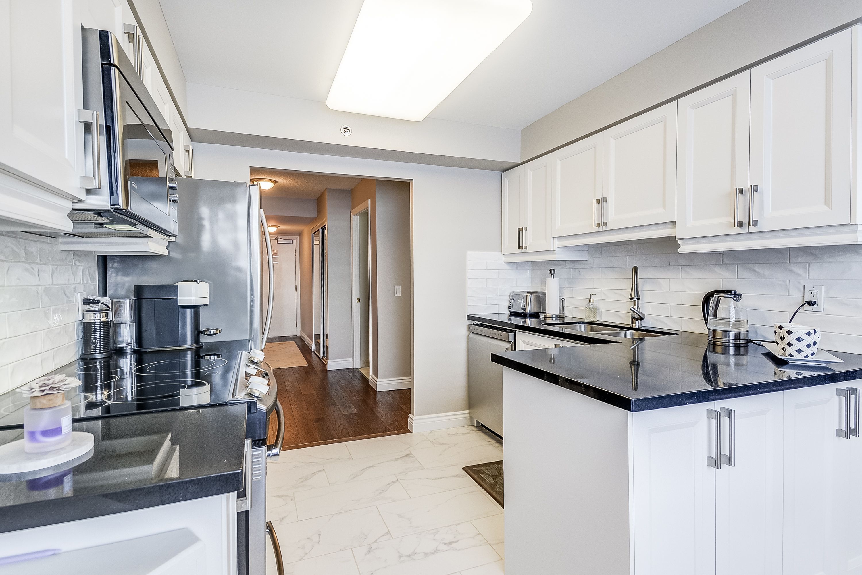 • Bright corner suite with two spacious bedrooms and a den.