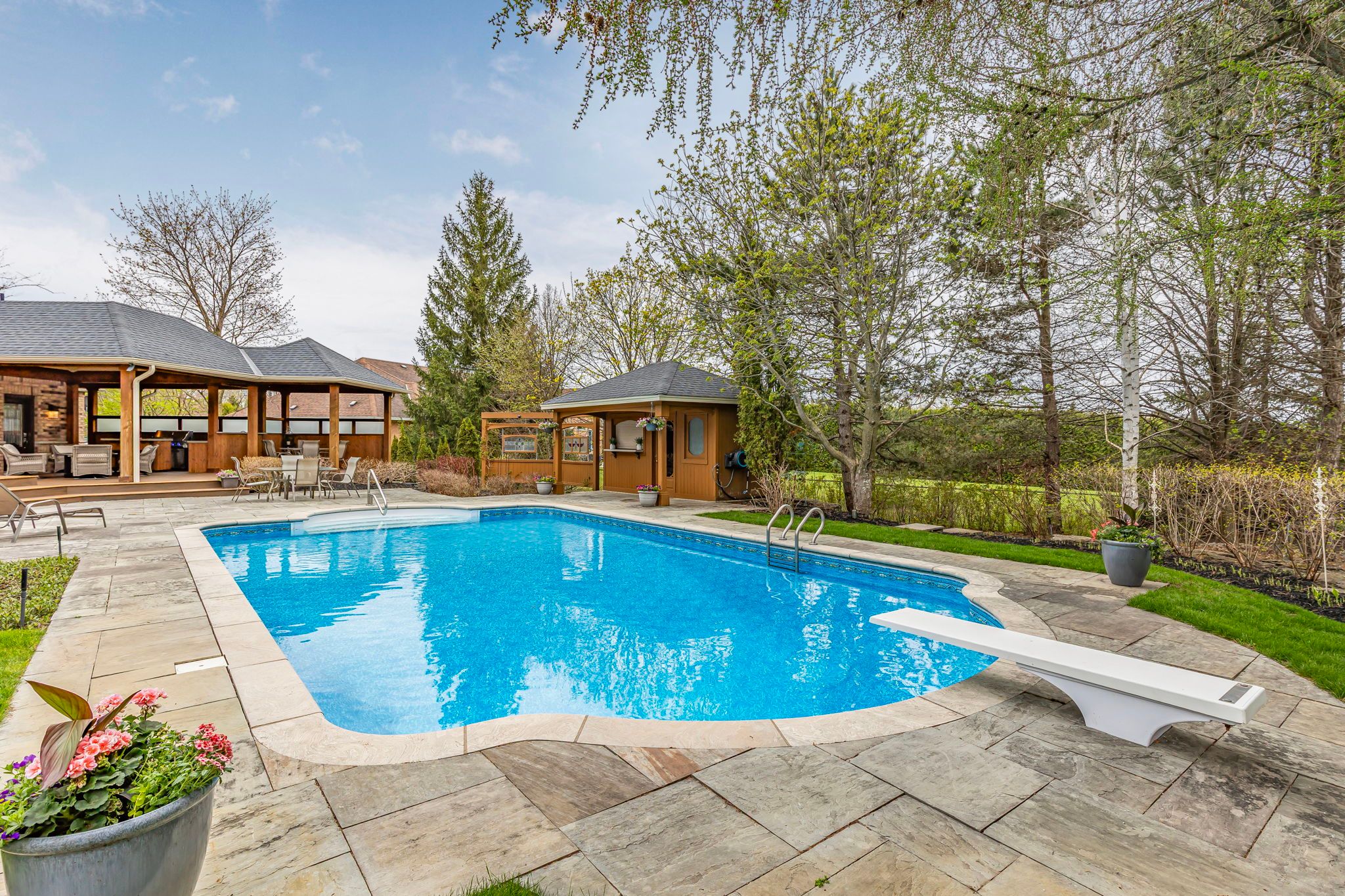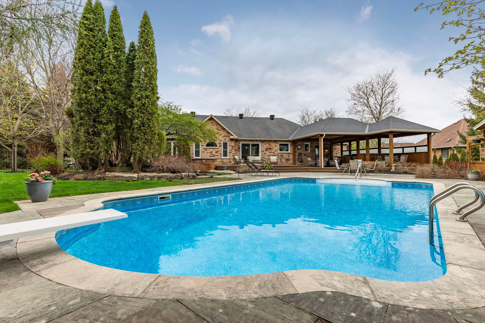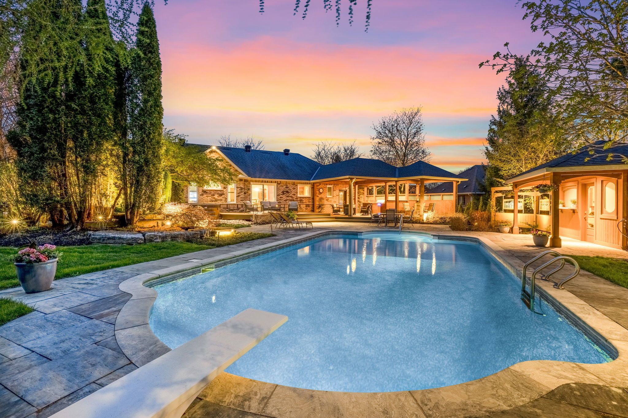 Discover your dream home in one of sharon's most prestigious and family-friendly neighbourhoods. This updated 3-bedroom, 3-bathroom bungalow is the perfect blend of luxury, functionality, and privacy - a rare find in today's market. Situated on a premium lot and surrounded by mature trees and lush landscaping, this move-in-ready home offers a lifestyle many only dream about. Inside, enjoy 9-foot ceilings, an open and thoughtfully designed layout ideal for both entertaining and everyday living. The bright, modern kitchen flows seamlessly into the dining and living areas, creating the perfect space for busy mornings and relaxing evenings. Step into your private backyard oasis, featuring a fully fenced yard, in-ground pool, waterfall feature, covered outdoor lounge, and a built-in outdoor kitchen - an entertainer's paradise and a true resort-style escape right at home. The expansive side yard offers endless space for children to play safely and freely. With a 3-car garage and ample storage, there's room for vehicles, bikes, sports equipment, and more. Located minutes to schools, parks, trails, hwy 404, go transit, and east gwillimbury's amenities, this property offers the perfect combination of tranquillity and convenience. If you're searching for a bungalow for sale in sharon, with a pool, privacy, and modern upgrades, this is it. This home is more than a place to live - it's where lasting family memories begin.