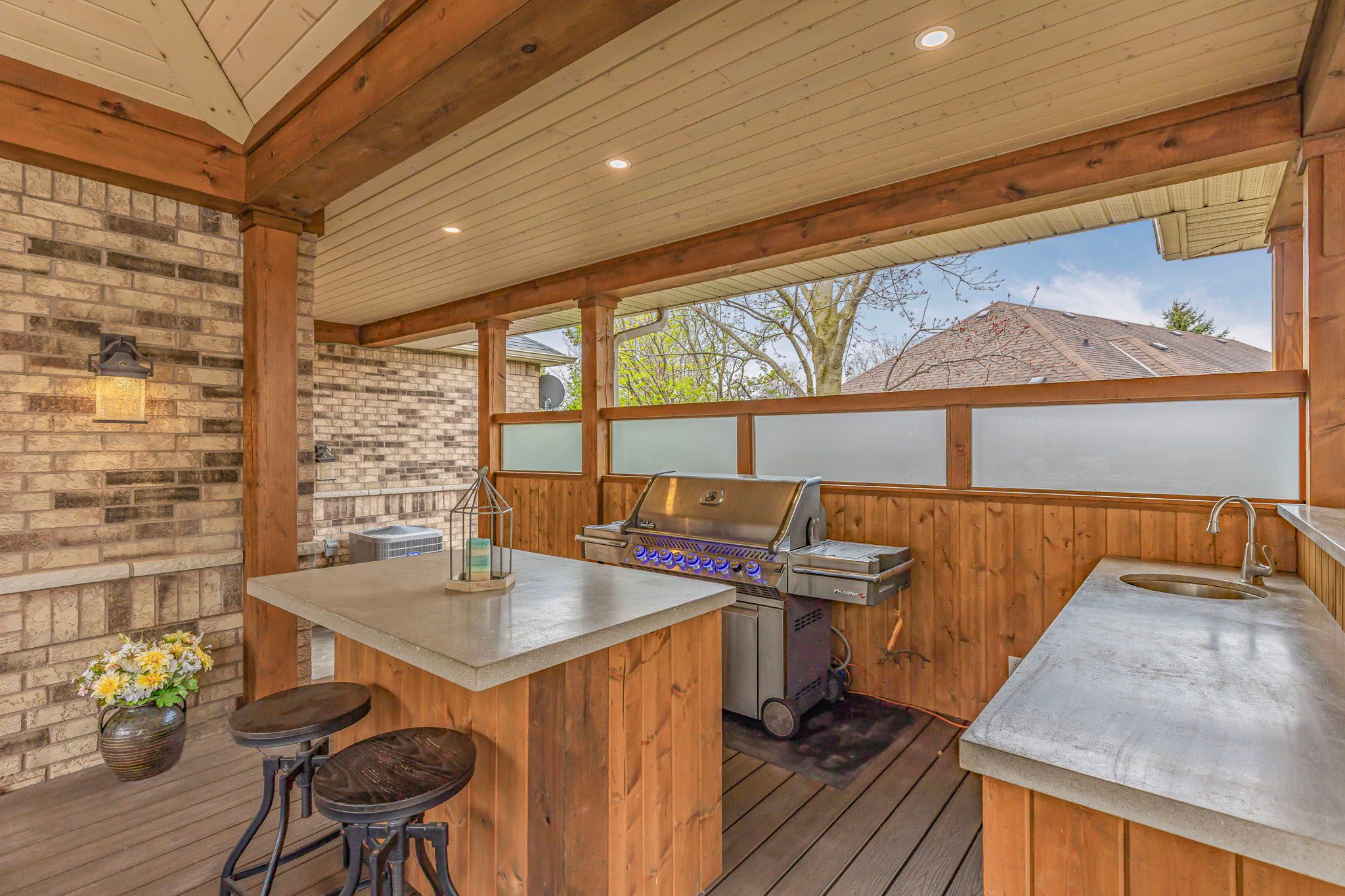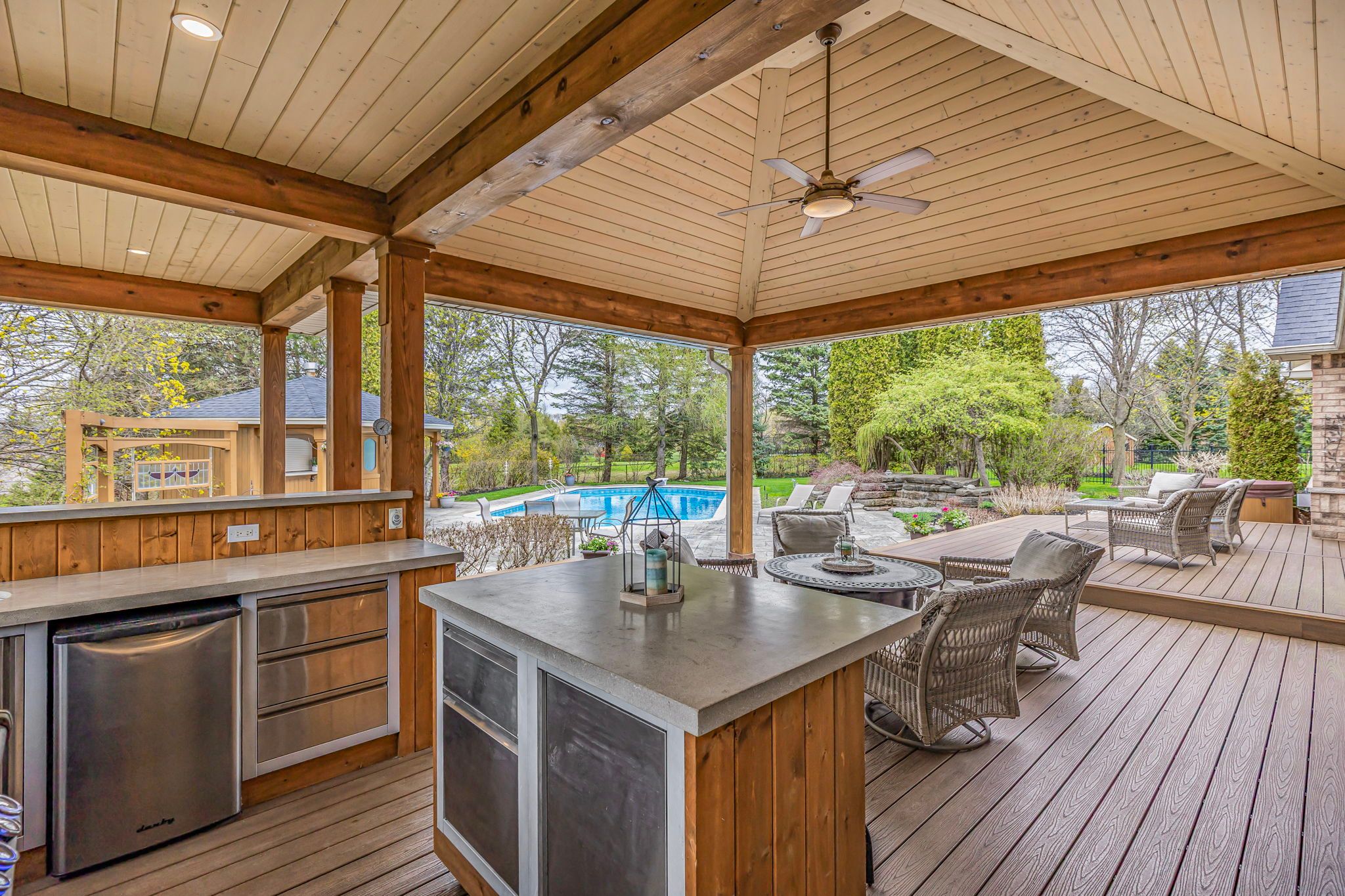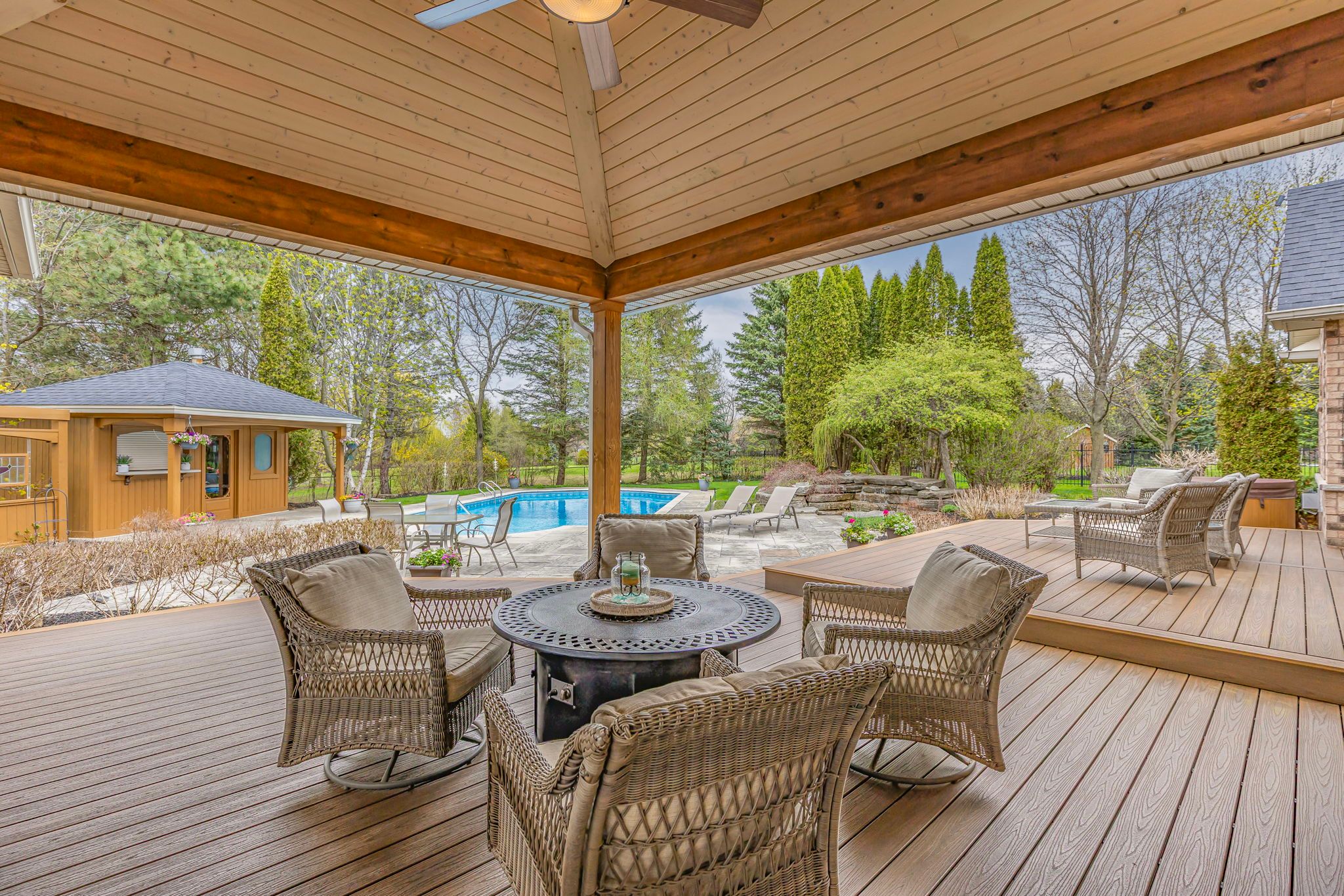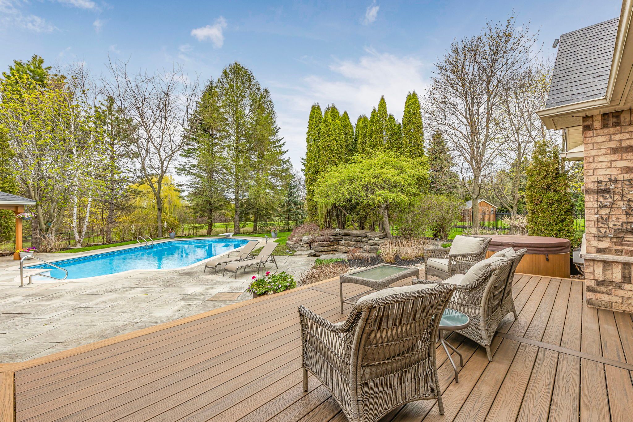 Discover your dream home in one of sharon's most prestigious and family-friendly neighbourhoods. This updated 3-bedroom, 3-bathroom bungalow is the perfect blend of luxury, functionality, and privacy - a rare find in today's market. Situated on a premium lot and surrounded by mature trees and lush landscaping, this move-in-ready home offers a lifestyle many only dream about. Inside, enjoy 9-foot ceilings, an open and thoughtfully designed layout ideal for both entertaining and everyday living. The bright, modern kitchen flows seamlessly into the dining and living areas, creating the perfect space for busy mornings and relaxing evenings. Step into your private backyard oasis, featuring a fully fenced yard, in-ground pool, waterfall feature, covered outdoor lounge, and a built-in outdoor kitchen - an entertainer's paradise and a true resort-style escape right at home. The expansive side yard offers endless space for children to play safely and freely. With a 3-car garage and ample storage, there's room for vehicles, bikes, sports equipment, and more. Located minutes to schools, parks, trails, hwy 404, go transit, and east gwillimbury's amenities, this property offers the perfect combination of tranquillity and convenience. If you're searching for a bungalow for sale in sharon, with a pool, privacy, and modern upgrades, this is it. This home is more than a place to live - it's where lasting family memories begin.
