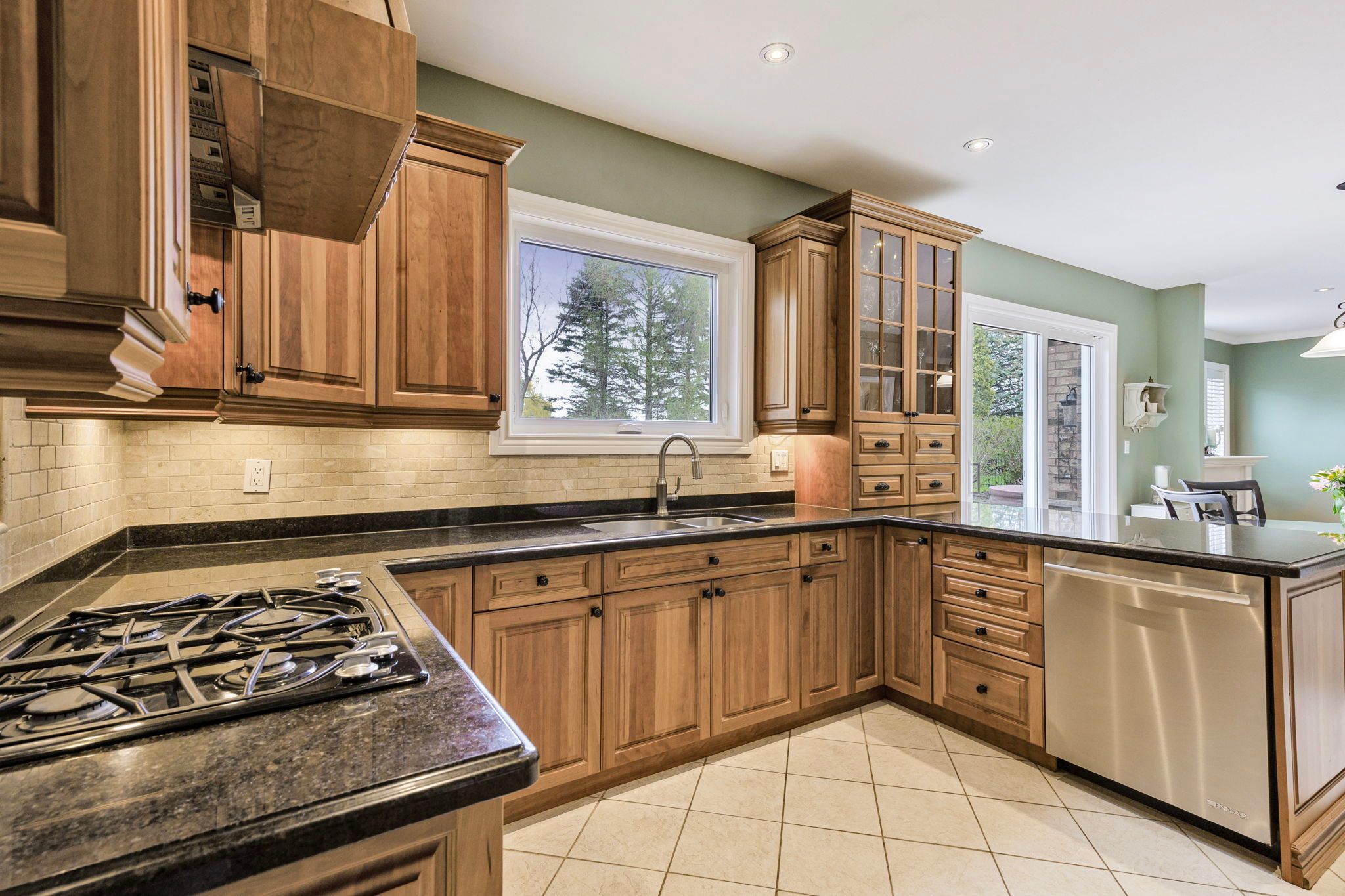 • Bright modern kitchen flows into living and dining areas.
