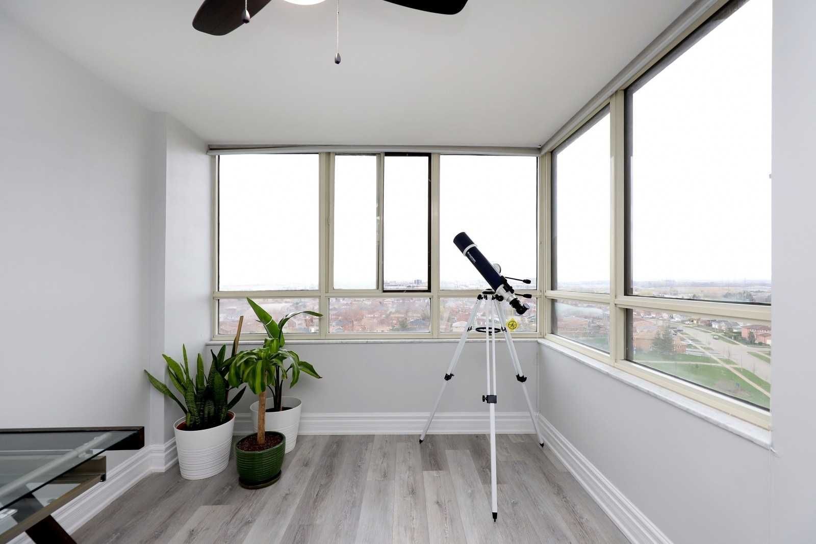 Welcome to this beautifully renovated, move-in-ready, south-facing suite offering exceptional space, refined finishes, & breathtaking city views stretching all the way to the cn tower. Bathed in natural sunlight throughout the day, this home delivers a bright, airy atmosphere that elevates everyday living. The expansive sun-filled solarium provides outstanding versatility & can easily function as a third bedroom, home office, playroom, or serene retreat-ideal for families & professionals alike. The home features a fully renovated kitchen & two stylishly updated bathrooms. Complemented by luxury laminate flooring throughout, smooth ceilings, & no carpet, creating a sleek, contemporary, low-maintenance environment. The primary bedroom is enhanced with modern pot lights, dimmers in both the primary bedroom and dining room allows you to set the perfect ambiance for any occasion. Enjoy peace of mind with smart home technology. Complete with a smartlock & smart peep-hole camera, giving you the ability to secure & monitor your home from anywhere in the world. Effortless convenience & peace of mind. This spacious unit includes two parking spaces & a storage locker. The all-inclusive maintenance fee covers all utilities, high-speed internet, and a vip cable package, offering exceptional value and convenience. The impeccably maintained building features 24-hour security & resort-style amenities including a fully equipped gym, outdoor swimming pool, billiards room, squash and tennis courts, two saunas, party room, library, & a carwash station. Ideally located near schools, parks, shopping, public transit, & seamless access to highways 407, 410, & 401. This home delivers a rare blend of luxury, functionality, & lifestyle. It checks every box.