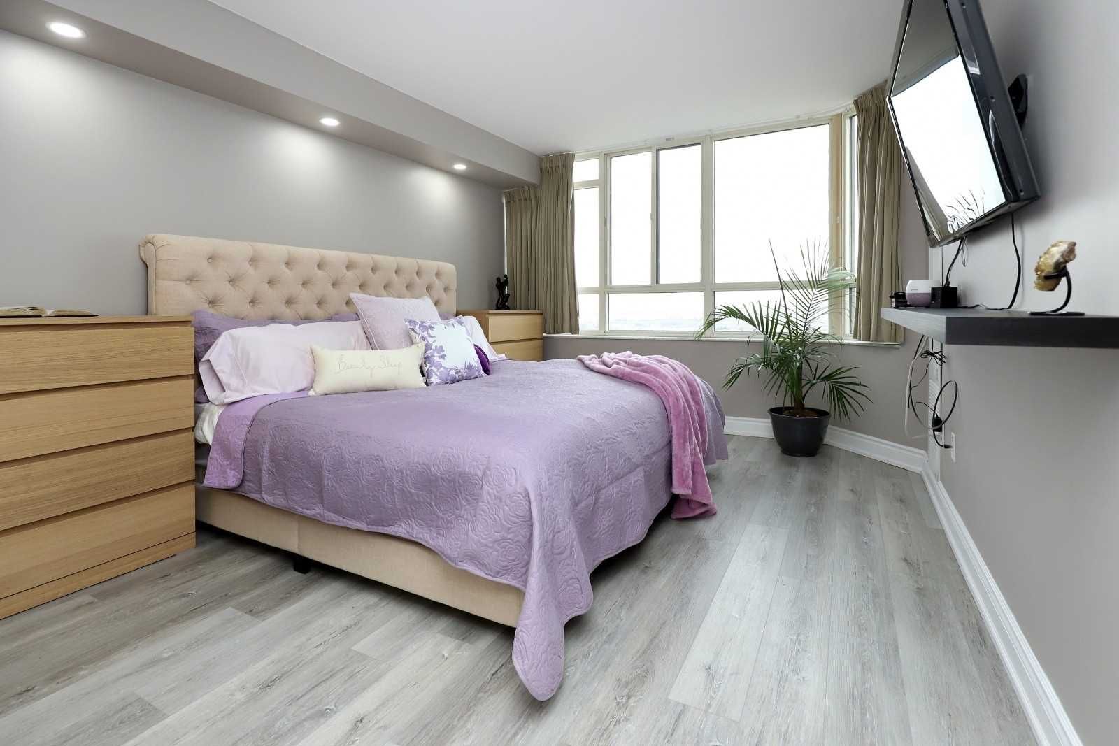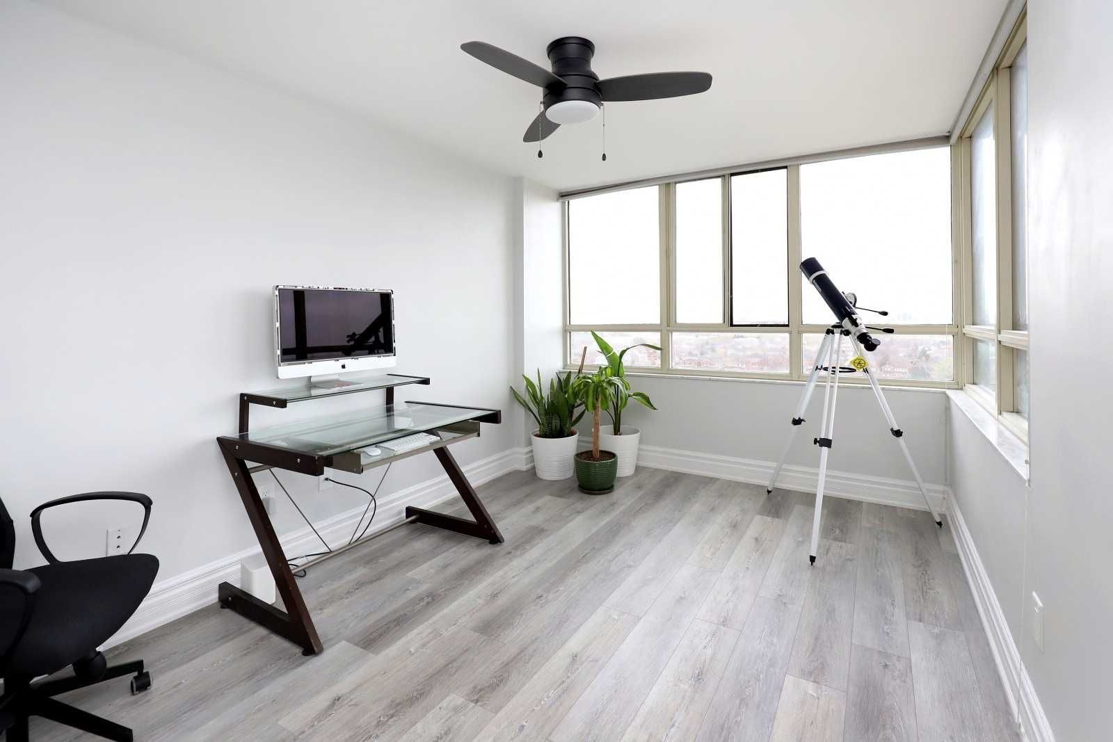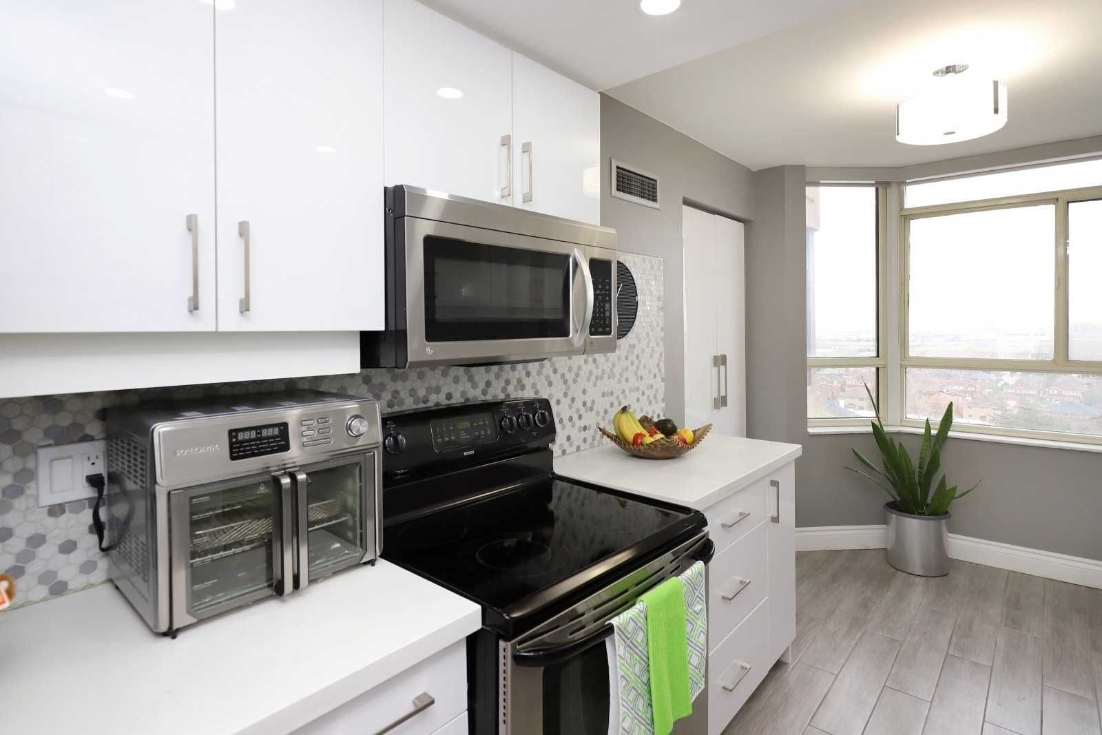 Welcome to this beautifully renovated, move-in-ready, south-facing suite offering exceptional space, refined finishes, & breathtaking city views stretching all the way to the cn tower. Bathed in natural sunlight throughout the day, this home delivers a bright, airy atmosphere that elevates everyday living. The expansive sun-filled solarium provides outstanding versatility & can easily function as a third bedroom, home office, playroom, or serene retreat-ideal for families & professionals alike. The home features a fully renovated kitchen & two stylishly updated bathrooms. Complemented by luxury laminate flooring throughout, smooth ceilings, & no carpet, creating a sleek, contemporary, low-maintenance environment. The primary bedroom is enhanced with modern pot lights, dimmers in both the primary bedroom and dining room allows you to set the perfect ambiance for any occasion. Enjoy peace of mind with smart home technology. Complete with a smartlock & smart peep-hole camera, giving you the ability to secure & monitor your home from anywhere in the world. Effortless convenience & peace of mind. This spacious unit includes two parking spaces & a storage locker. The all-inclusive maintenance fee covers all utilities, high-speed internet, and a vip cable package, offering exceptional value and convenience. The impeccably maintained building features 24-hour security & resort-style amenities including a fully equipped gym, outdoor swimming pool, billiards room, squash and tennis courts, two saunas, party room, library, & a carwash station. Ideally located near schools, parks, shopping, public transit, & seamless access to highways 407, 410, & 401. This home delivers a rare blend of luxury, functionality, & lifestyle. It checks every box.
