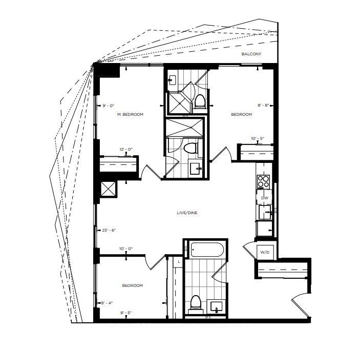• Spacious unit with 3 bedrooms, 3 bathrooms, and a large balcony.