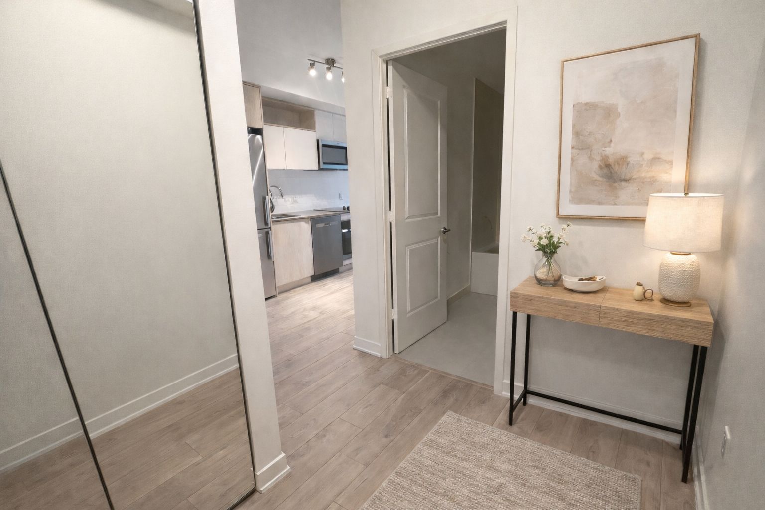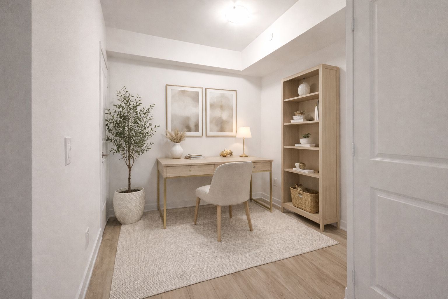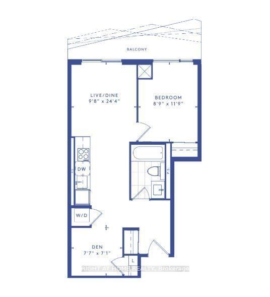 • 1+Den layout with a balcony and 24-hour concierge service.