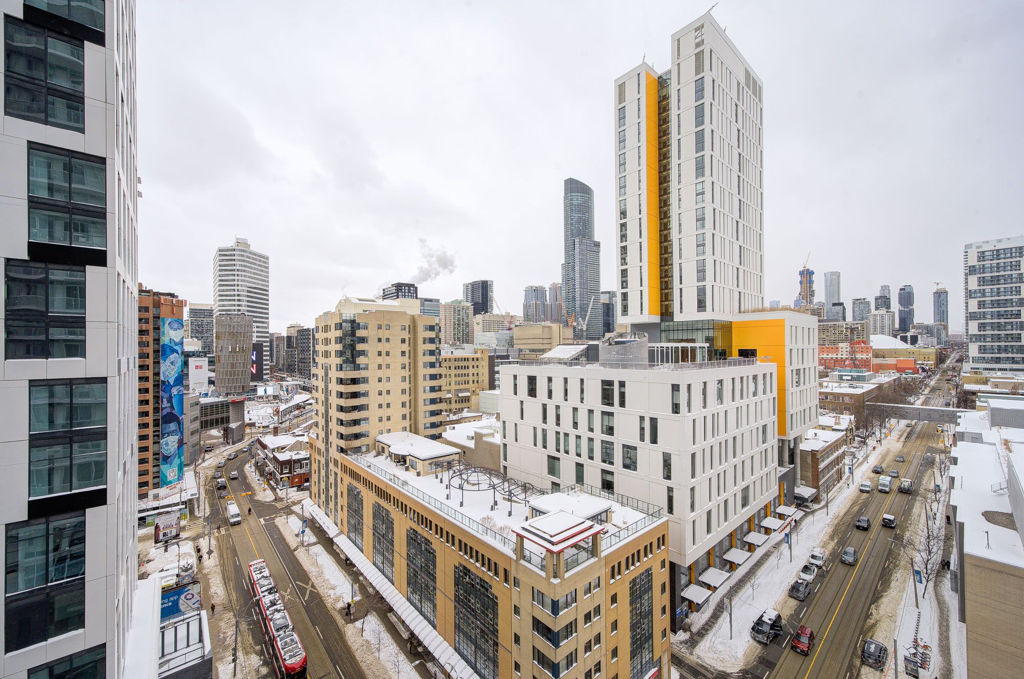 3 bedrooms, 3 bath with 915 sqft, one year building , luxurious finishes & breathtaking views in the heart of toronto, corner of dundas + church. Steps to public transit, boutique shops, restaurants, university ,amenities include: fitness centre, yoga room, steam room, sauna, party room, barbeques **extras** laminate flooring. S/s appliances, fridge, stove, oven, dishwasher, microwave. Quartz kitchen countertops & window sills. Internet included