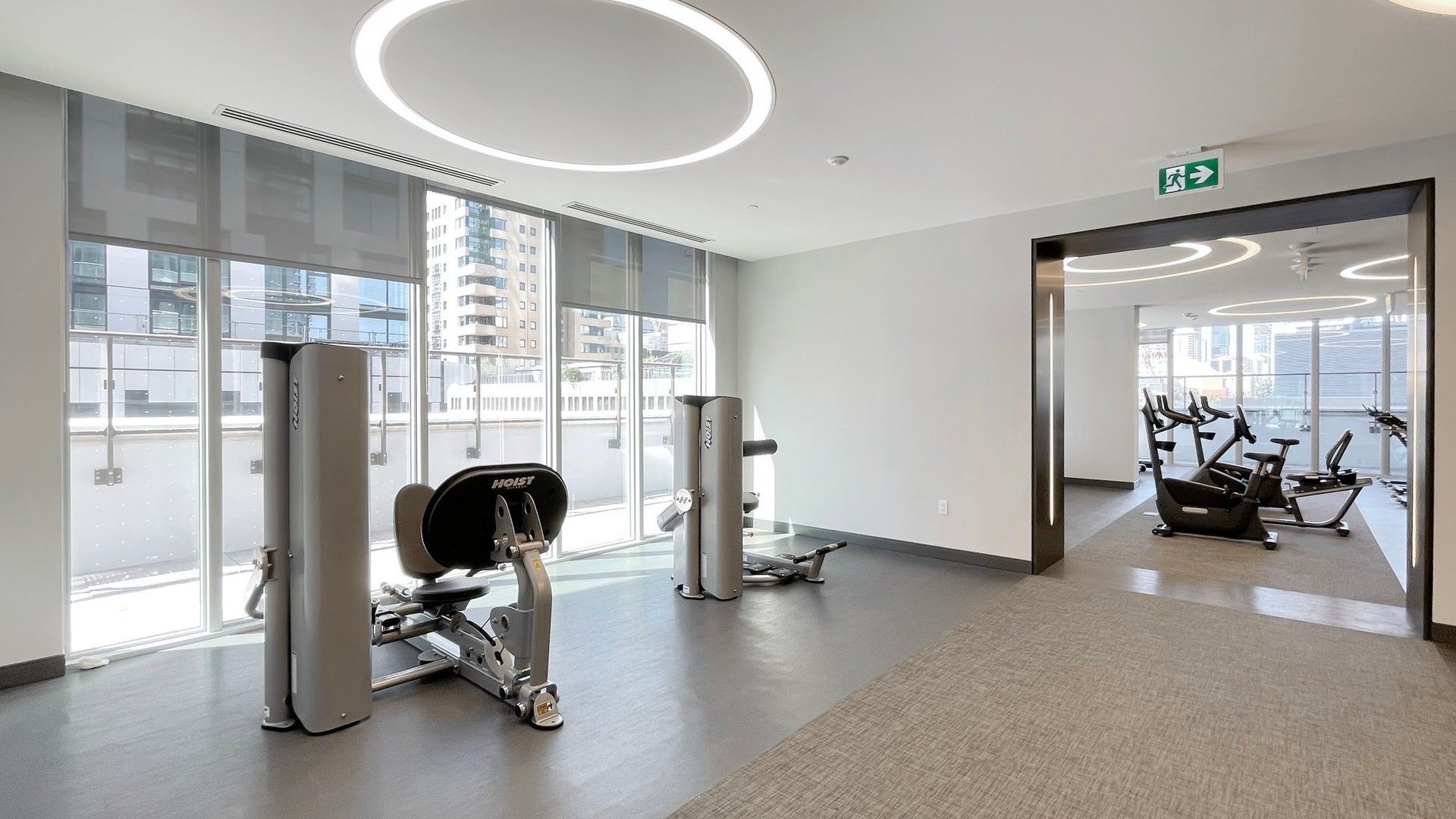 • Amenities include fitness center, yoga room, sauna, and party room.