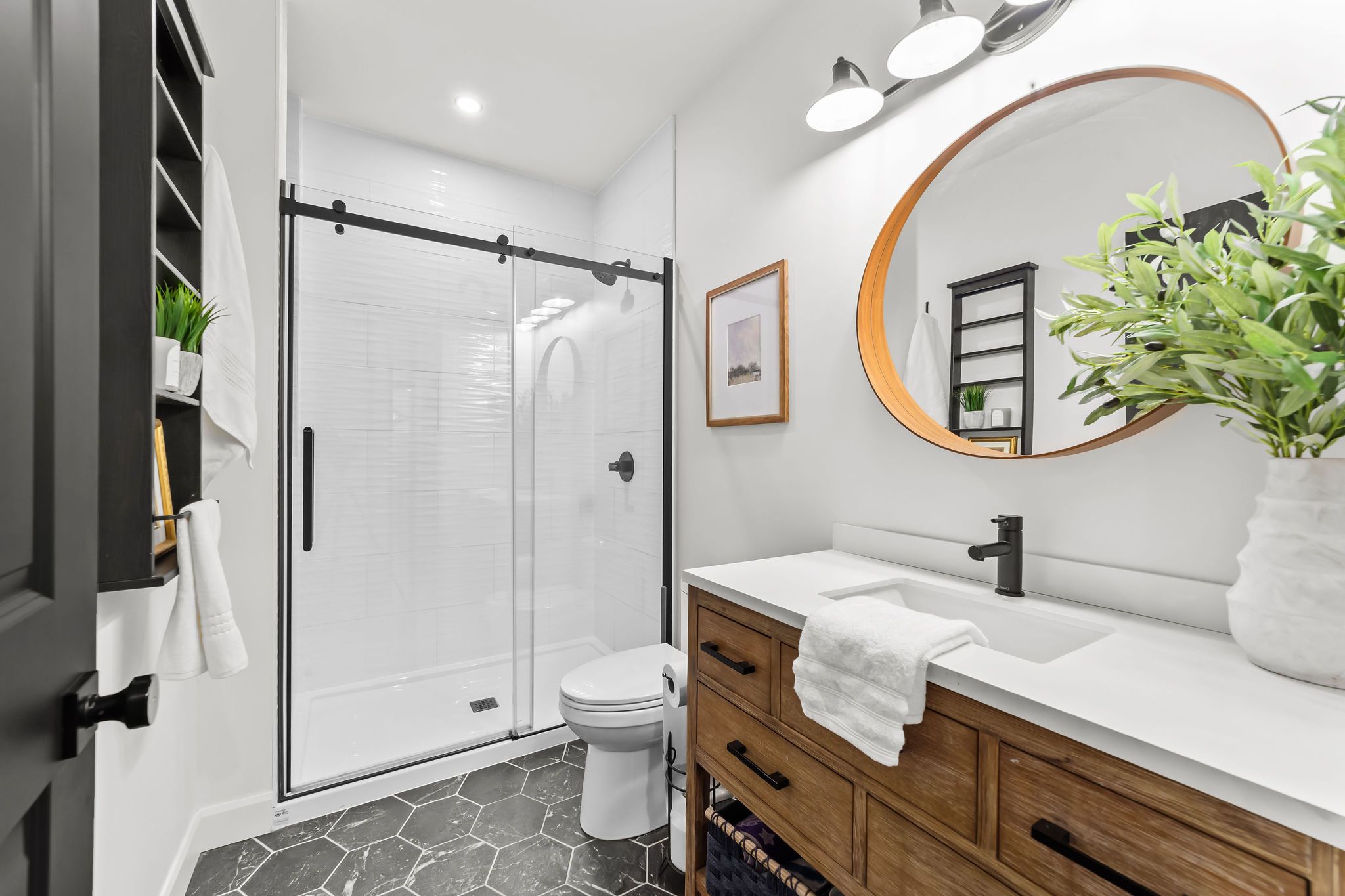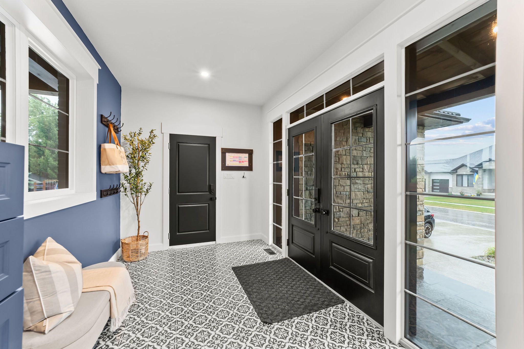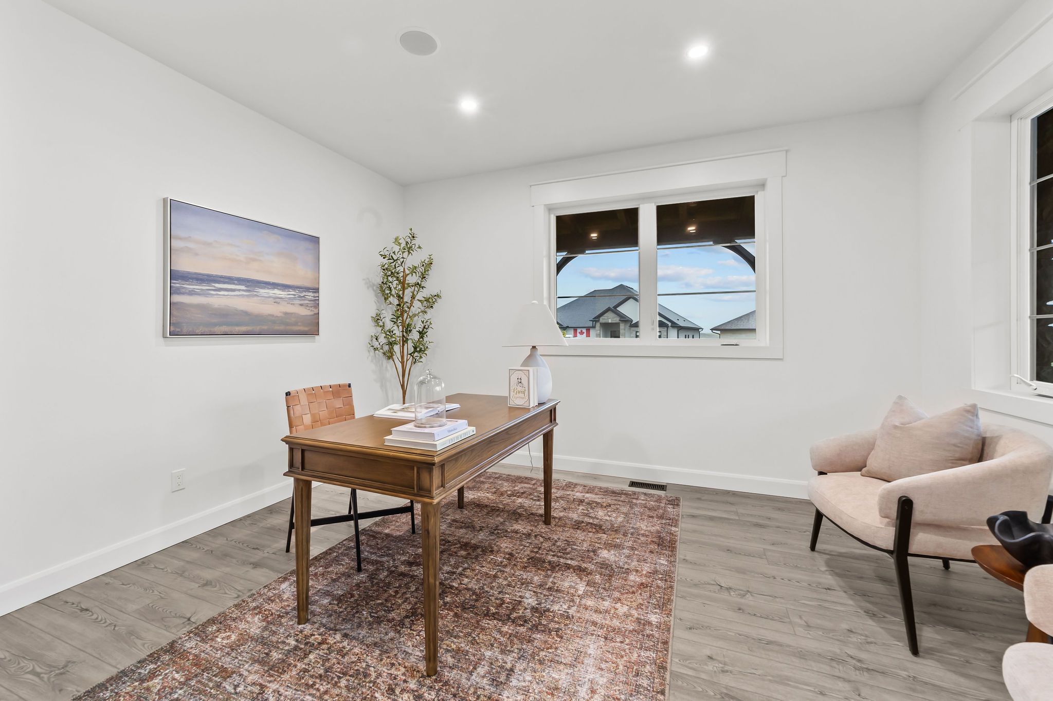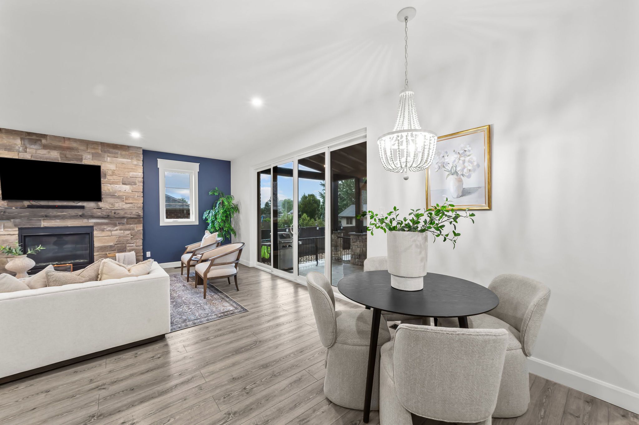 Welcome to a home where modern design meets small-town living, built just five years ago by marvel stone & masonry. This stone-and-brick masterpiece was crafted with every detail in mind from its timeless curb appeal to the wrap-around porch that sets the tone for peace, comfort, and connection. Inside, the main floor blends elegance and functionality. A bright, spacious kitchen with walk-in pantry is perfect for family gatherings, while the family room with fireplace offers a cozy retreat. A large office or bedroom with countryside views provides the ideal workspace, and built-in speakers add a touch of everyday luxury. Upstairs, you'll find four additional bedrooms that are thoughtfully placed on the same level, including a luxurious primary suite with spa-inspired ensuite, his-and-hers sinks, and a deep soaker tub. The three additional bedrooms feature oversized closets, built-ins, and window benches, while the second-floor laundry room makes daily routines effortless. The lower level is designed for entertainment and function, complete with a movie theatre, gym, games area, childrens recreation space, full bath, and a 16-foot cold cellar. Step outside to your private backyard oasis: a heated in-ground pool with bench seating, stone patios, bbq area, water feature, built-in play equipment, playhouse, and garden boxes all surrounded by mature trees and low-maintenance landscaping. Evenings on the porch or nights by the fire create a lifestyle thats hard to leave behind. Practical features include: an oversized gas heated three-car garage with car-lift wiring, parking for six, fully fenced yard, tinted windows throughout the home, spray foam insulation, professional-grade security cameras, drainage system, sump pump with battery backup, central vacuum, and metal roof with a transferable warranty. Future-ready upgrades are already in place, including wiring for a hot tub, gas generator switch, bbq hookup, and fireplace supports on the pool patio.