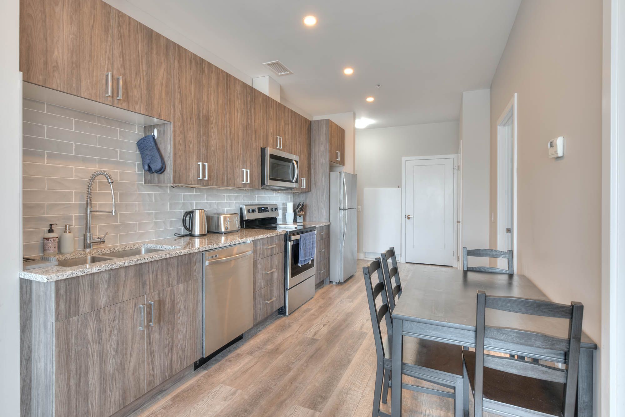 Welcome to unit 802-100 garment street! This unit offers a beautifullydesigned 2-bedroom, 1-bathroom condo in tower 1 of kitchener's well-knowngarment buildings. Spanning 933 square feet, this bright and airy spacefeatures expansive windows and elevated ceilings that enhance the open-conceptdesign. The layout seamlessly connects a contemporary kitchen-complete withmodern finishes and appliances-to a generous living area, creating an idealsetting for both relaxing and entertaining. Two well-sized bedrooms providecomfortable retreats, while the stylish bathroom includes updated fixtures anda sleek shower. Enjoy the added convenience of in-suite laundry, along withone underground parking spot. With nearby access to public transit options,including bus lines and the lrt, commuting is simple. Ideally situated withinwalking distance to google, the tannery buildings, the university of waterlooschool of pharmacy, and victoria park, this home places you right in the heartof kitchener's innovation district. Just a short stroll from downtown, you'llalso be surrounded by a lively mix of restaurants, cultural attractions, andentertainment-perfect for embracing a dynamic urban lifestyle.