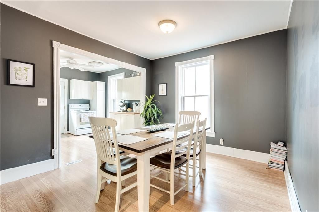 • Open-concept eat-in kitchen and living area filled with natural light.