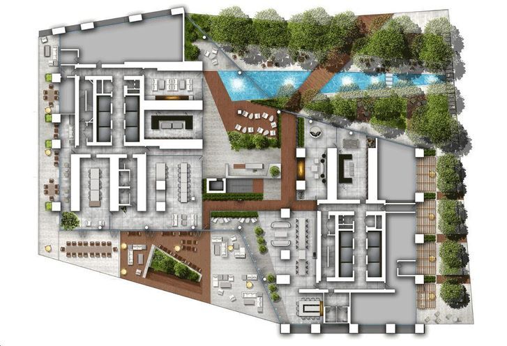 • Amenities include a pool, fitness centre, and outdoor terrace.