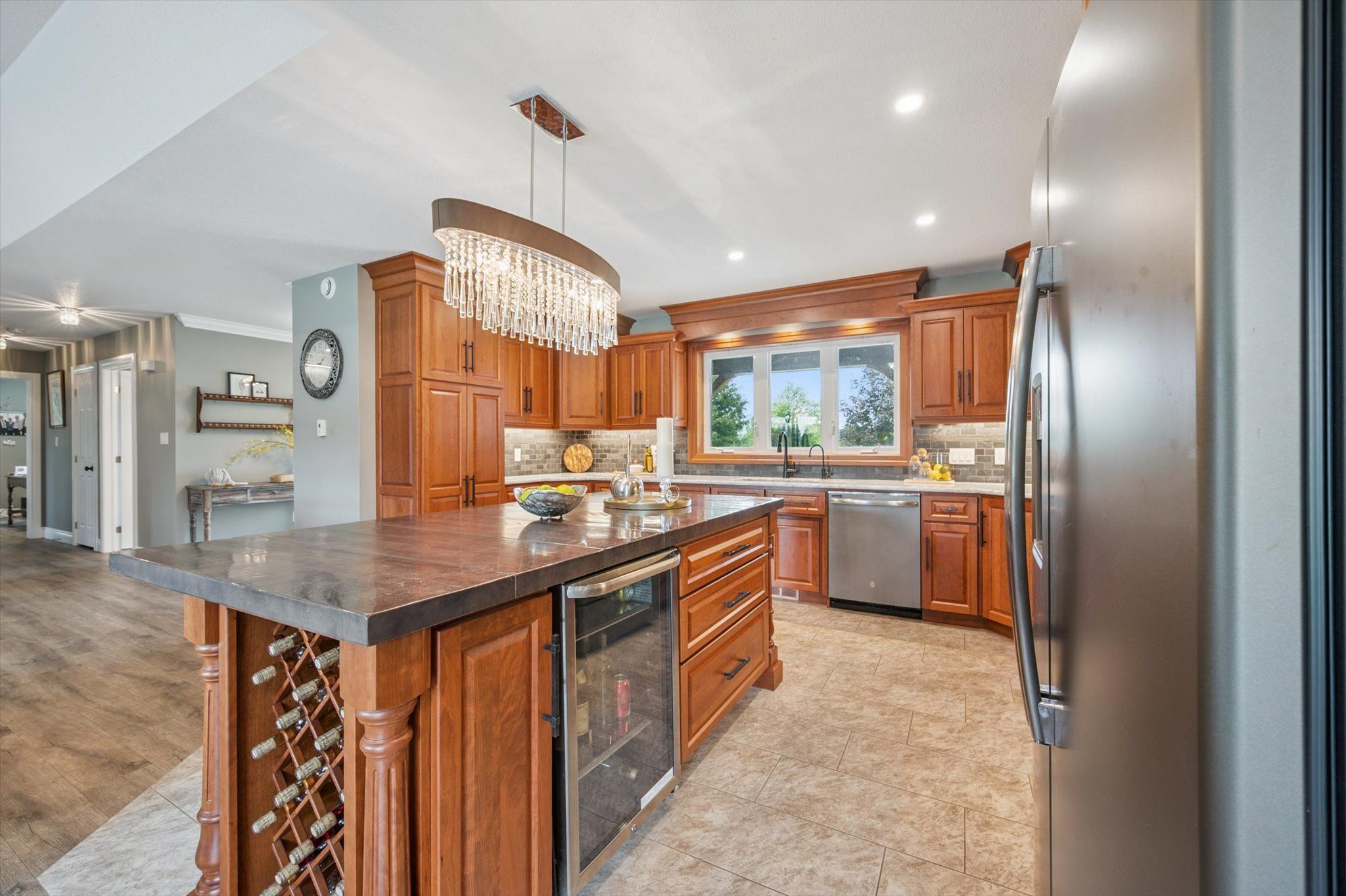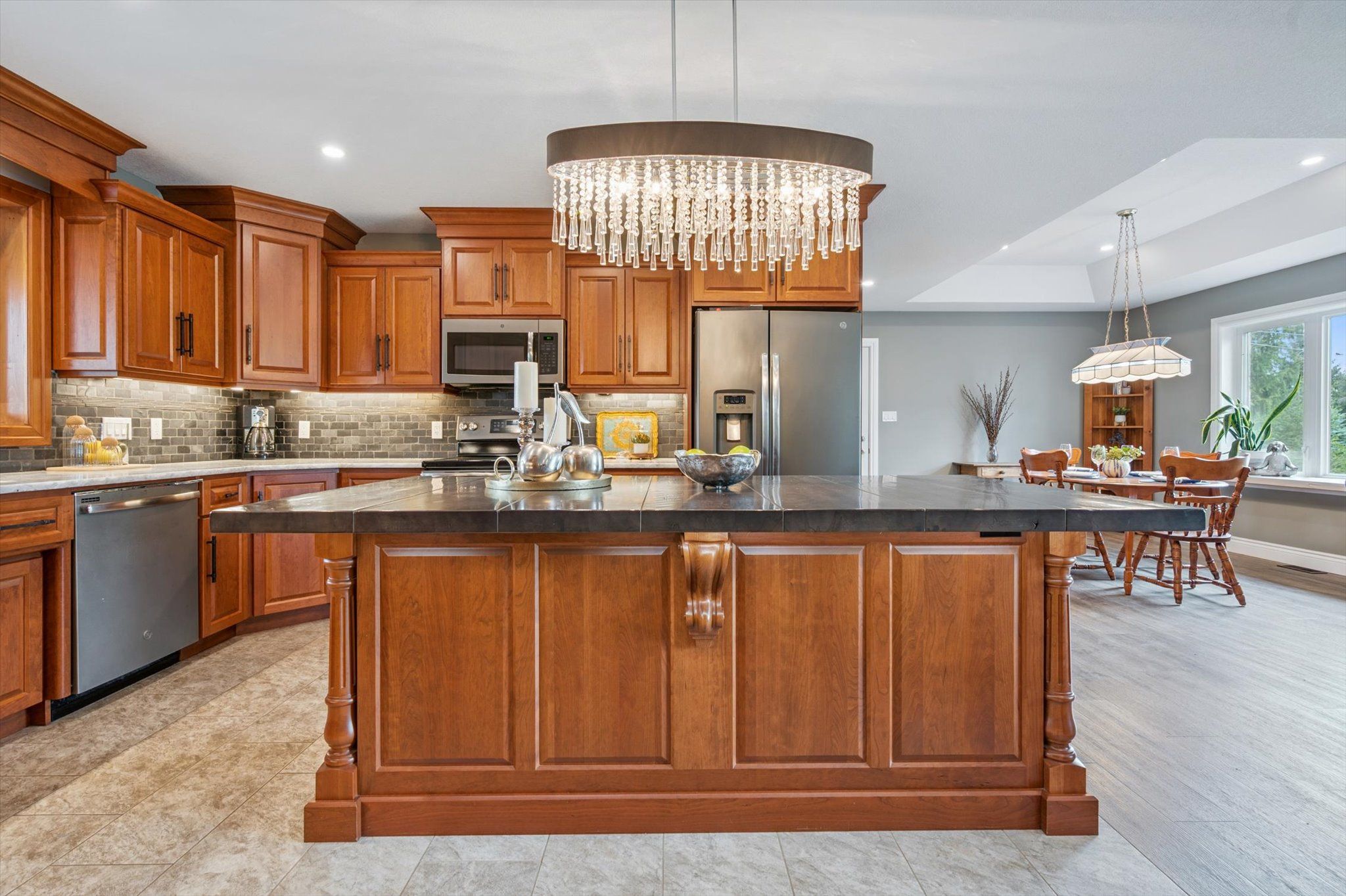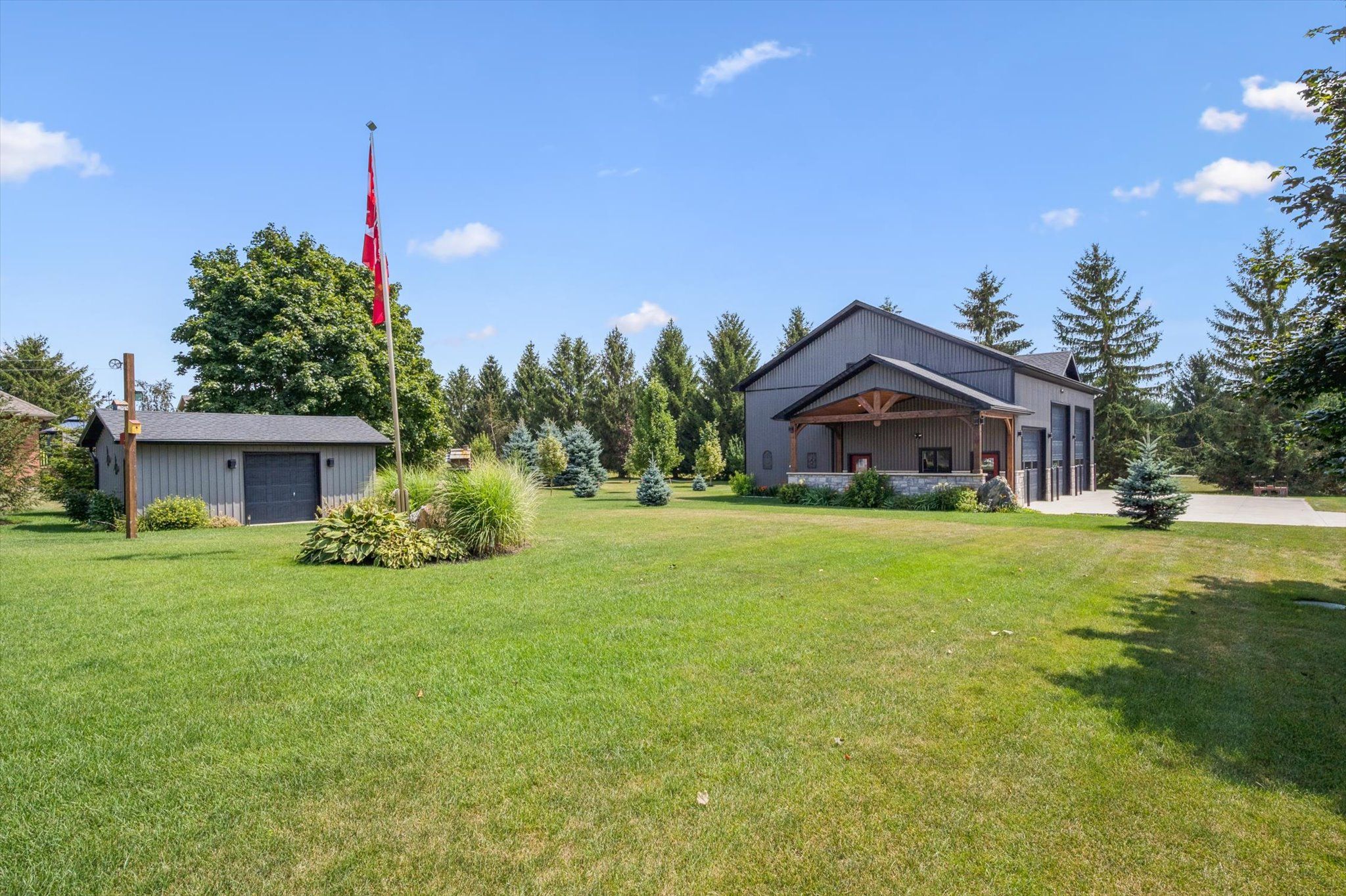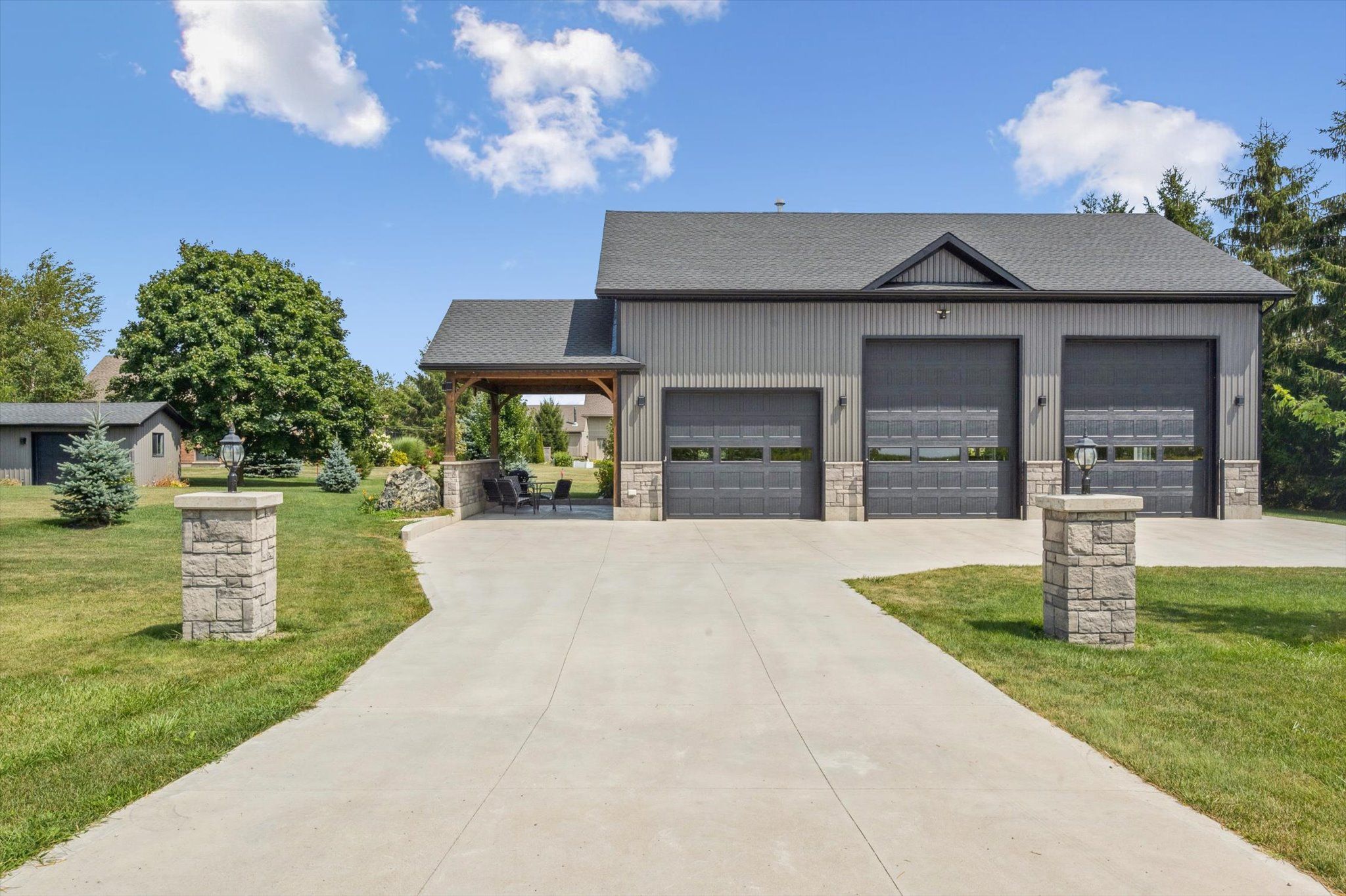 No design element was overlooked and no expense was spared when the current owner custom built this amazing country estate bungalow in 2019 - including an absolutely spectacular three bay 38. 8 ft by 48. 6 ft detached shop with loft living space (great for an airbnb). And all set on a beautifully landscaped 1. 3 acre lot featuring 55 trees and landscape lighting. If you are a discerning buyer looking for a property that is a cut above, this is one you must come and see to appreciate it. Whether you have a large car collection, lots of toys (including rv's), or need a property for your home based business - this one can handle it all. The home itself is done top to bottom - offering over 2950 sq ft of thoughtfully designed living space with finished basement level - 4 bedrooms and 4 bathrooms. Second kitchen on the lower level. Great for extended family or out of town guests. There are far too many special features to list here - but we will highlight a few. First - it's a country property with natural gas - that's a bonus! There is fibre internet too. Covered front porch and an expansive covered rear deck for entertaining. Oversized triple car attached garage with walk up from basement level. Separate utility shed out back. The shop has in floor heating - and even an rv hook up. It's the little details here that put this property over the top. Located on a paved road a short drive to all the amenities you need - and adjacent to a small enclave of other high end country estate homes.