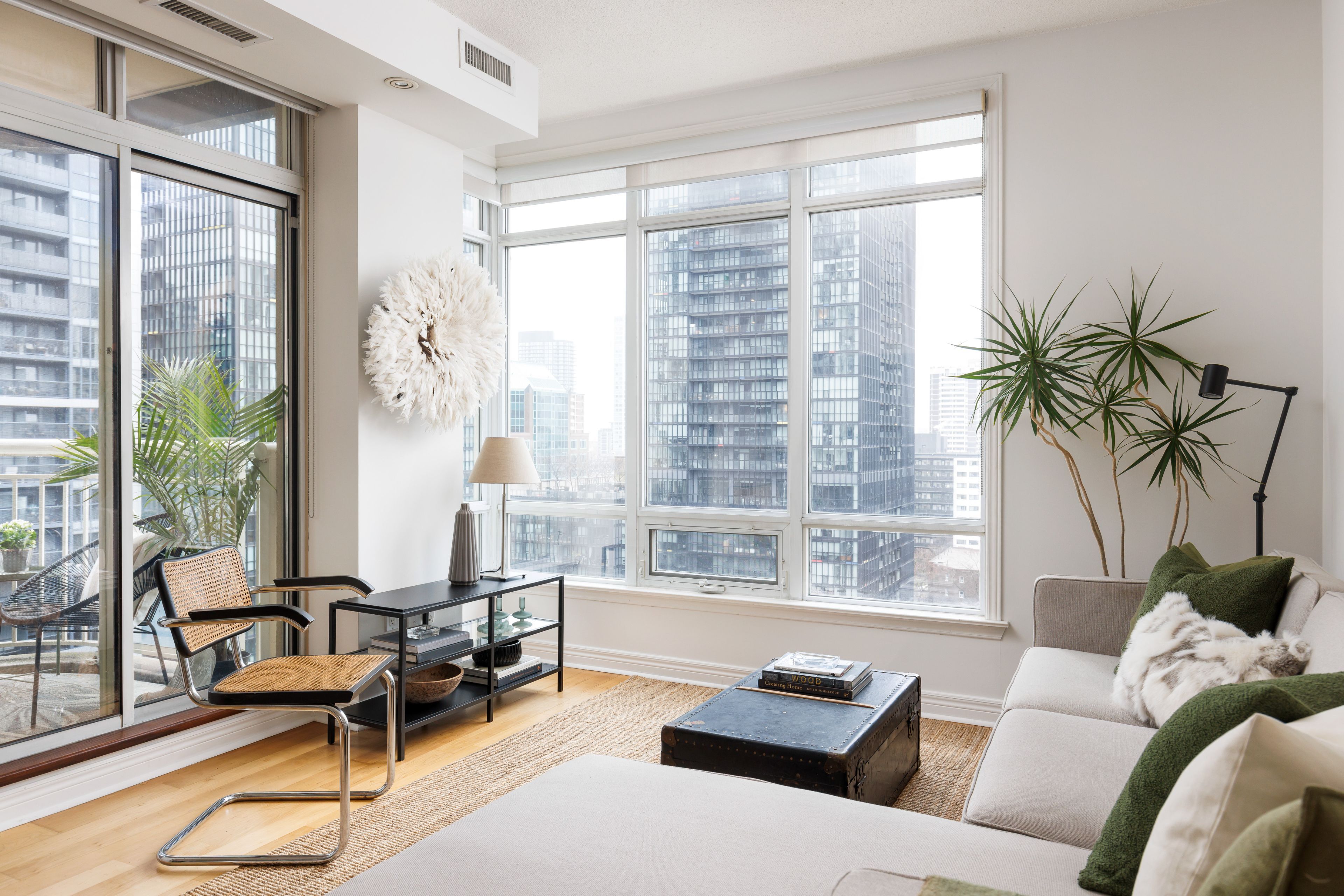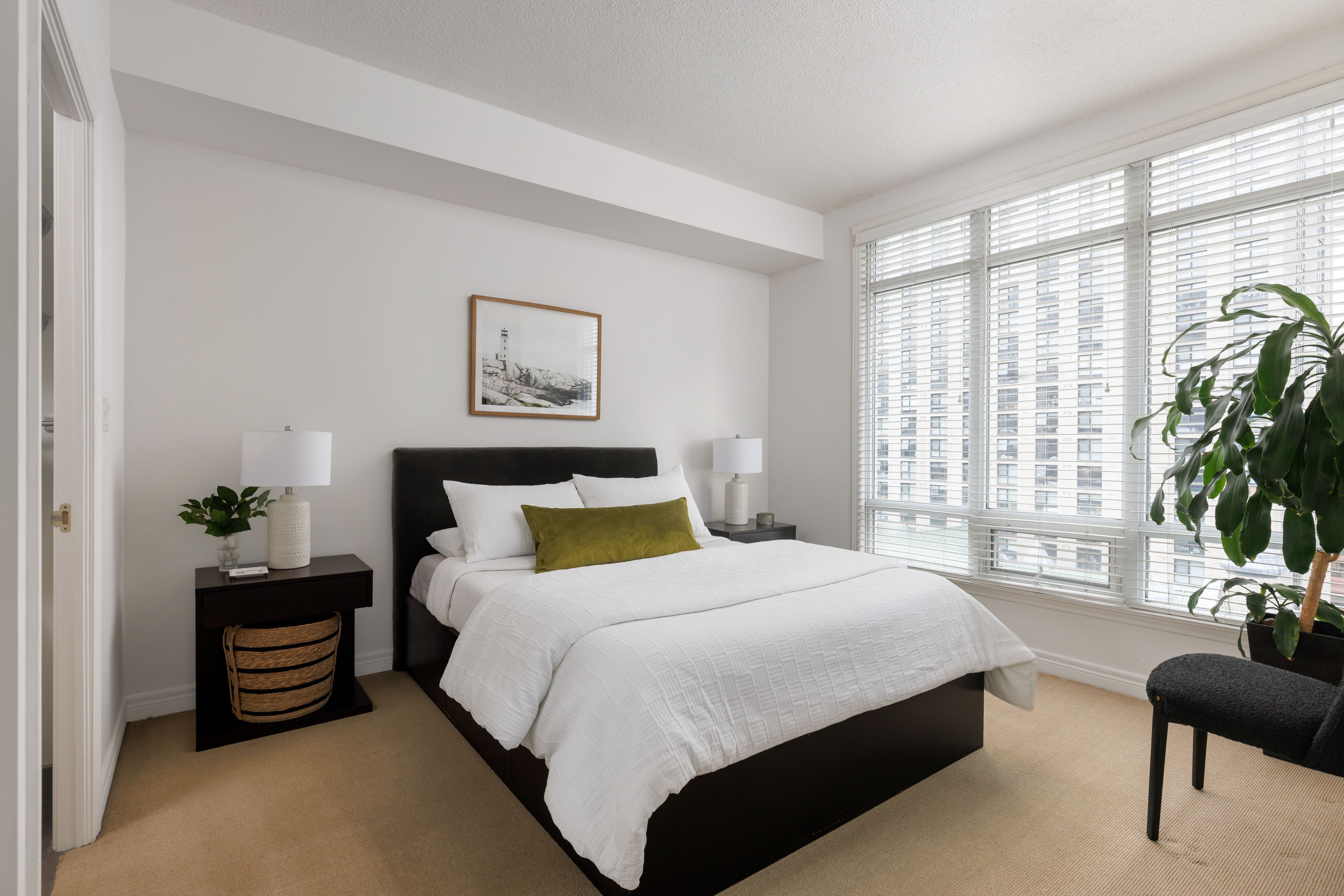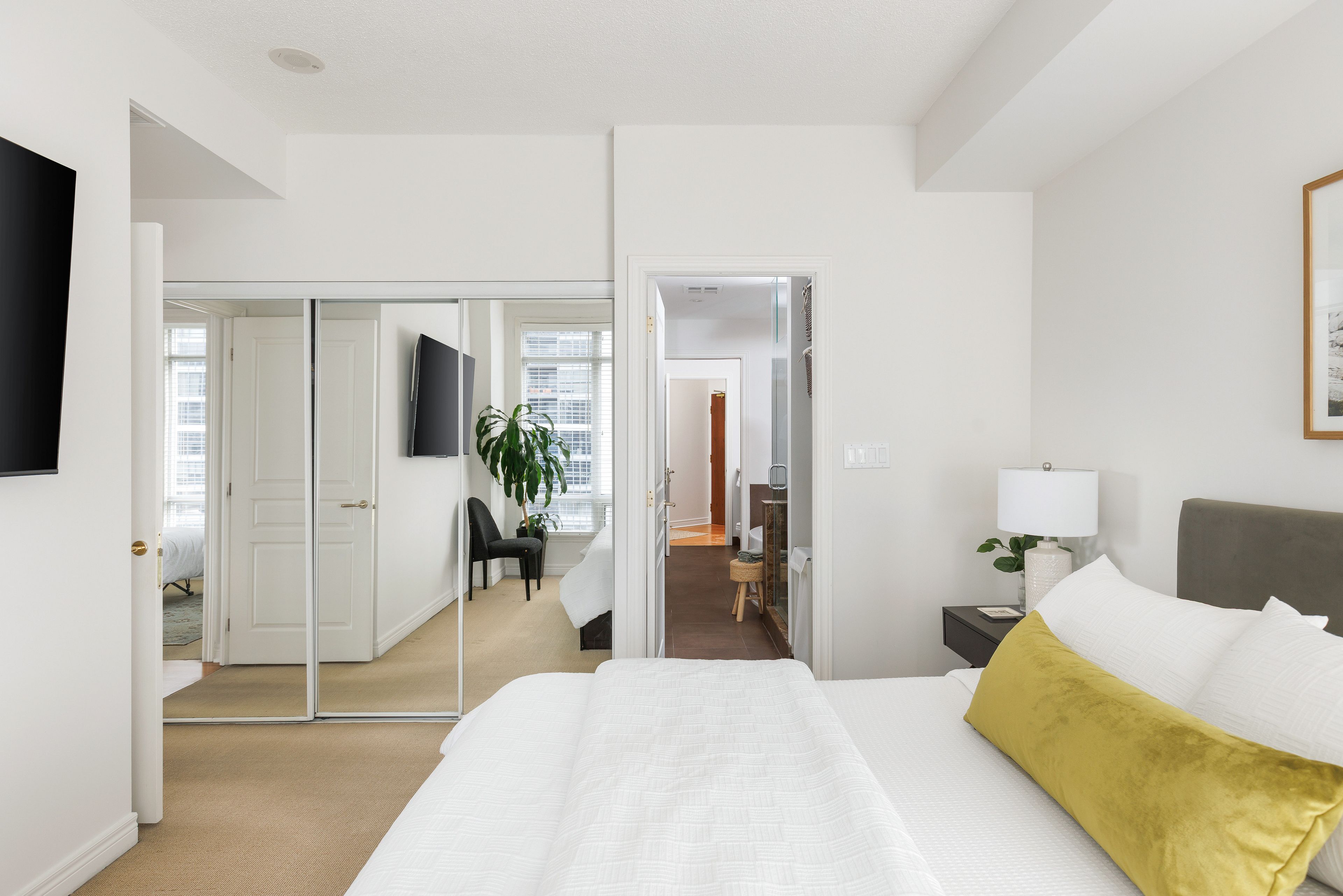 Bloor walk is a boutique condominium building tucked away on a quiet cul-de-sac at 100 haydenstreet, and suite 1206 offers an exceptional opportunity to live in one of toronto's most coveted neighbourhoods. Just steps from the iconic yonge & bloor intersection, the area serves as a gateway to world-class shopping, vibrant entertainment, cultural experiences, direct access to major transit lines, and everyday convenience. It is widely considered the point marking a seamless transition from the city's downtown intensity to the more refined, lifestyle-driven atmosphere of midtown. Spanning over 850 square feet, this rare residence is one of only three units with this highly sought-after layout. Soaring 9-foot ceilings and floor-to-ceiling windows enhance the sense of space, while the coveted south-east exposure floods the suite with natural light throughout the day. Enjoy unobstructed panoramic skyline views overlooking a beautifully landscaped courtyard - your own private urban retreat. A welcoming foyer leads into an expansive open-concept living and dining area, perfect for both relaxing and entertaining. The well-appointed kitchen boasts a rarely-seen integrated pantry cabinet and a convenient breakfast bar that seamlessly connects the space. The thoughtfully renovated 4-piece bathroom is a standout feature. Nearly spanning the length of the unit, it was remodelled to enhance the functionality and flow of the space. It can easily function as a guest powder room while still serving as a private ensuite to the primary bedroom. The generously sized primary bedroom is a true sanctuary, complete with modular closet organizers and large windows adorned with california shutters. Additional highlights include parking and a large locker room for ultimate convenience. Residents enjoy an impressive array of amenities, including 24-hour concierge service, an indoor pool, a state-of-the-art gym, and communal bbqs on the rooftop deck. ** open house cancelled sold conditional **