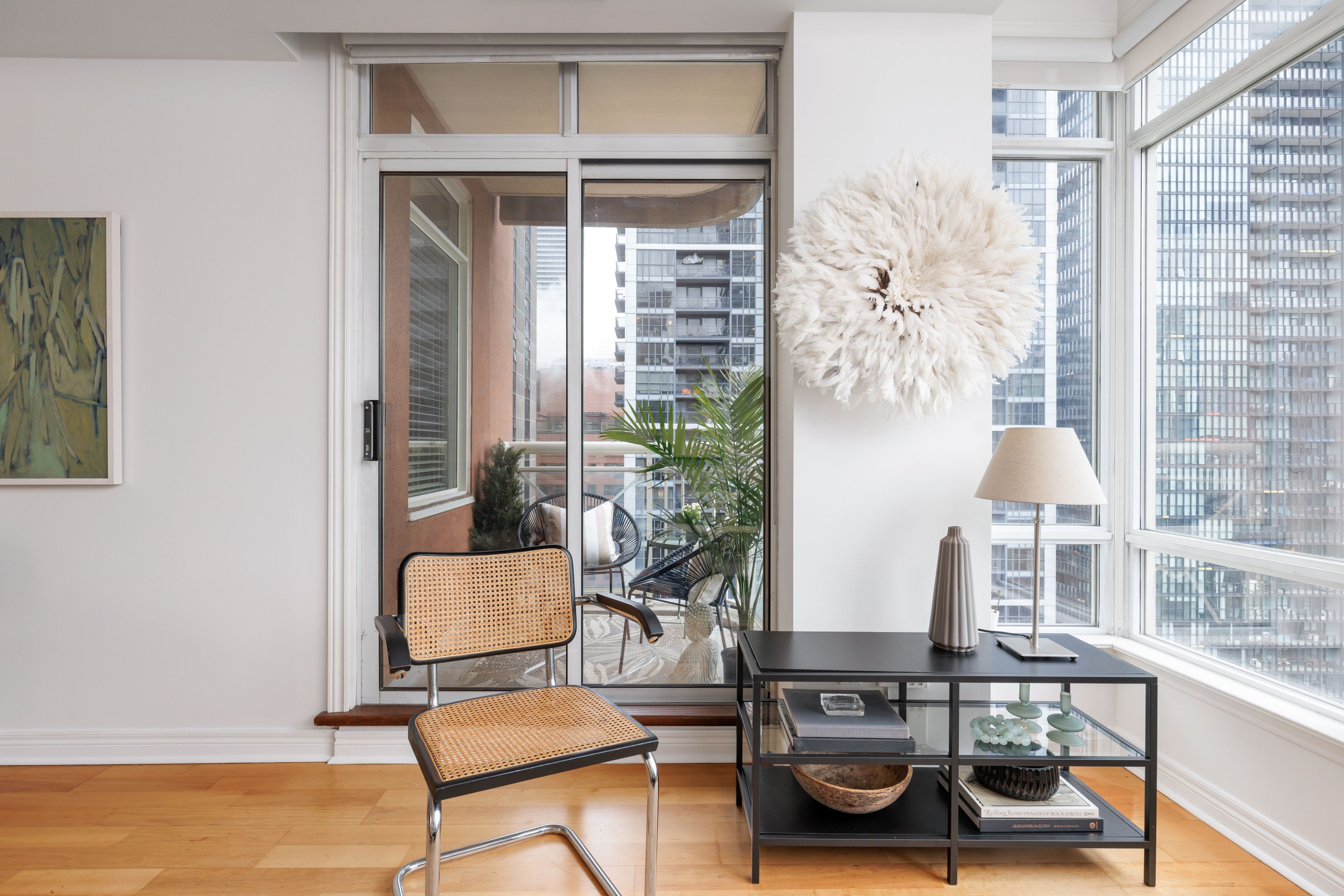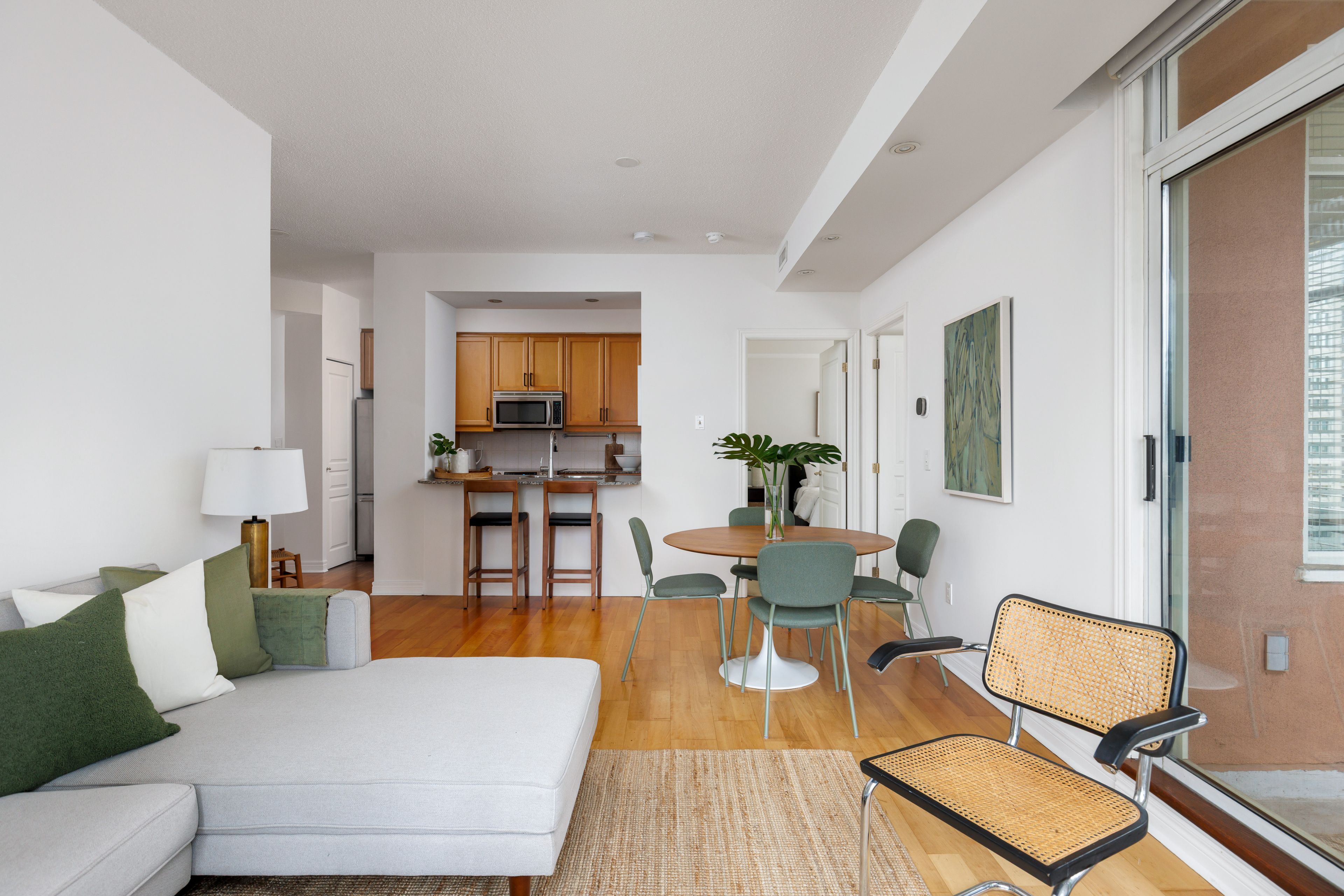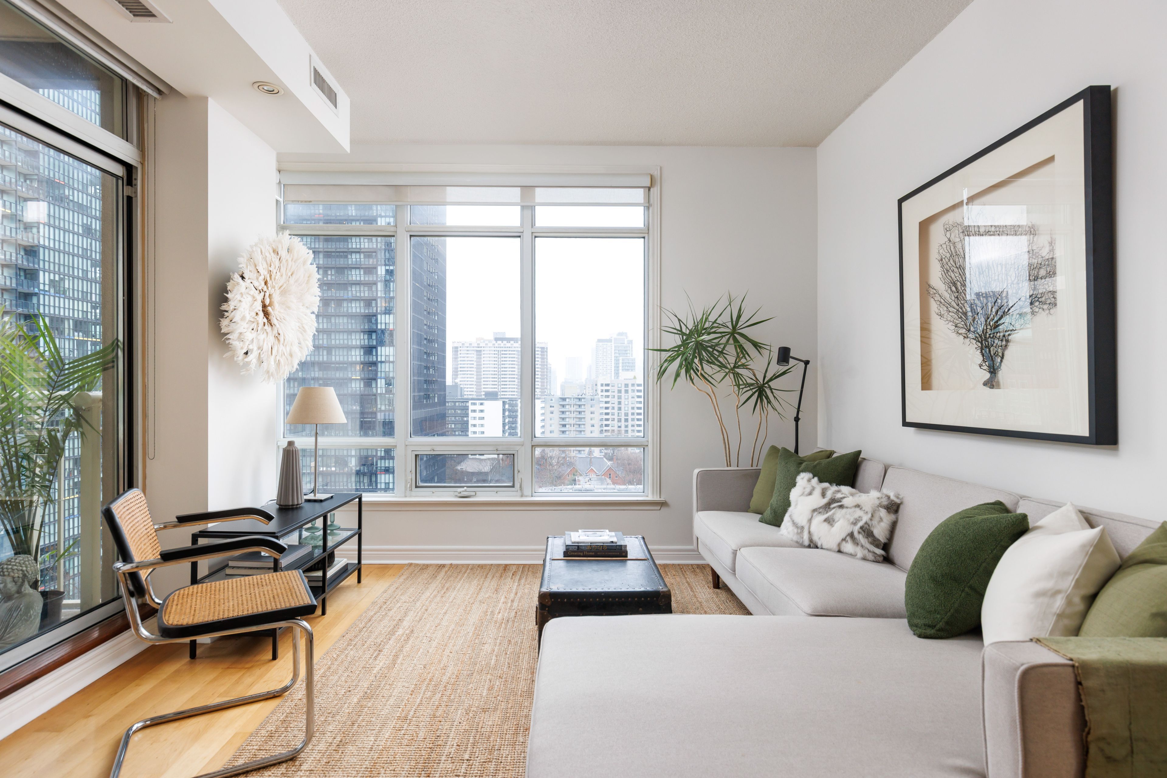 Bloor walk is a boutique condominium building tucked away on a quiet cul-de-sac at 100 haydenstreet, and suite 1206 offers an exceptional opportunity to live in one of toronto's most coveted neighbourhoods. Just steps from the iconic yonge & bloor intersection, the area serves as a gateway to world-class shopping, vibrant entertainment, cultural experiences, direct access to major transit lines, and everyday convenience. It is widely considered the point marking a seamless transition from the city's downtown intensity to the more refined, lifestyle-driven atmosphere of midtown. Spanning over 850 square feet, this rare residence is one of only three units with this highly sought-after layout. Soaring 9-foot ceilings and floor-to-ceiling windows enhance the sense of space, while the coveted south-east exposure floods the suite with natural light throughout the day. Enjoy unobstructed panoramic skyline views overlooking a beautifully landscaped courtyard - your own private urban retreat. A welcoming foyer leads into an expansive open-concept living and dining area, perfect for both relaxing and entertaining. The well-appointed kitchen boasts a rarely-seen integrated pantry cabinet and a convenient breakfast bar that seamlessly connects the space. The thoughtfully renovated 4-piece bathroom is a standout feature. Nearly spanning the length of the unit, it was remodelled to enhance the functionality and flow of the space. It can easily function as a guest powder room while still serving as a private ensuite to the primary bedroom. The generously sized primary bedroom is a true sanctuary, complete with modular closet organizers and large windows adorned with california shutters. Additional highlights include parking and a large locker room for ultimate convenience. Residents enjoy an impressive array of amenities, including 24-hour concierge service, an indoor pool, a state-of-the-art gym, and communal bbqs on the rooftop deck. ** open house cancelled sold conditional **