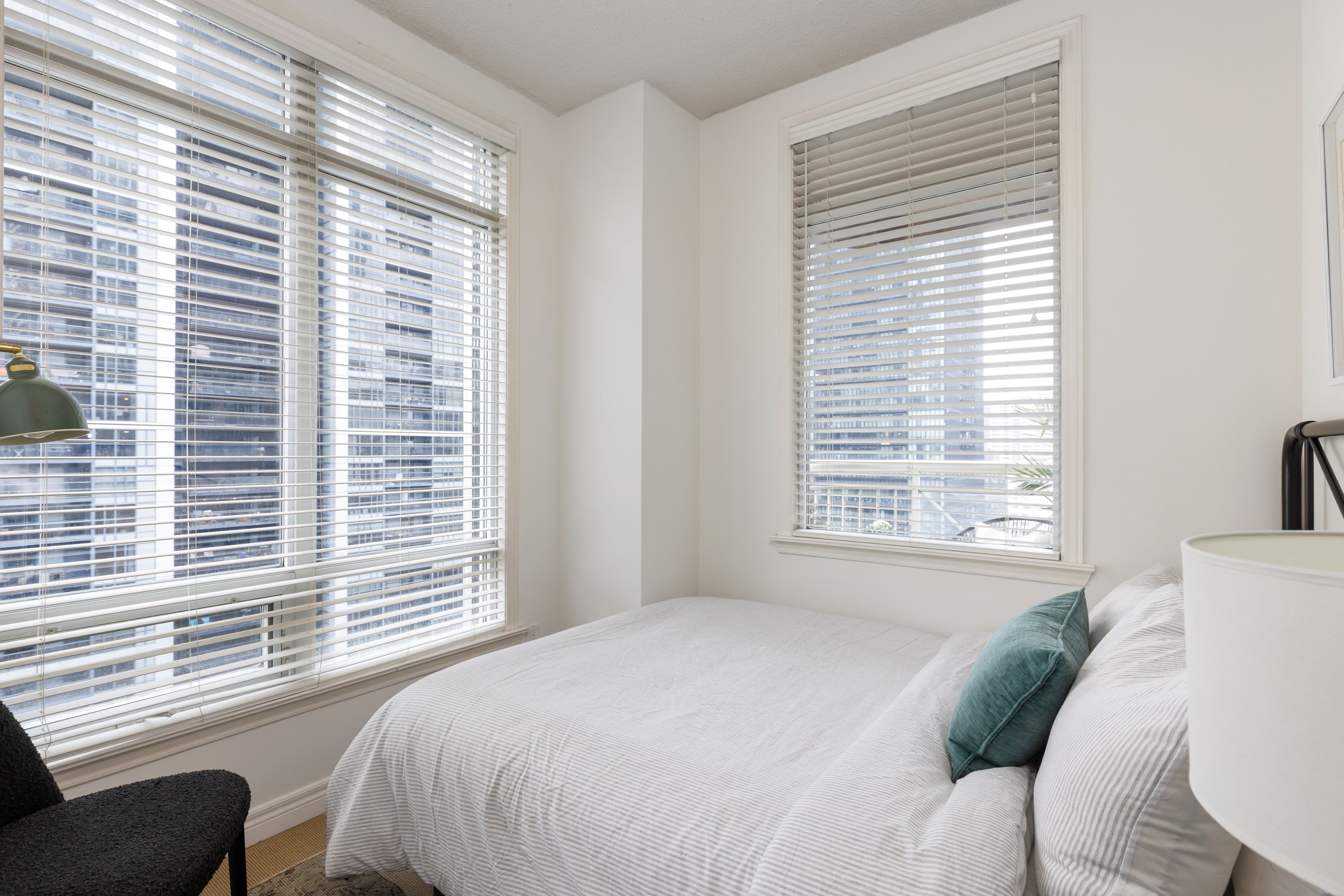 • Bright suite with 9-foot ceilings and large windows for natural light.