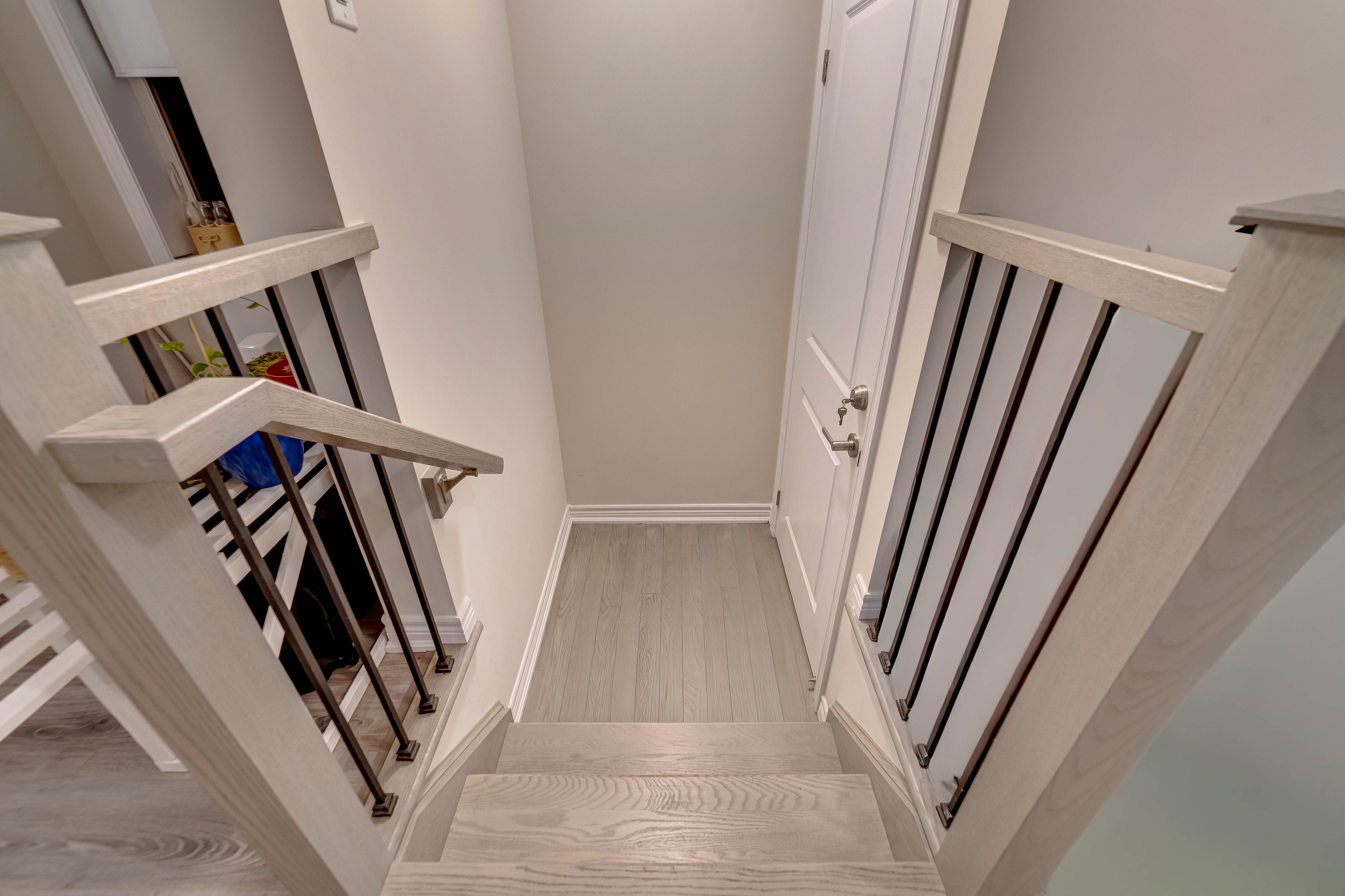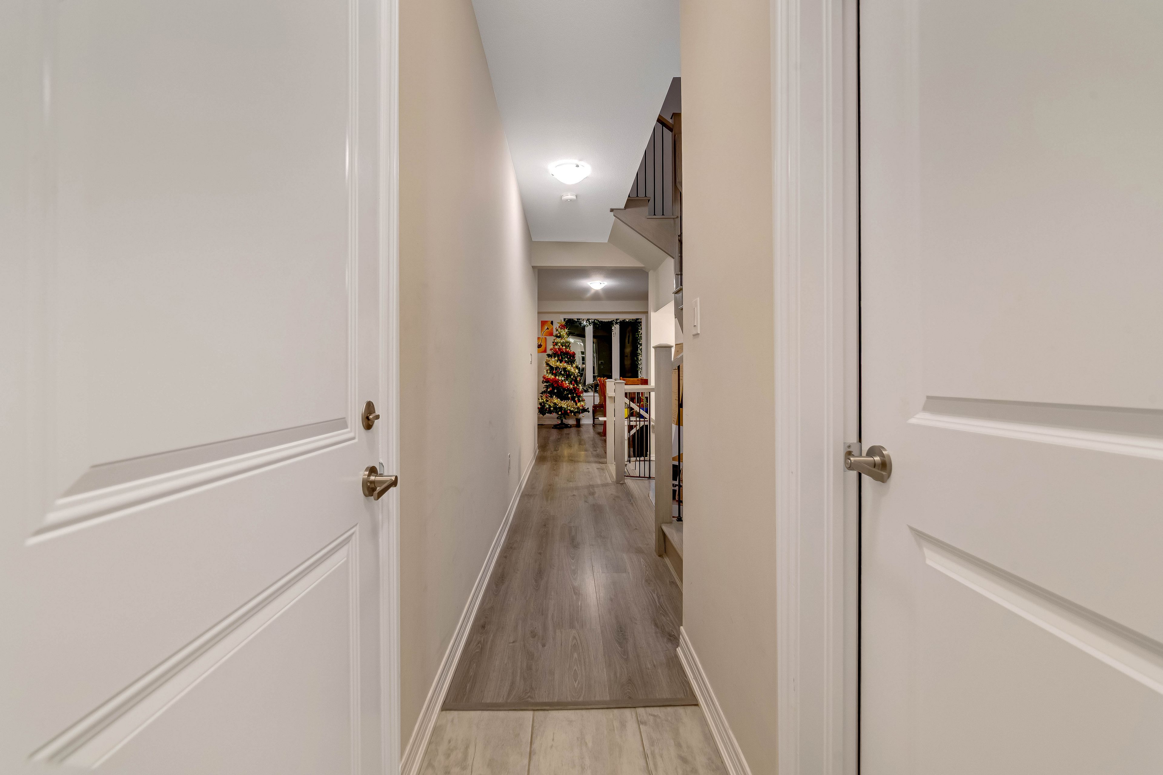 Located in a highly desirable neighbourhood, this beautiful 2-storey townhome backs onto a serene ravine and offers a walk-out basement. The bright open-concept main floor features upgraded hardwood flooring, large windows, and a stylish kitchen with upgraded cabinets, quartz countertops, stainless steel appliances, built-in microwave, modern backsplash, and an oversized island. Walk out to a large deck overlooking the ravine-perfect for relaxing or entertaining. The oak staircase leads to the second level with hardwood in the hallway, a convenient upper-level laundry, a primary bedroom with a private ensuite, two additional spacious bedrooms, and a full bath. Additional highlights include double-car driveway parking and a central vacuum rough-in. Close to parks, trails, shopping, public transit, cambridge mall, and major highways.