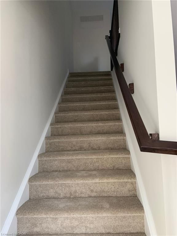 3 bed, a den & 2. 5 bath, 3-storey townhome is located less than 5 minutes drive from hwy 401 and in close proximity to grocery store, walmart, canadian tire and many more daily amenities. Main floor features a spacious den with a 3 piece bathroom. Second floor features a bright living room with big windows allowing abundance of natural light, a dining room, powder room and an open concept kitchen with stainless steel appliances. Easy access to 401, 40 minutes to gta, few minutes to kitchener, waterloo and guelph.