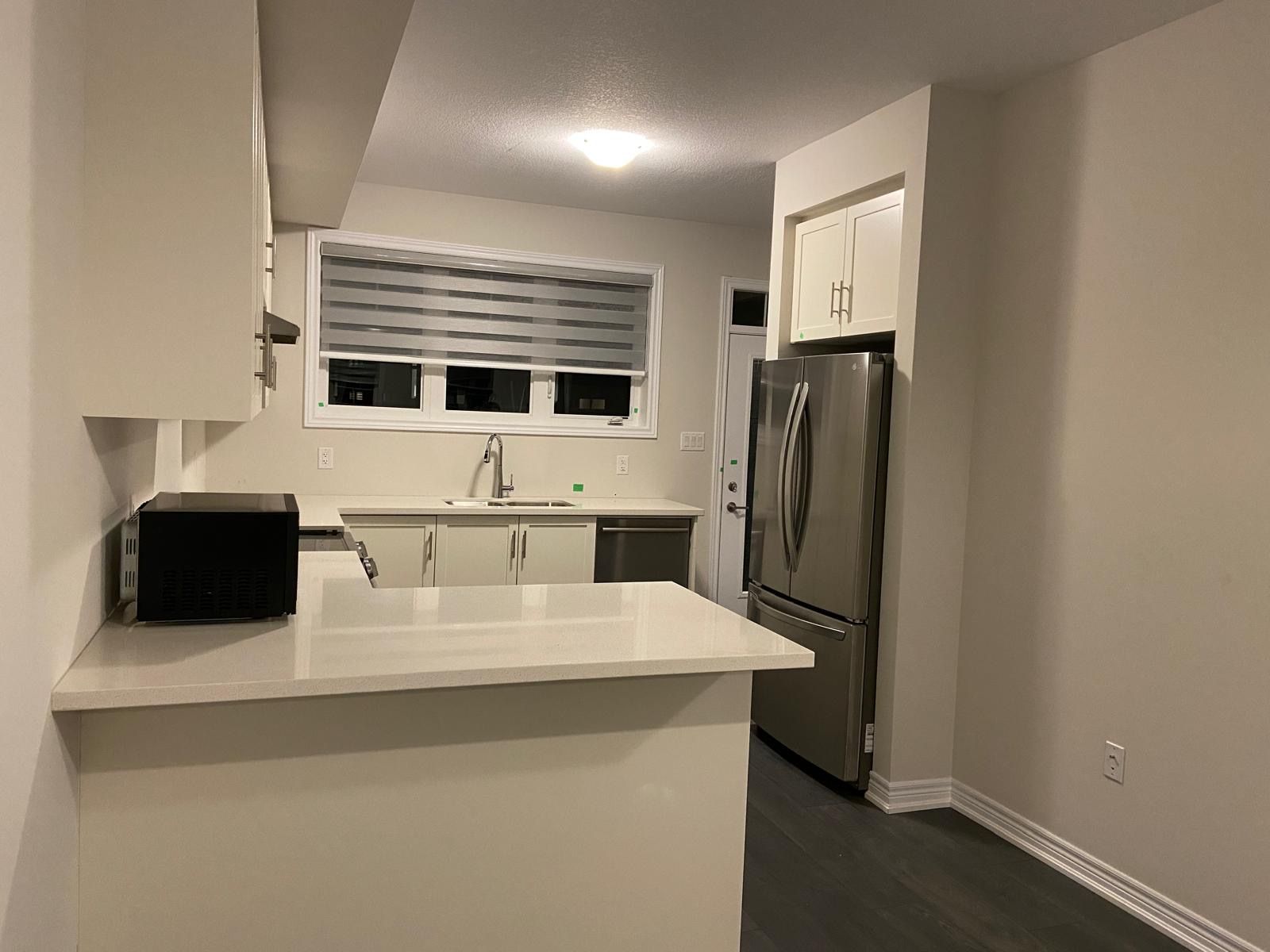 Welcome to 33-100 hollywood crt in cambridge. This is fairly a new townhouse (3 years old) with 3 bedrooms, a den (which can be used as a bedroom or office), 3 bathrooms (2 full and 1 half), unfinished basement and 2 car parking. This beautiful townhouse features an upgraded kitchen with s/s appliances, quartz countertop and tile backsplash. The house has oak stairs and laminate floor in the living area. There is a balcony of good size which can be accessed from the kitchen. The property boasts a fantastic location. It is a 5 minutes' drive to hwy 401, close to hespeler road and conestoga college. It is around 40 minutes' drive to gta and a few minutes to kitchener, waterloo and guelph. The house is in a well-managed complex just minutes from shopping, parks, schools and public transit. It is walking distance to mall and amenities such as walmart, canadian tire, dollarama, fitness/gym, restaurants and much more. Ground floor features a spacious den with a full bathroom. Main floor features a bright living dining room with big windows allowing abundance of natural light, powder room, an open concept kitchen with entrance to balcony and full-size laundry. Upper floor features 3 bedrooms, a full bathroom and linen closet. All bedrooms offer good closet space and natural light. We've thought of everything to make your move seamless, including central air conditioning, a water softener and window coverings. This is a move-in-ready home in a location that offers both comfort and convenience. Working professionals and students are welcome. Tenant will be responsible to pay all utilities - water, hydro, gas and enercare. Fresh coat of paint can be done, if required.