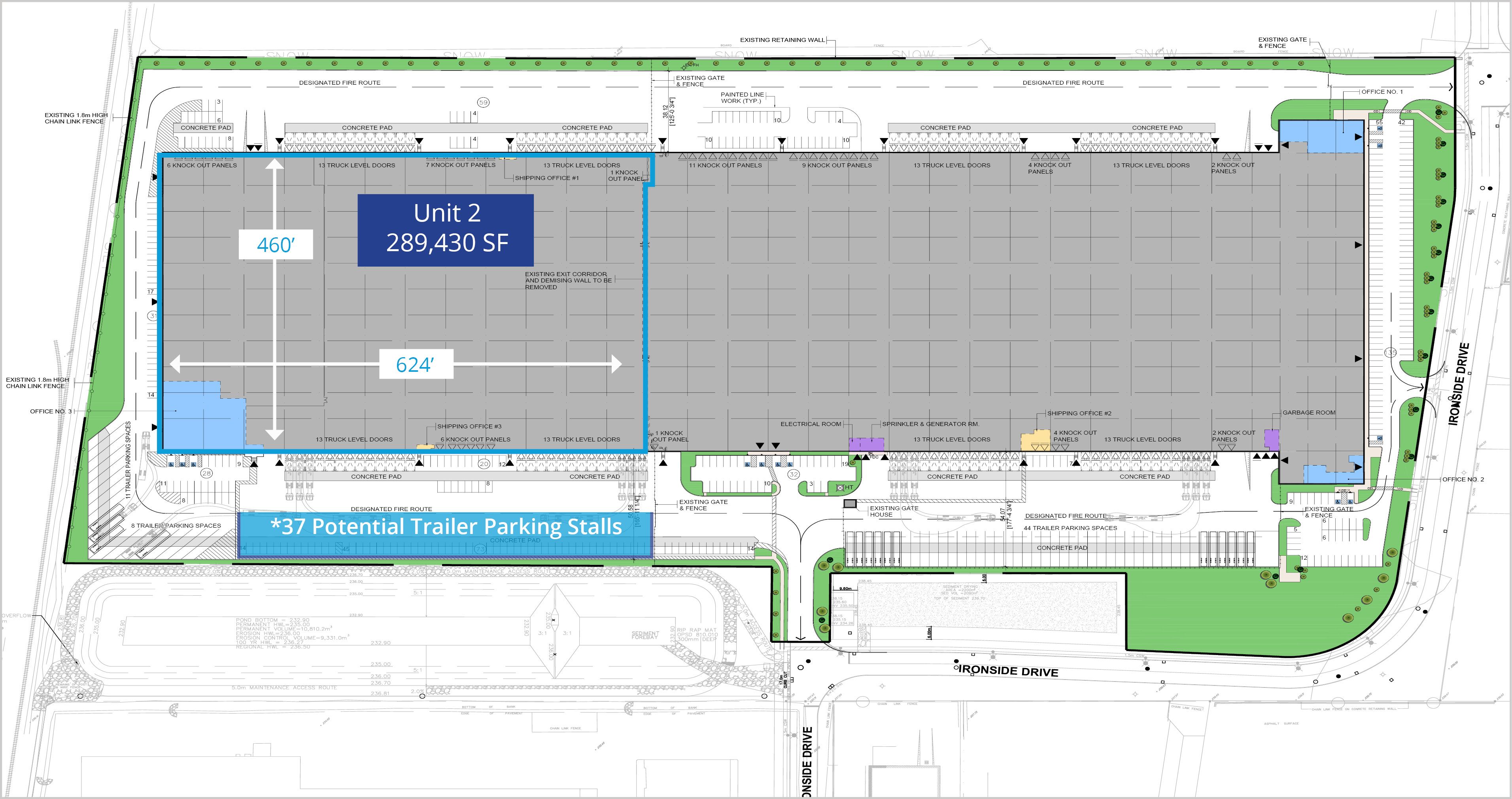 • Up to 56 secured trailer parking stalls accessible on-site.