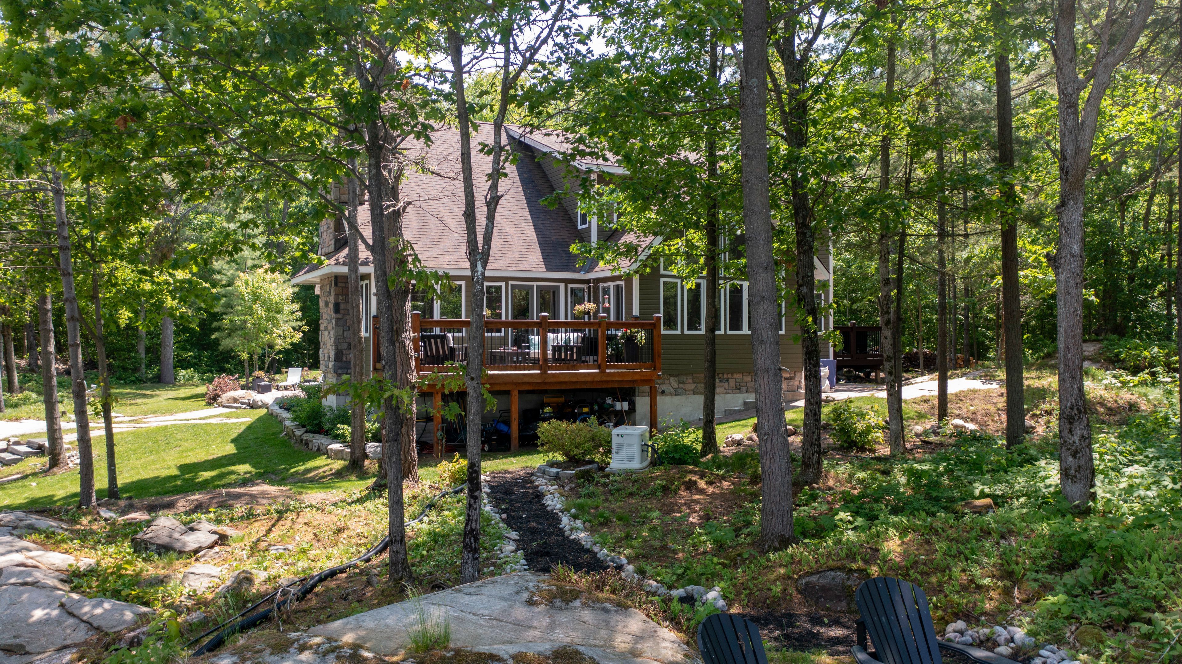 Waterfront paradise | boat access only | private dock | 4-season retreat | three decks | hot tub | escape to your own private oasis with this exceptional boat-access-only waterfront property, perfectly designed for those who crave serenity, adventure, and luxury. This quality-built, four-season home offers unmatched privacy and breathtaking natural beauty. Been chasing sunsets? Well consider this the end of your search. Here you can end the day with stunning, unobstructed views over the water. The sunsets here are nothing short of magical. Secure your boat with ease at your own private dock, and explore the surrounding waters at your leisure. Soak under the stars in the private hot tub on one of three decks, the perfect way to unwind after a day on the lake. Designed for all seasons, this home features top-tier construction and modern comforts, making it ideal for weekend escapes or full-time living. The main floor has been upgraded with low maintenance, high quality luxury vinyl flooring to stand up to high traffic and wet feet! Power outages are common in cottage country, but we've got you covered with a whole home generator backup system! Conveniently located just a short boat ride from the marina, you'll not only have easy access to supplies, dining, and services, you will be able to enjoy a quick ride to your dock in protected water. Whether you're looking for a peaceful family cottage, an outdoor adventure base, or a turn-key luxury retreat, this rare waterfront gem has it all.