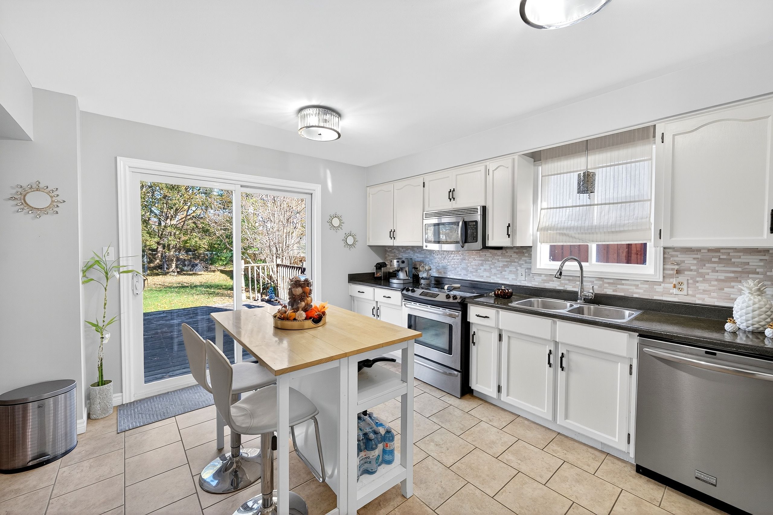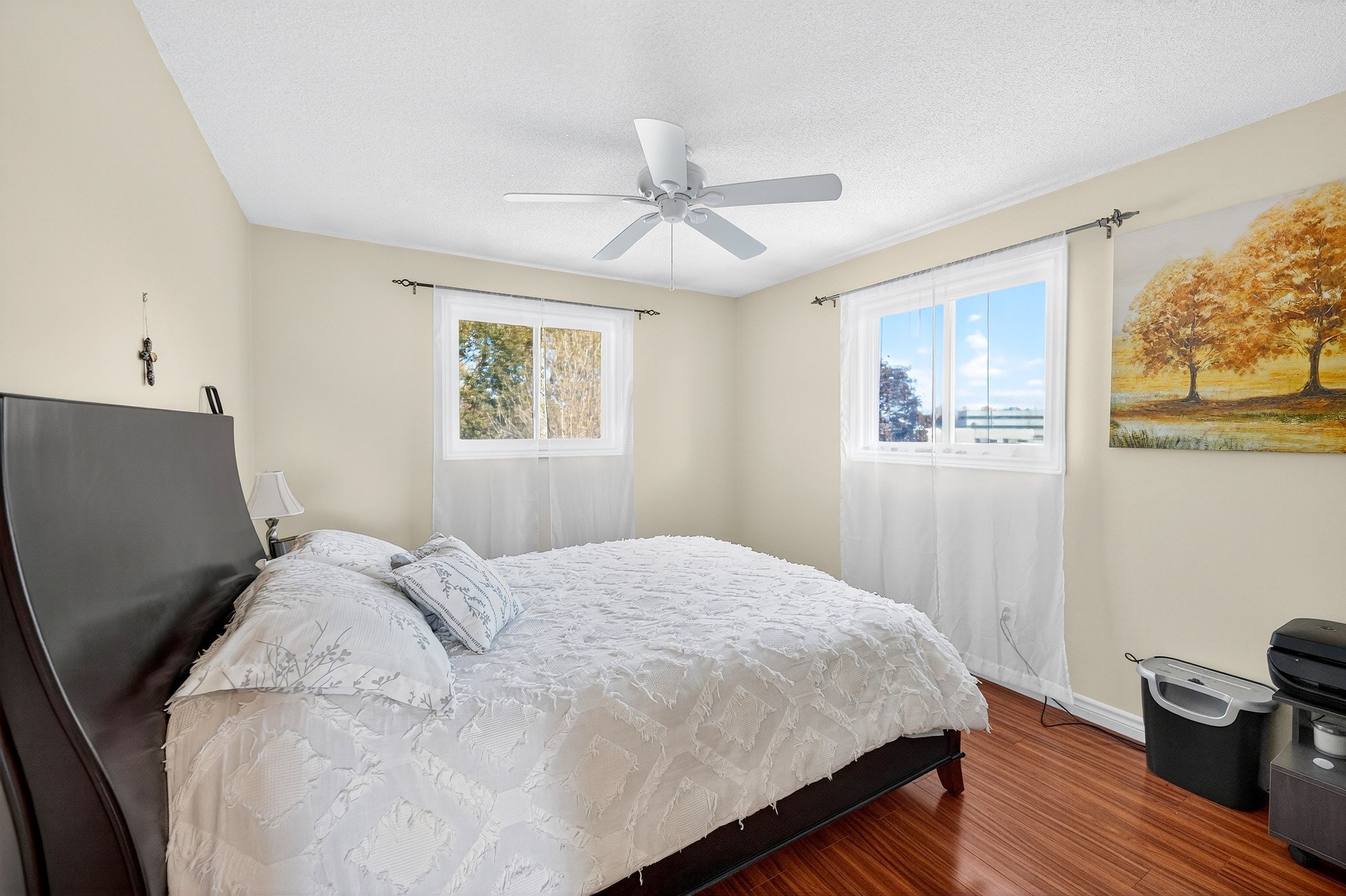 Wow ! Absolute must see! This clean & bright home boasts 175' deep lot. Kitchen and breakfast are with w/o to a large deck leading to your backyard oasis, open concept for entertainment. Living room combined with dining room with a lot of natural light. Primary bedroom with w/i closet and 2 pcs ensuite. 2 sizeable bedrooms with/ closet and large windows. Finish basement with a wet bar perfect for entertainment. New interlocking stone and armour stone steps at your front entrance and leading to the backyard. Double garage massive driveway with 4 car parking, newly windows throughout the house.