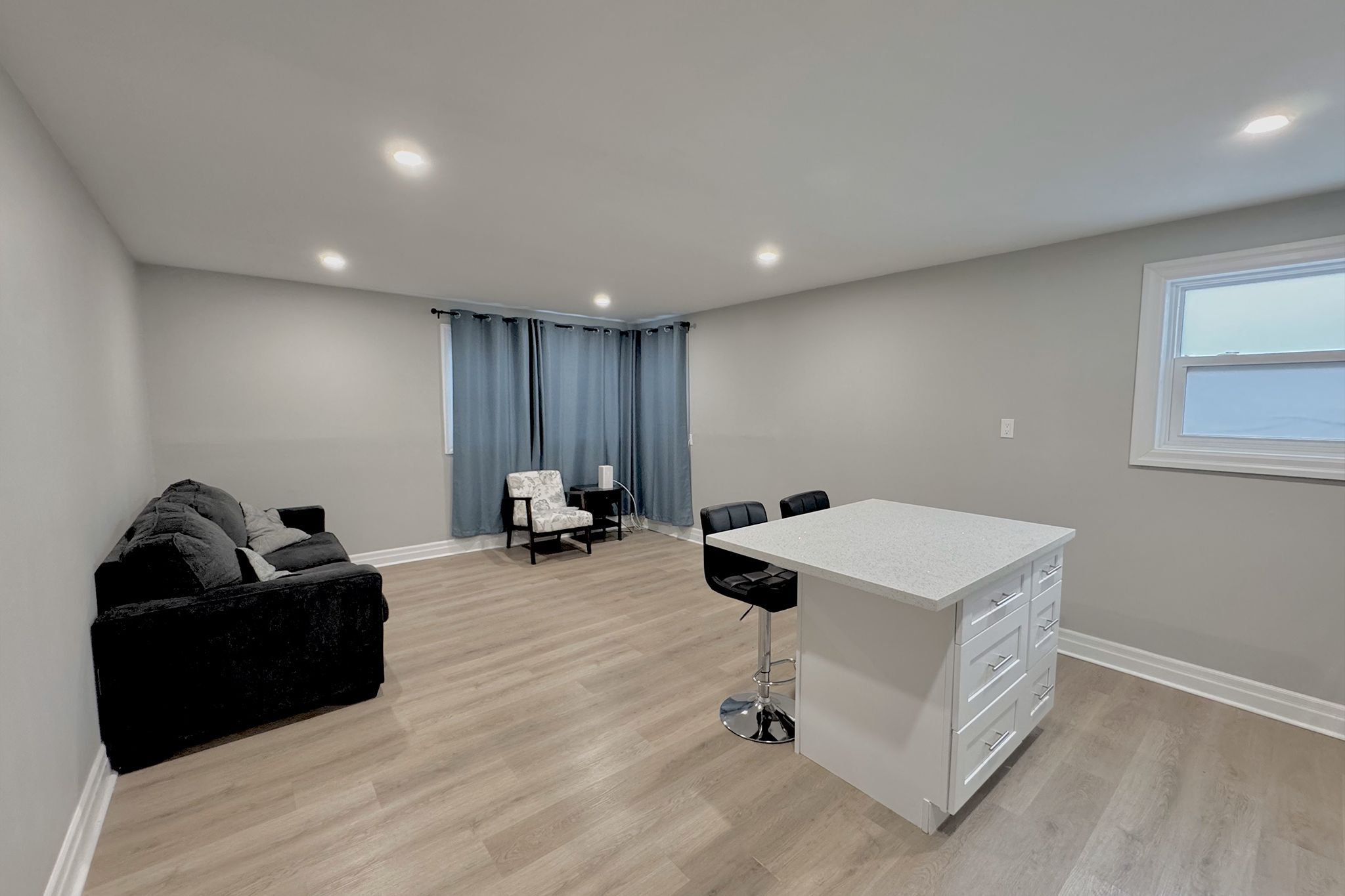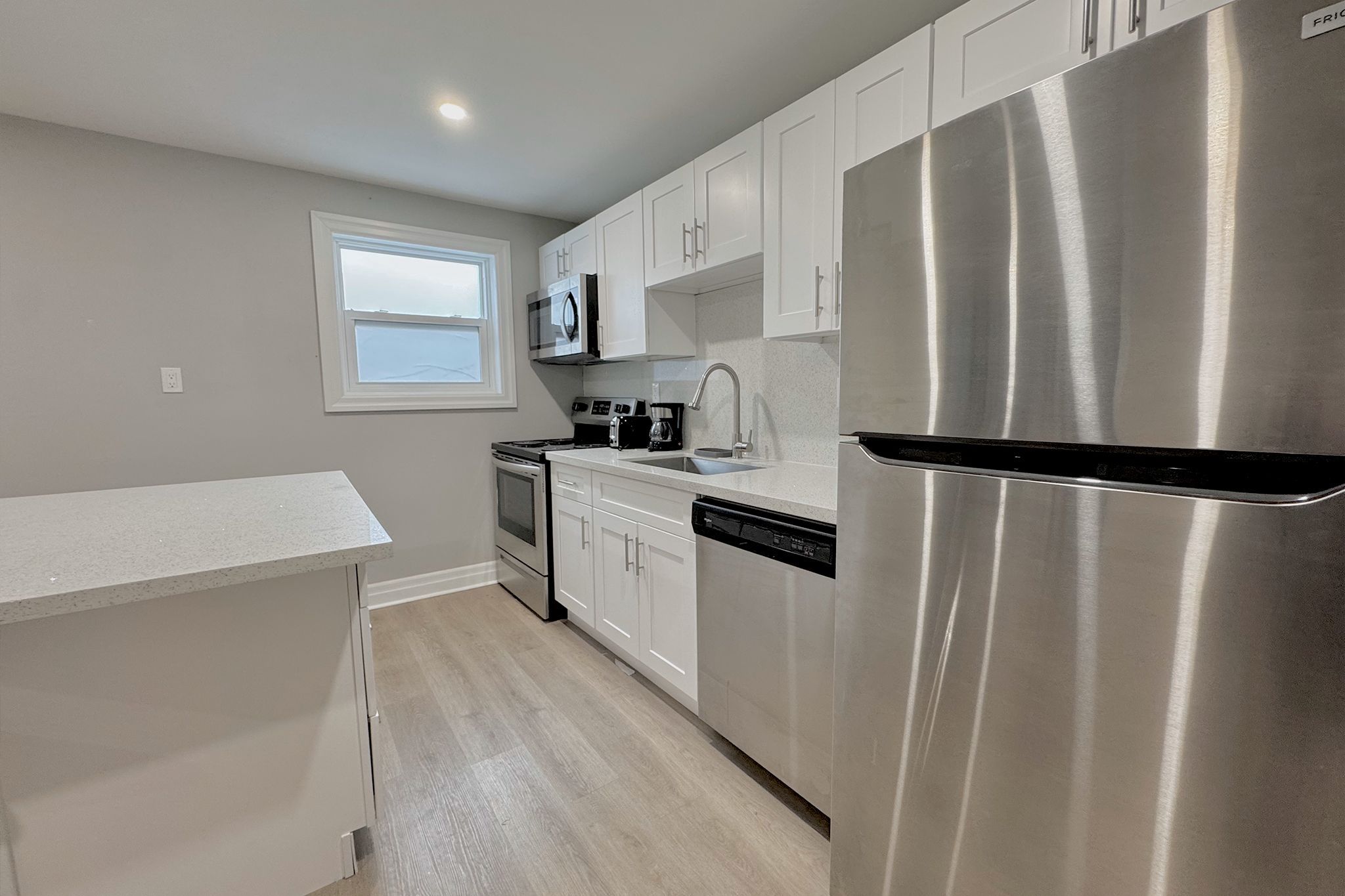• Open-concept kitchen featuring quartz countertops and new appliances.