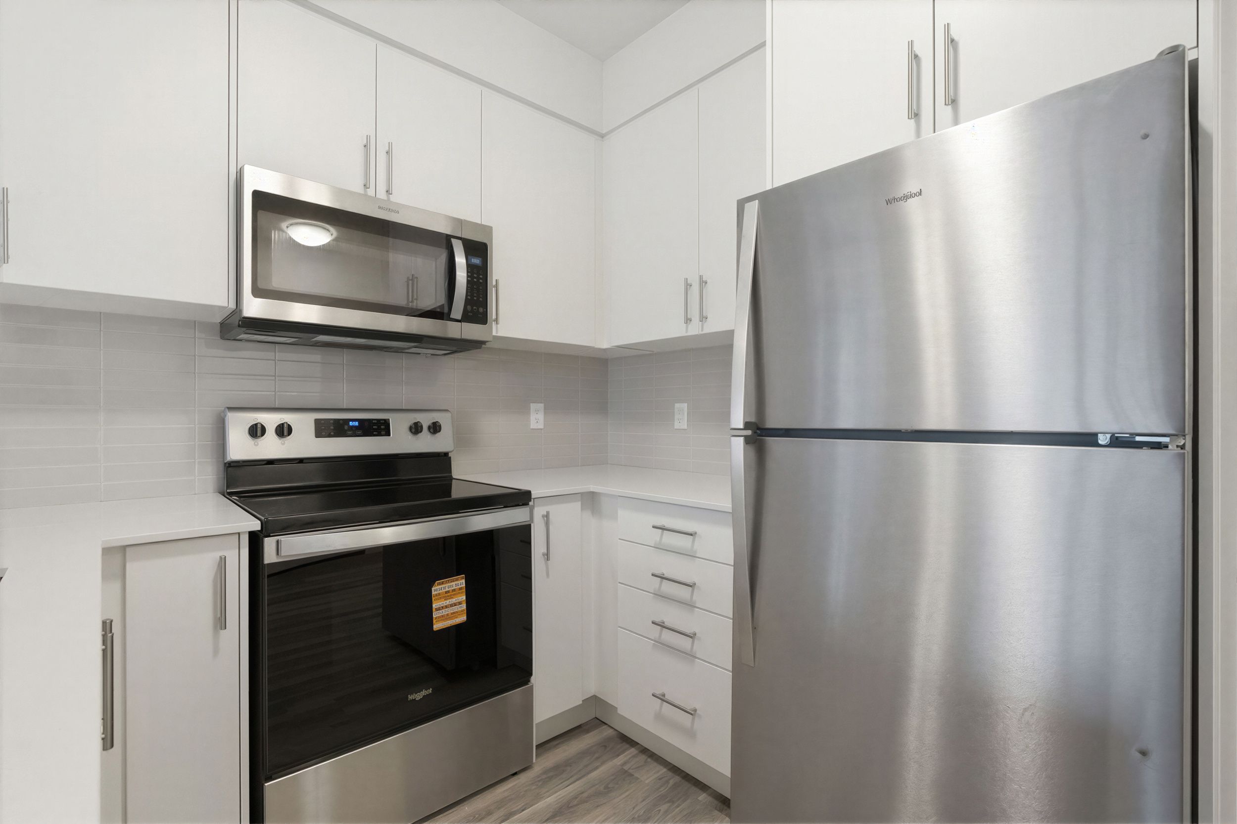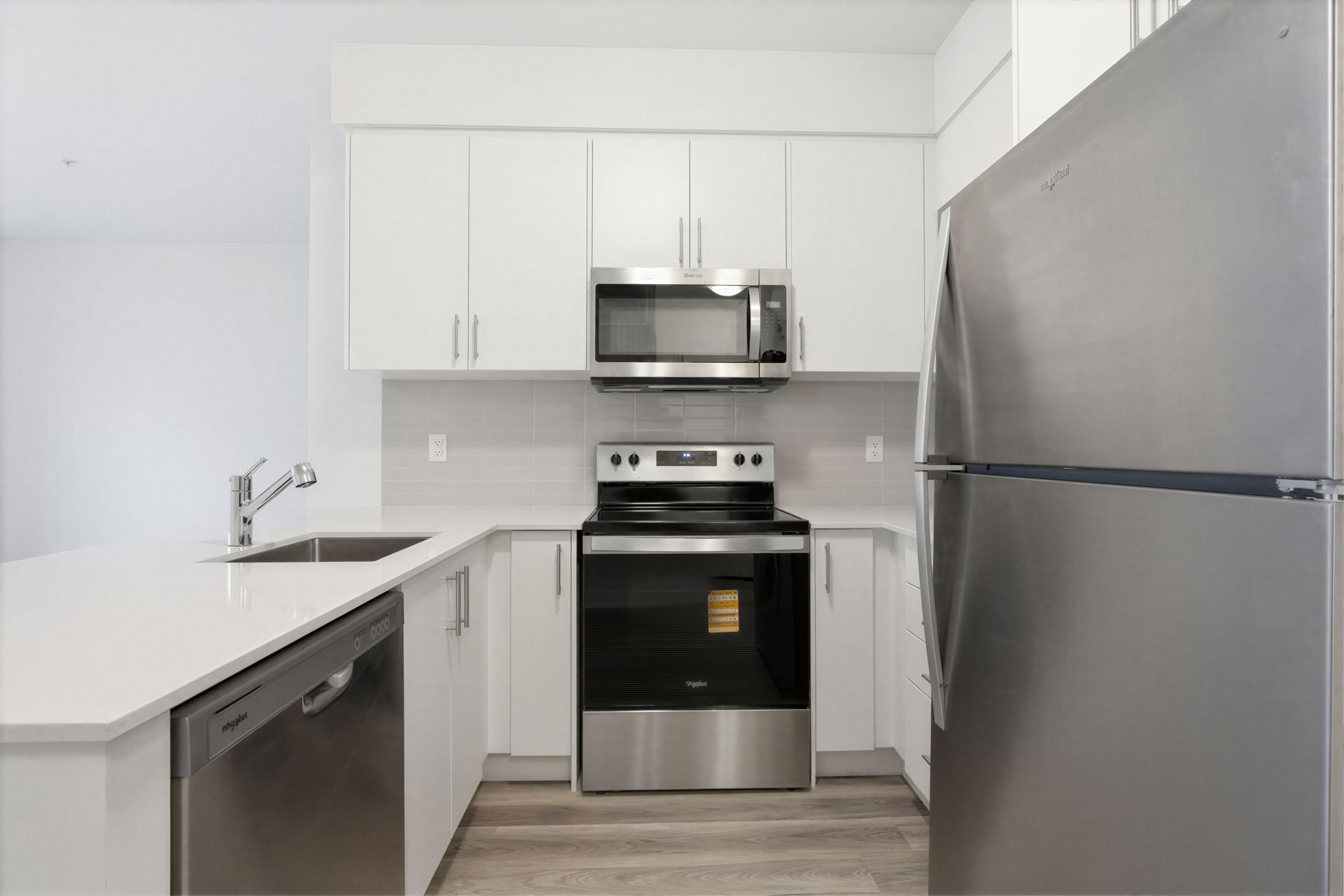 • Open-concept layout with premium quartz countertops and stainless steel appliances.