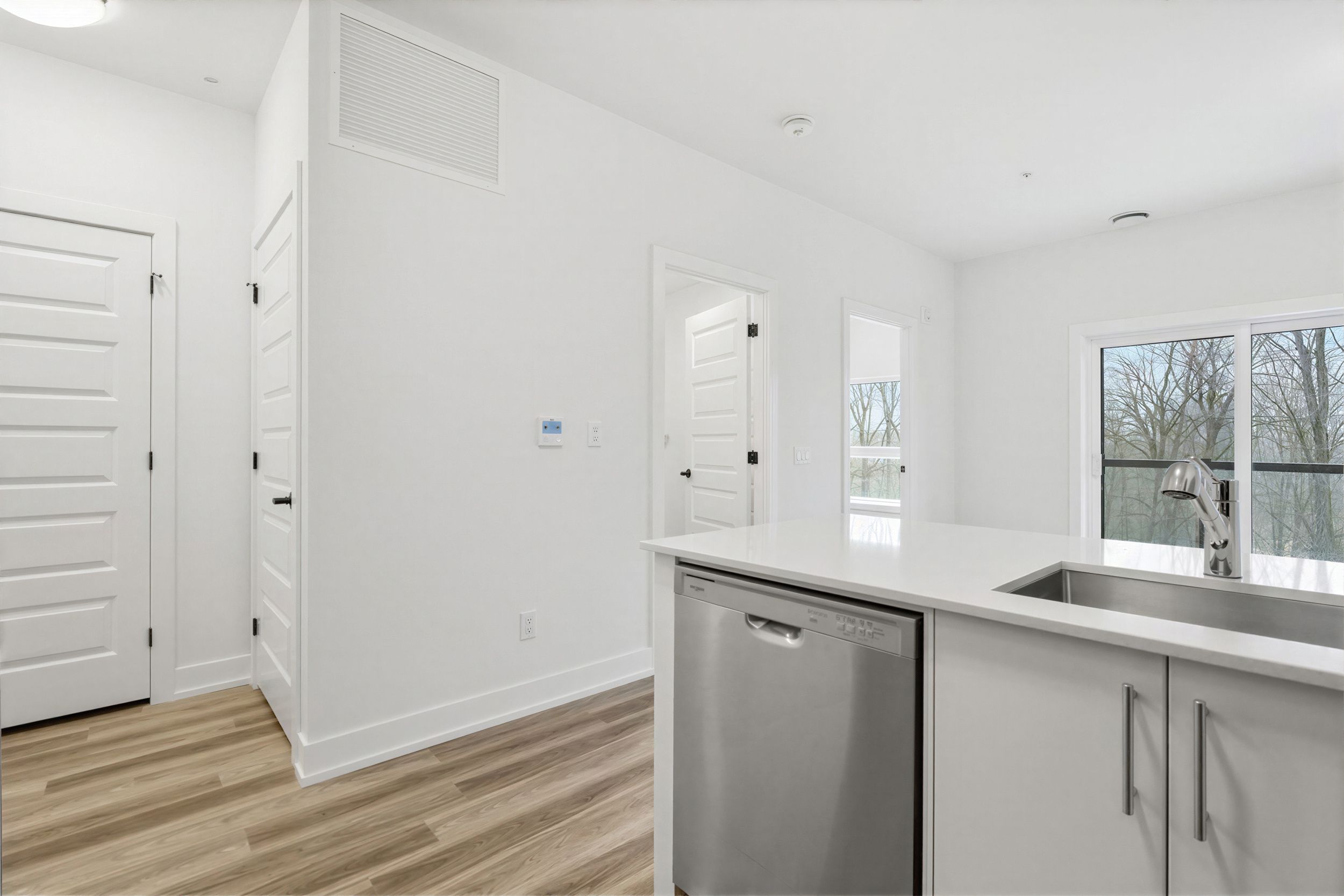 Experience sophisticated urban living in this brand-new, 725 sq. Ft. 1-bedroom + den suite for sale by reid's heritage homes. Designed for the modern professional, the open-concept layout features premium quartz countertops, sleek s/s appliances, & durable luxury vinyl plank flooring throughout. The versatile den offers the ultimate "work-from-home" sanctuary or a private guest retreat. Step out and breathe in the tranquility; this unit uniquely backs onto a lush, private forested area, offering serene views rarely found in condo living. Includes: in-suite laundry, 1 dedicated parking space, and a premium kitchen package. The purchase price set out above is net of hst. How hst will be addressed will be determined at the time the purchaser enters the agreement of purchase and sale, based on the status of the existing and proposed hst rebates announced by the provincial and federal governments. Open house april 25 & 26 - 12-4pm