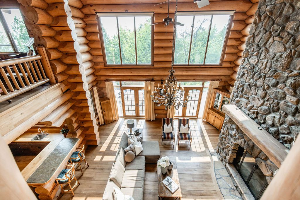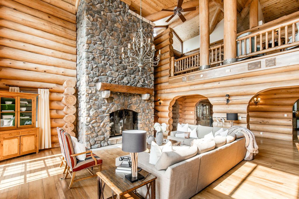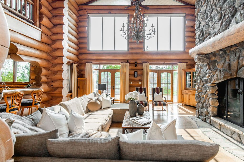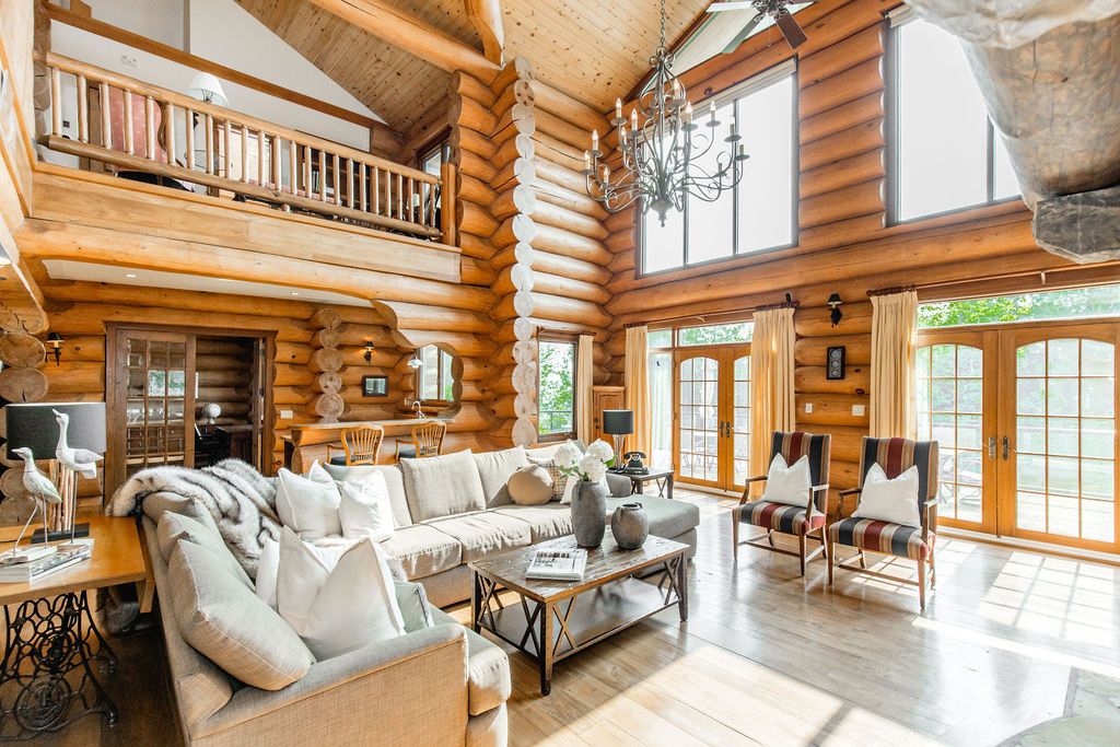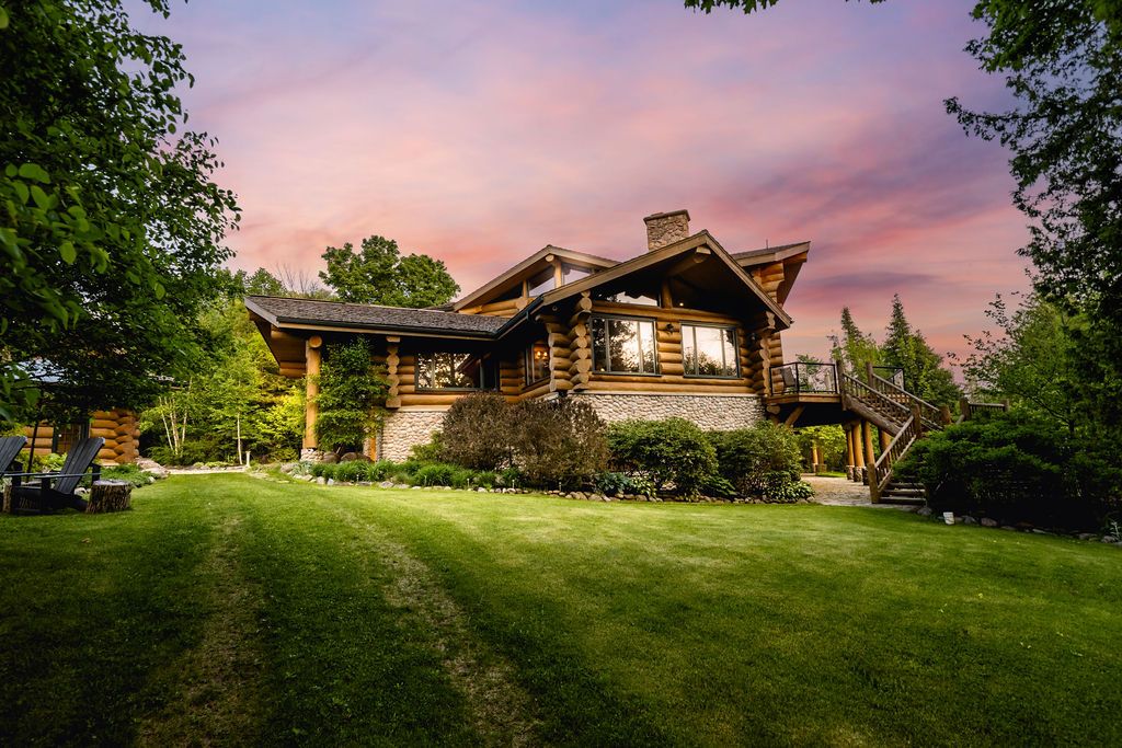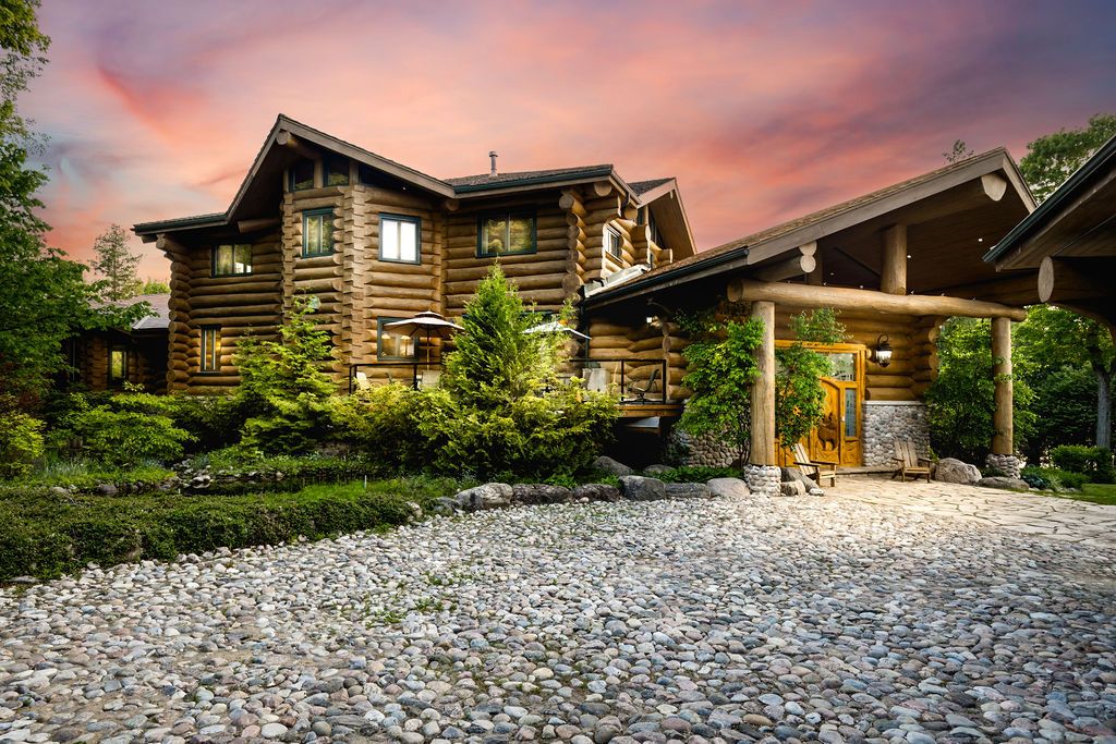 • Iconic log home on 4.37 acres with stunning panoramic waterfront views.
