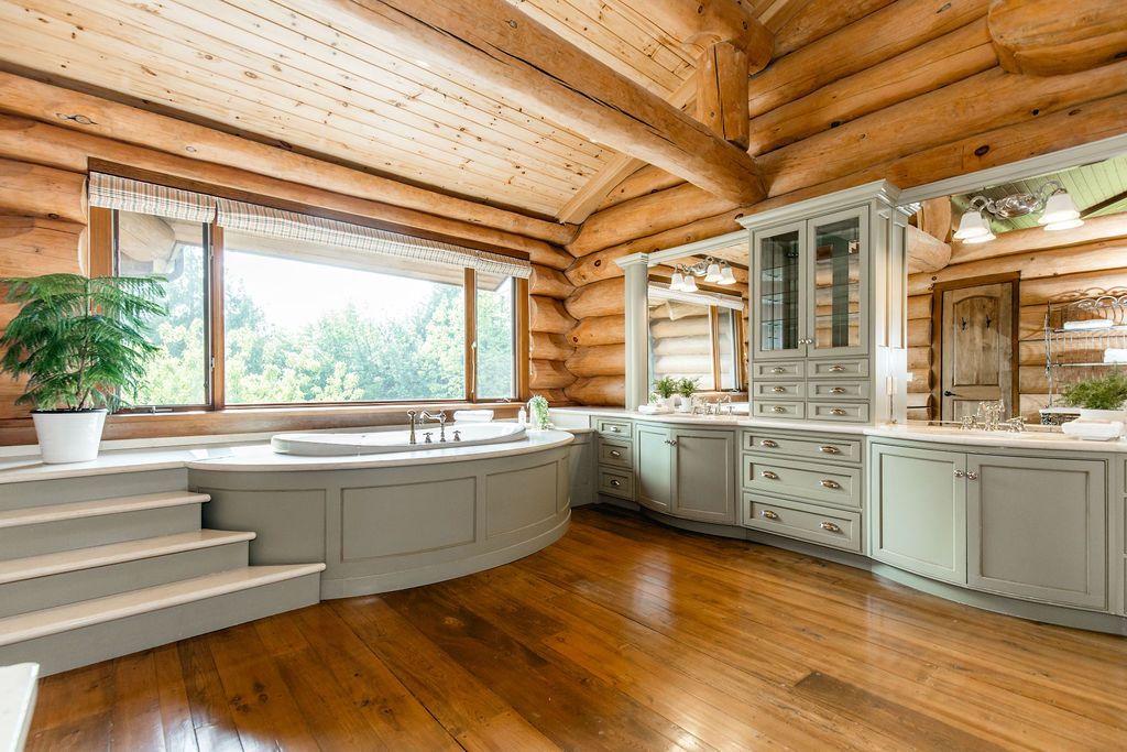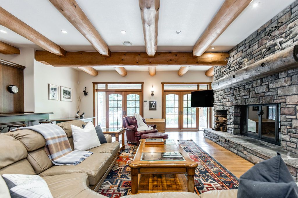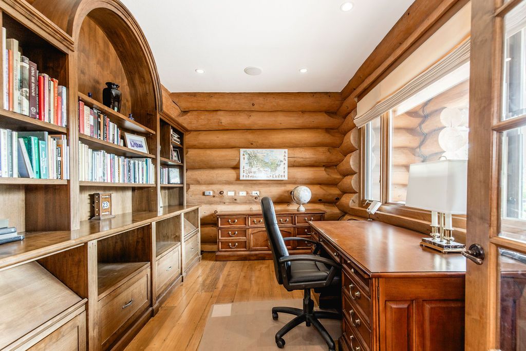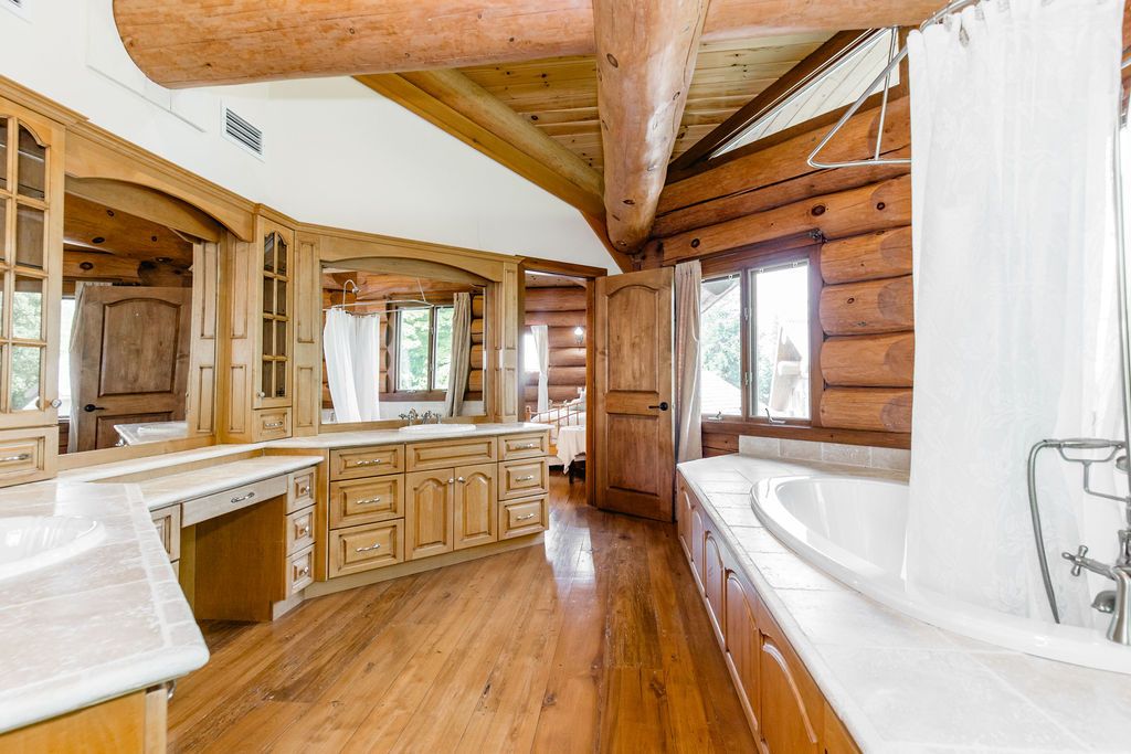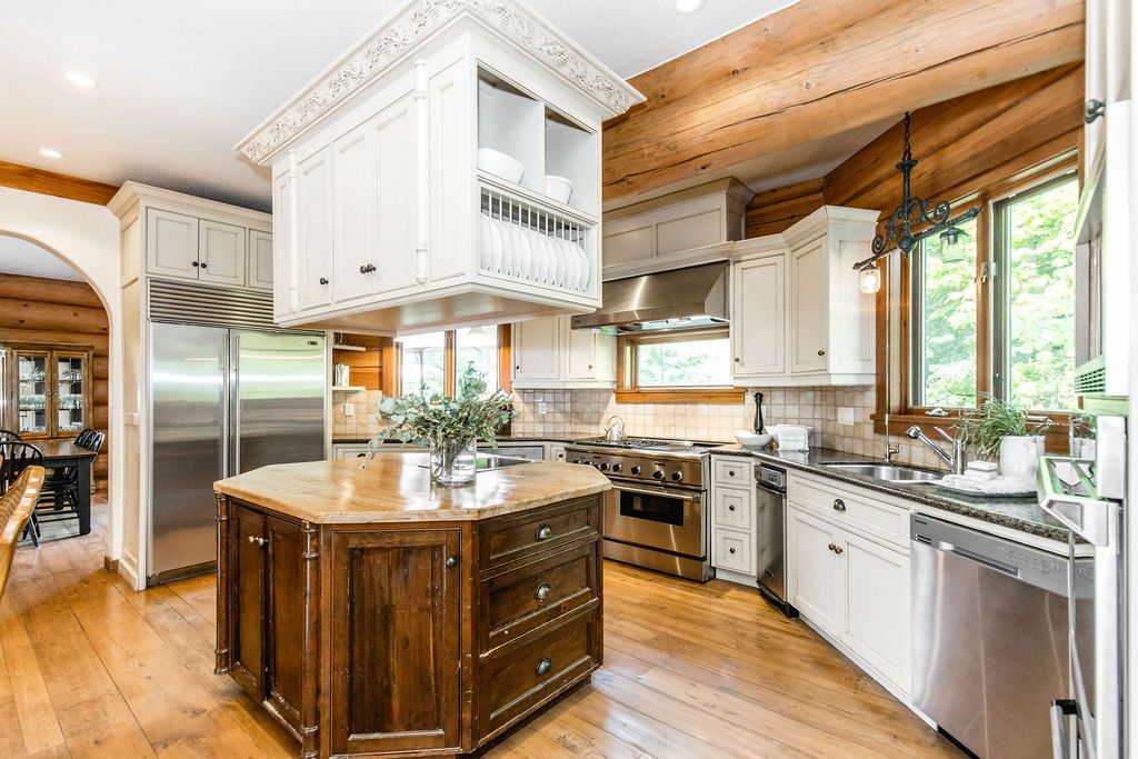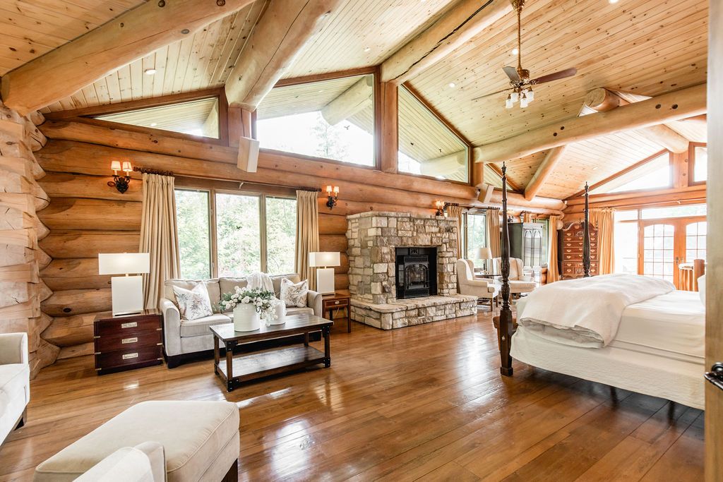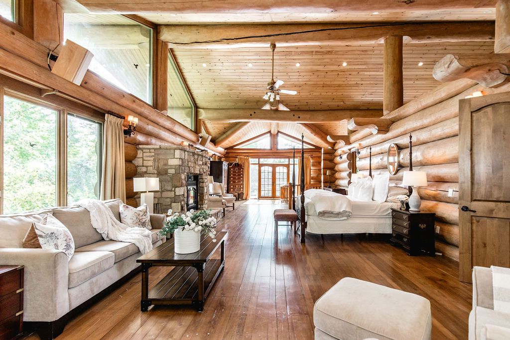 • Iconic log home on 4.37 acres with stunning panoramic waterfront views.