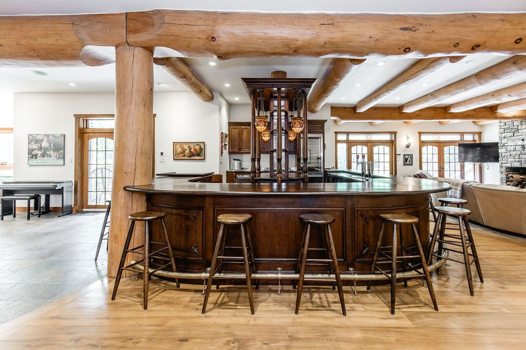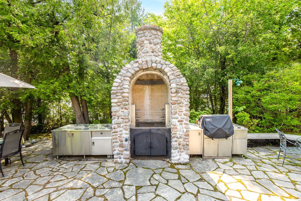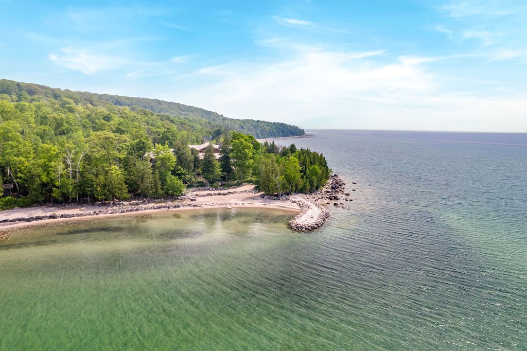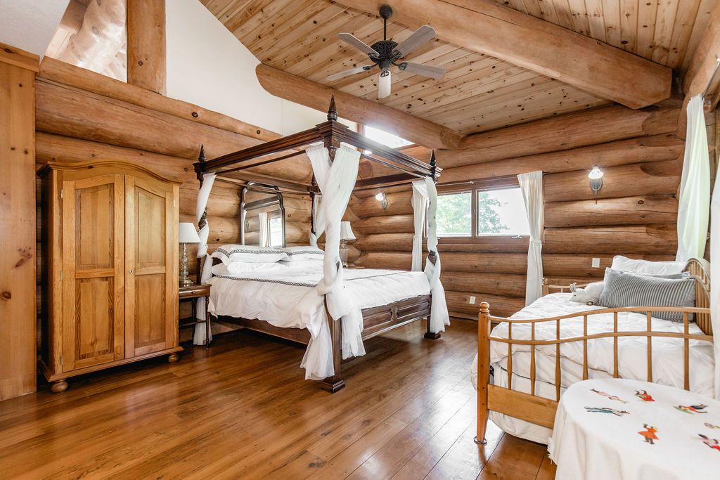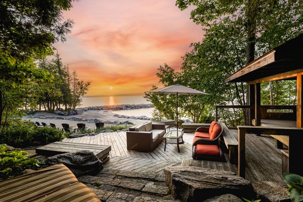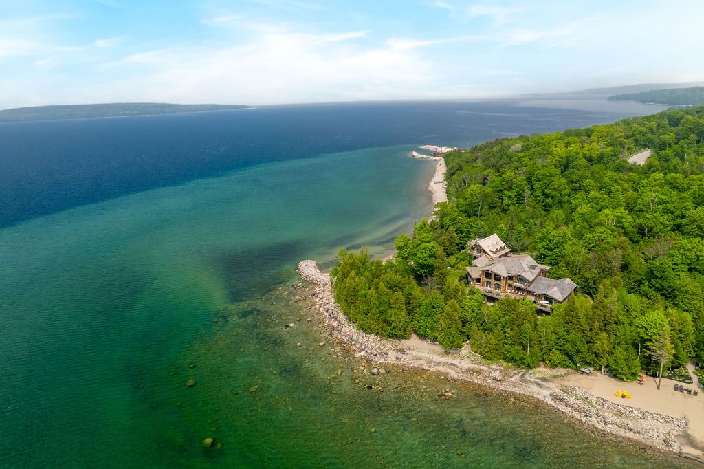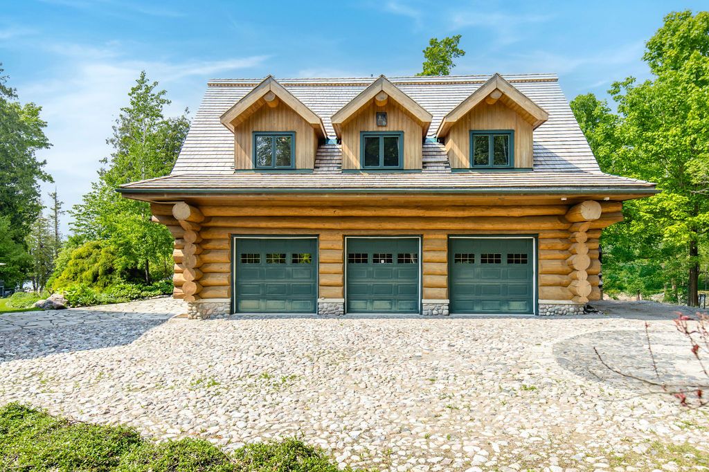 Welcome to one of canada's most iconic luxury log homes, a rare georgian bay waterfront estate often described as the "yellowstone of the north." located at the very tip of cedar point on georgian bay, this one-of-a-kind waterfront mansion offers exceptional privacy, panoramic bay views & an irreplaceable point-of-land setting. Built in 2002 as a private resort-style retreat, this custom log estate sits on 4. 37 acres with 412+ ft of shoreline, featuring both sandy & pebble beaches, a 90ft stone pier & an 80ft seasonal dock - ideal for boating, swimming & luxury waterfront living. With approximately 14,000 sq ft of living space, the home showcases master craftsmanship, soaring vaulted ceilings, exposed timber construction & uninterrupted water views from nearly every room. The main residence offers 8 bedrooms & 8 bathrooms, plus separate guest or staff quarters w/ 2 additional bedrooms & 2 bathrooms, making it ideal for multi-generational living, executive retreats or luxury hosting. A striking 20-ft grand foyer w/ hand-carved log doors & a rare carved centerpiece sets the tone for this architectural masterpiece. Designed for entertaining, the home features formal & casual living areas, a chef's kitchen with premium dacor, thermador & sub-zero appliances, butler's pantry, stone fireplaces, wet bar, private office & a spectacular main-floor primary suite with vaulted ceilings, spa-style ensuite & private waterfront deck. The walk-out lower level includes a newly constructed accessible bedroom w/ ensuite, games room, gym, home theatre & an unforgettable 20-seat english-style pub. Outdoors, enjoy landscaped grounds, gentle streams, cabana, private beach & an 8-person in-ground hot tub. Additional features include in-floor radiant heating, heated 4-car garage, cedar shingle roof, irrigation system, cobblestone driveway, starlink high-speed internet & reliable cell service. A true georgian bay luxury estate, offering rare frontage, resort-level amenities & legacy-level value.