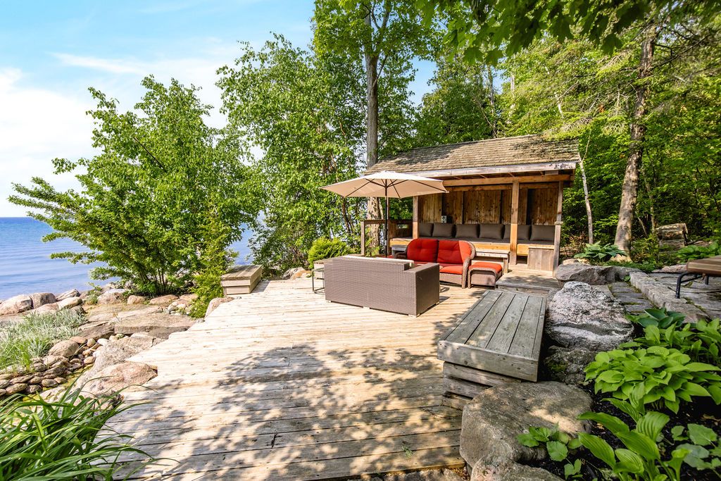 • Includes private beach, stone pier, seasonal dock, and hot tub.