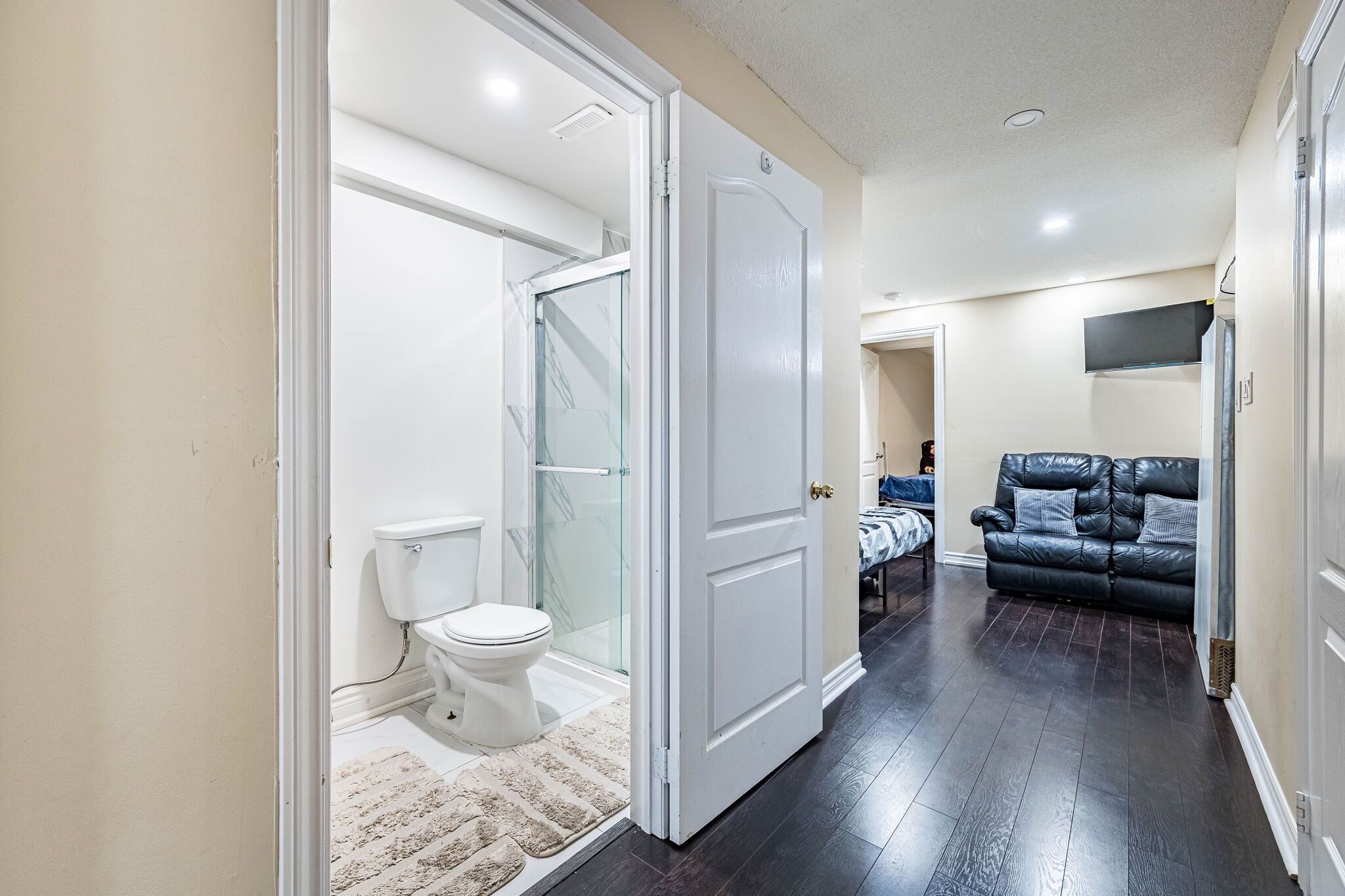• Spacious lower level with additional living area and multiple bathrooms.