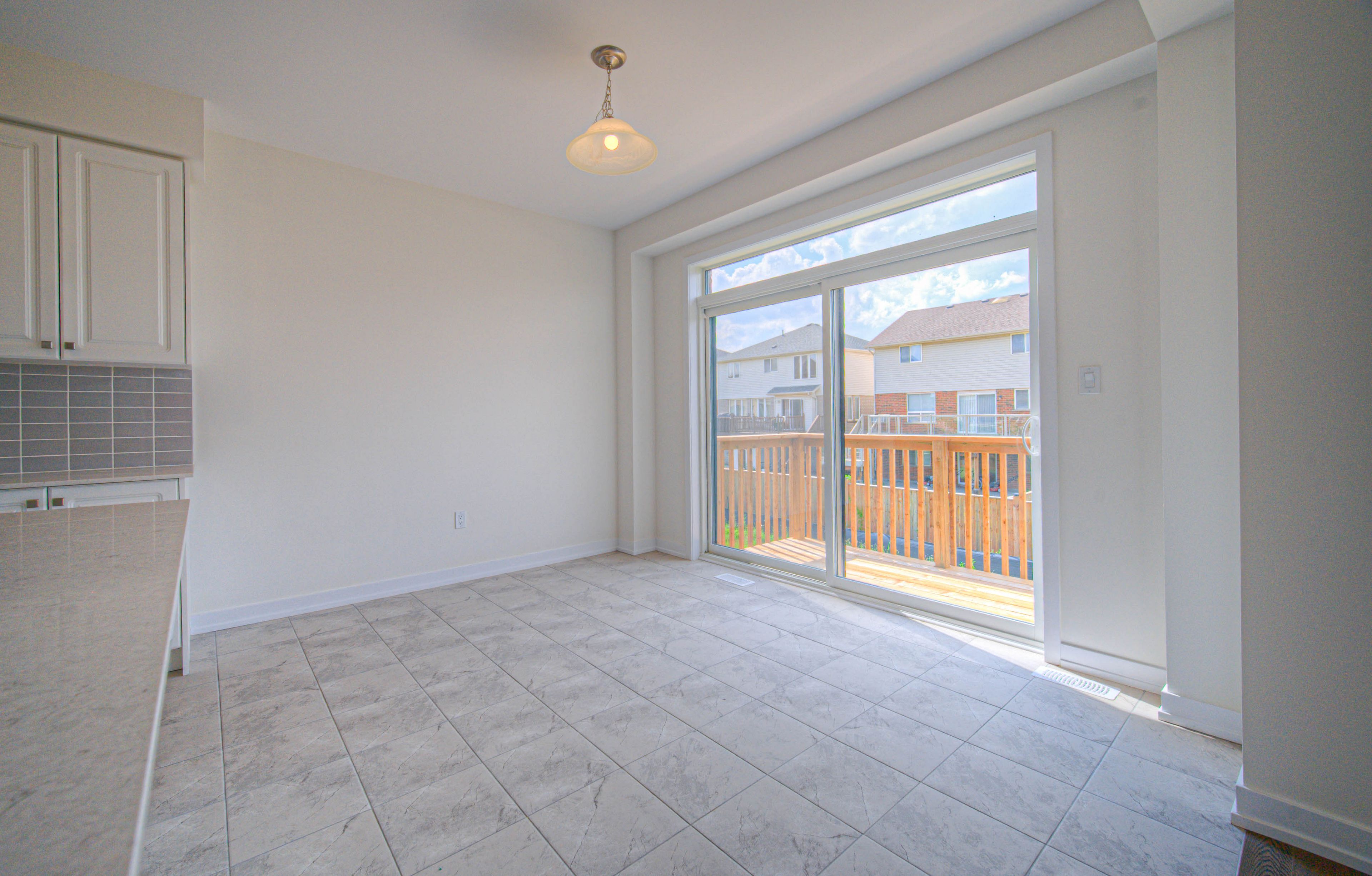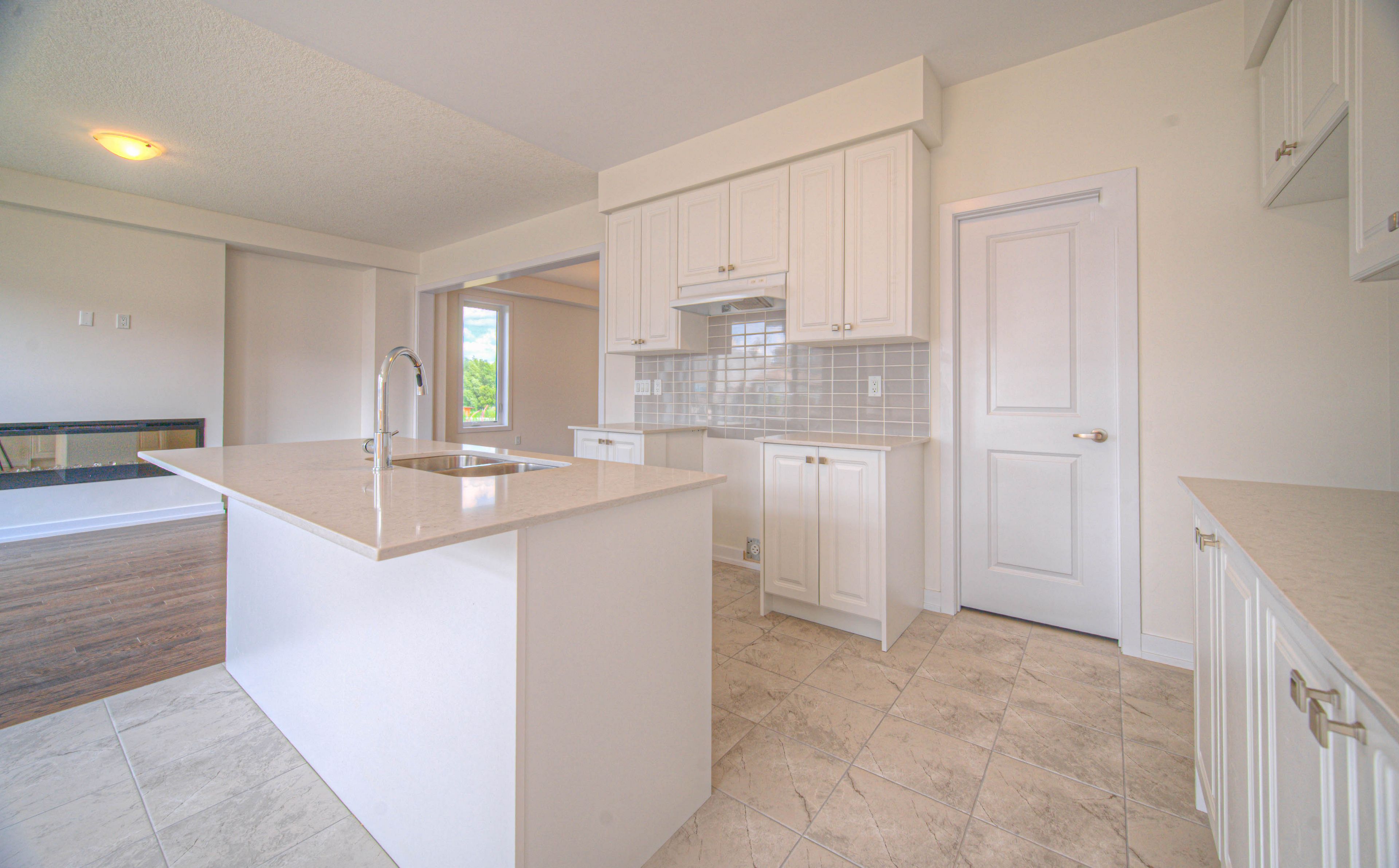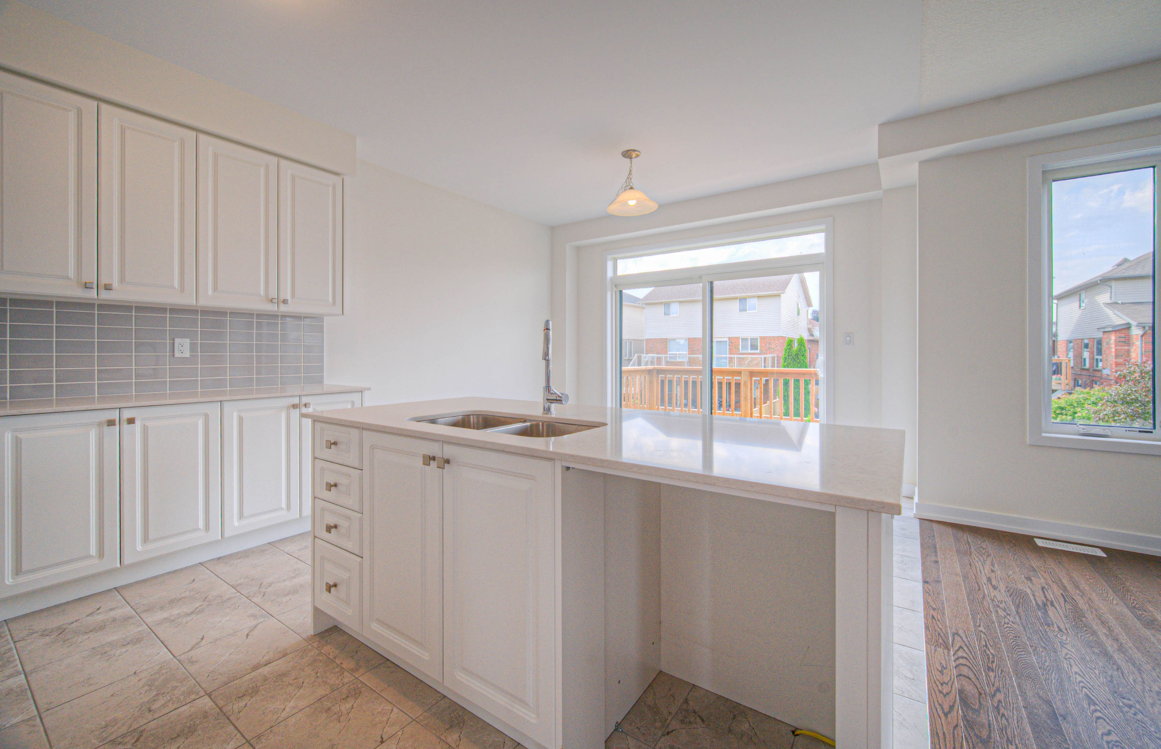 • Chef's kitchen with quartz countertops and a charming patio.