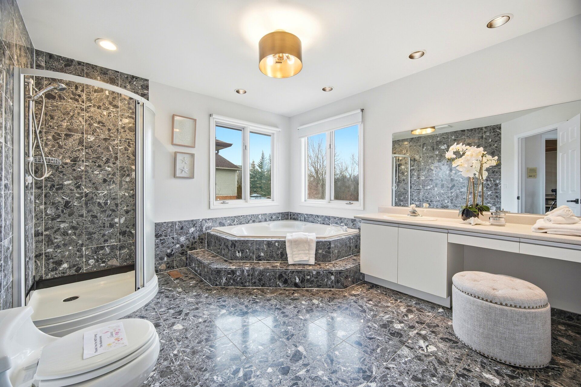 Welcome to 100 national drive, a stunning two-storey executive residence offering just under 3,400 sq. Ft. Of beautifully finished living space, plus an additional 2,095 sq. Ft. Of unfinished basement ready for your personal touch. Situated on a premium lot backing onto mature greenery and offering exceptional privacy, this home combines modern updates with thoughtful design and family-friendly functionality. Step inside to a bright and inviting main floor featuring a seamless layout with elegant formal living and dining rooms, a warm and welcoming family room with a gas fireplace, and a fully renovated kitchen (2025) complete with custom cabinetry, quartz countertops, stainless steel appliances, and a gas stove. A versatile office or flex room with private access from the garage offers the perfect space for working from home, hobbies, or additional storage. Freshly painted throughout and enhanced with new lighting (2025), the main level feels bright, comfortable, and move-in ready. The second floor offers four spacious bedrooms, each equipped with custom closet organizers. The primary suite features a walk-in closet and a well-appointed ensuite bathroom. Rich hardwood flooring flows throughout the entire upper level, adding warmth and timeless appeal. The 2,095 sq. Ft. Lower level provides excellent potential for future finishing, offering plenty of space for a recreation room, home theatre, gym, additional bedrooms, or an in-law suite. Additional highlights include a newly paved driveway with parking for up to six vehicles (2025), double-car garage, newer furnace (2020), owned hot water tank, and central air conditioning. Located in the desirable gershome neighbourhood on the hamilton mountain, this home offers the perfect balance of privacy and convenience, just minutes from parks, schools, shopping, and major commuter routes