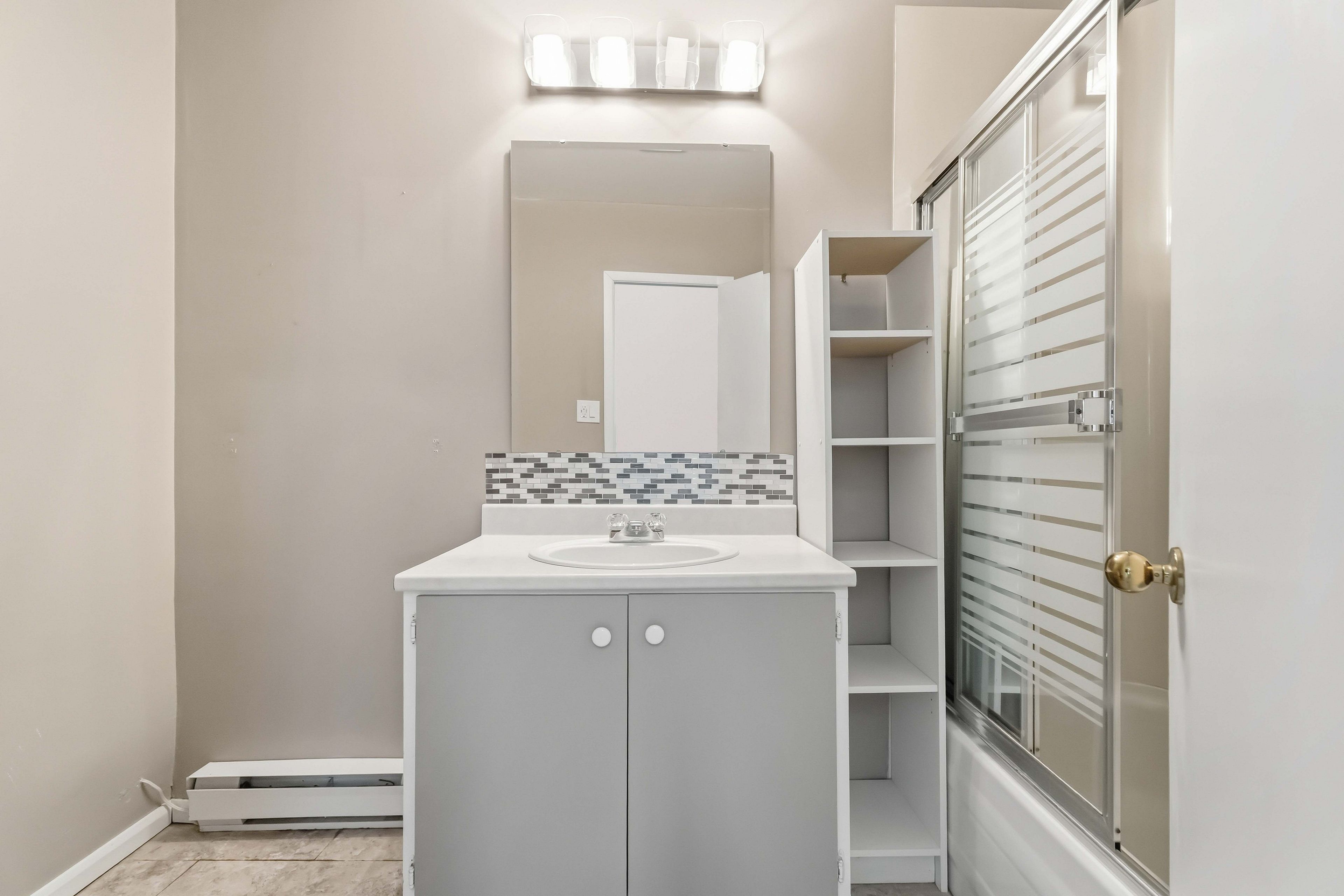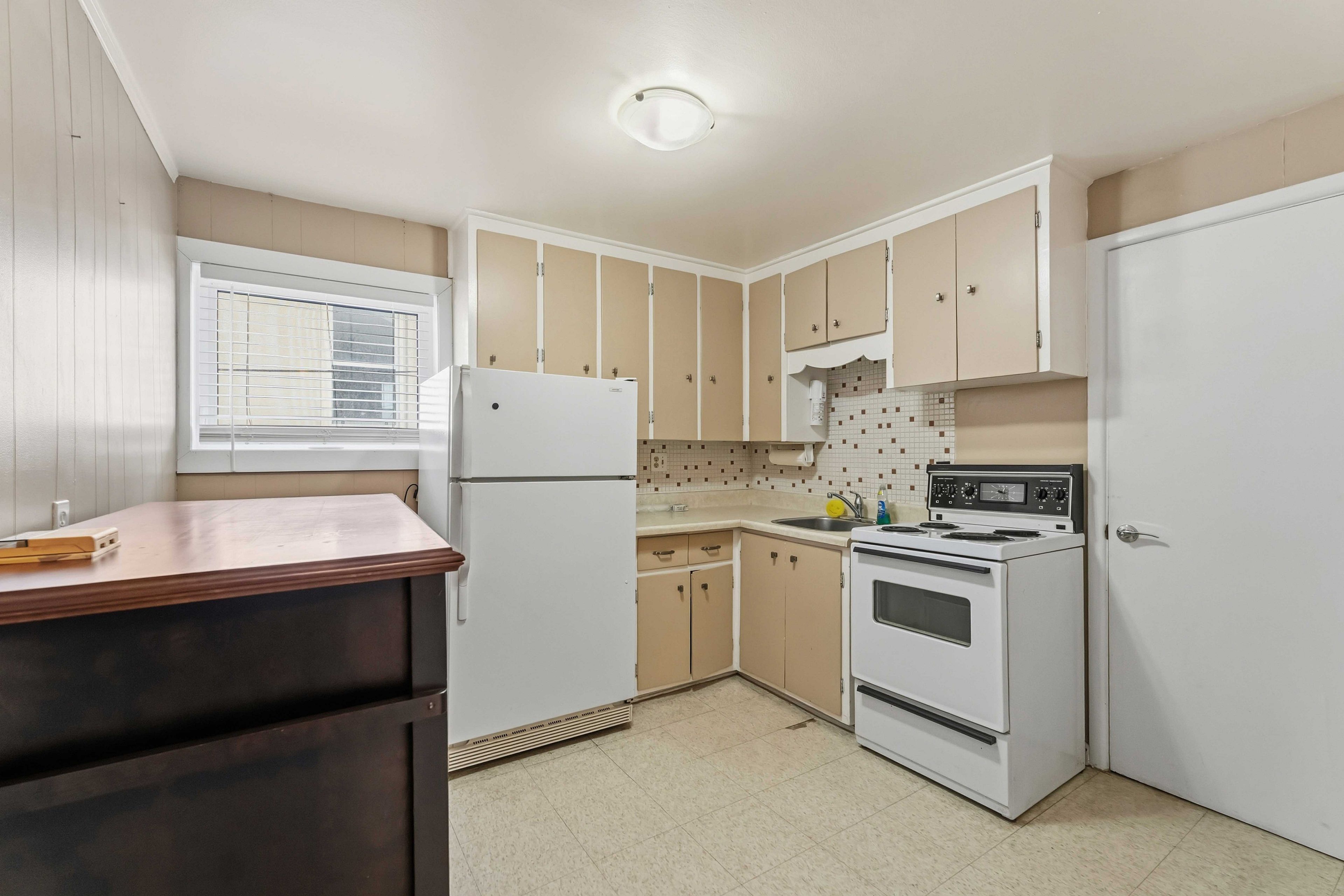• Upper unit includes separate entry, two bedrooms, and eat-in kitchen.