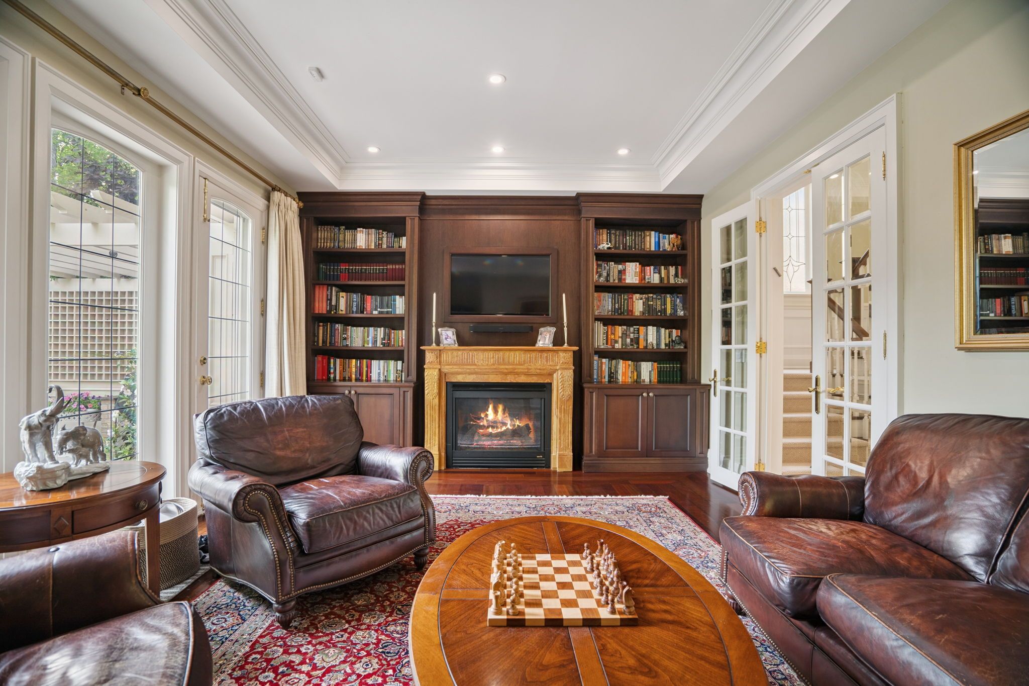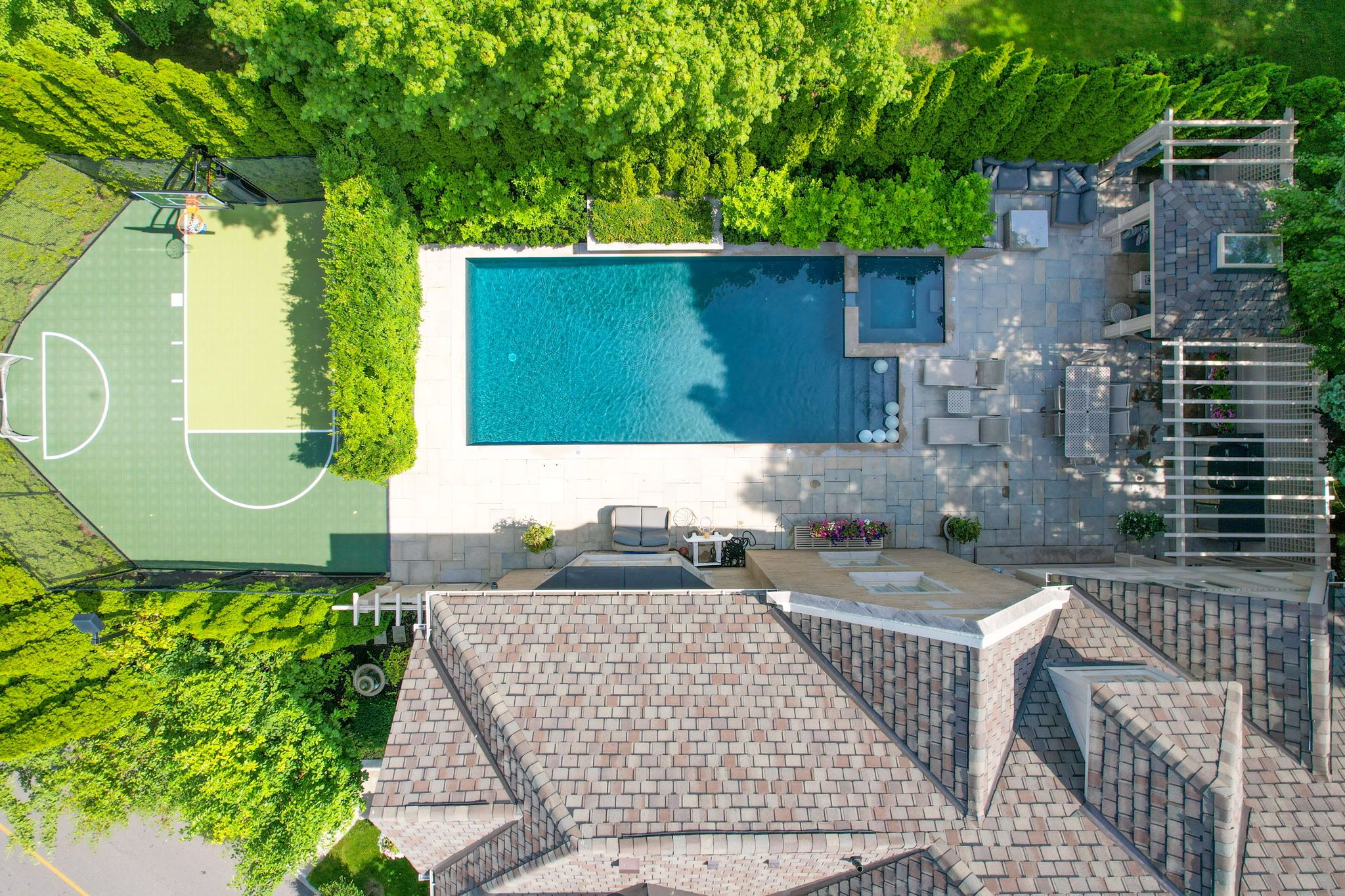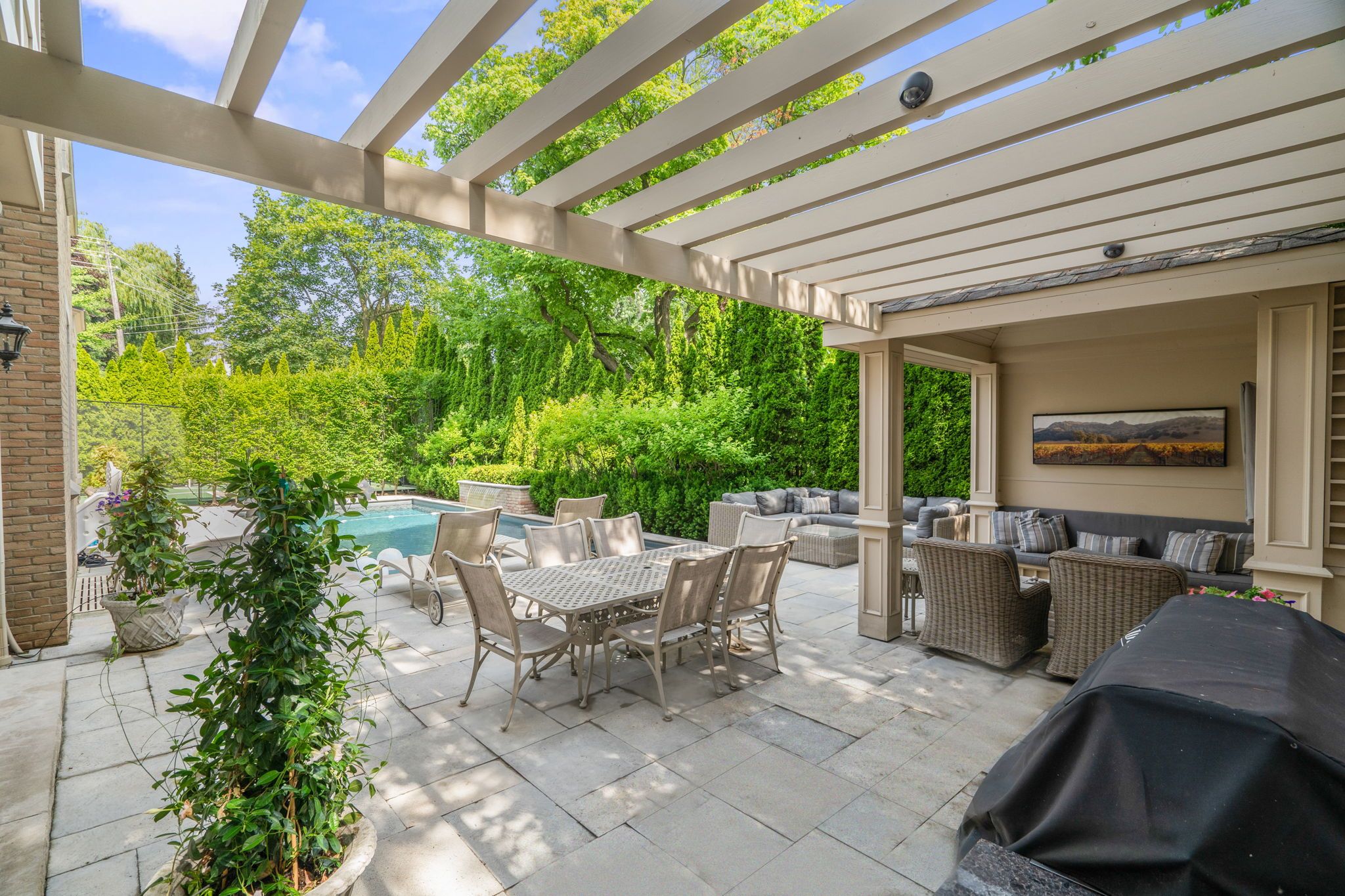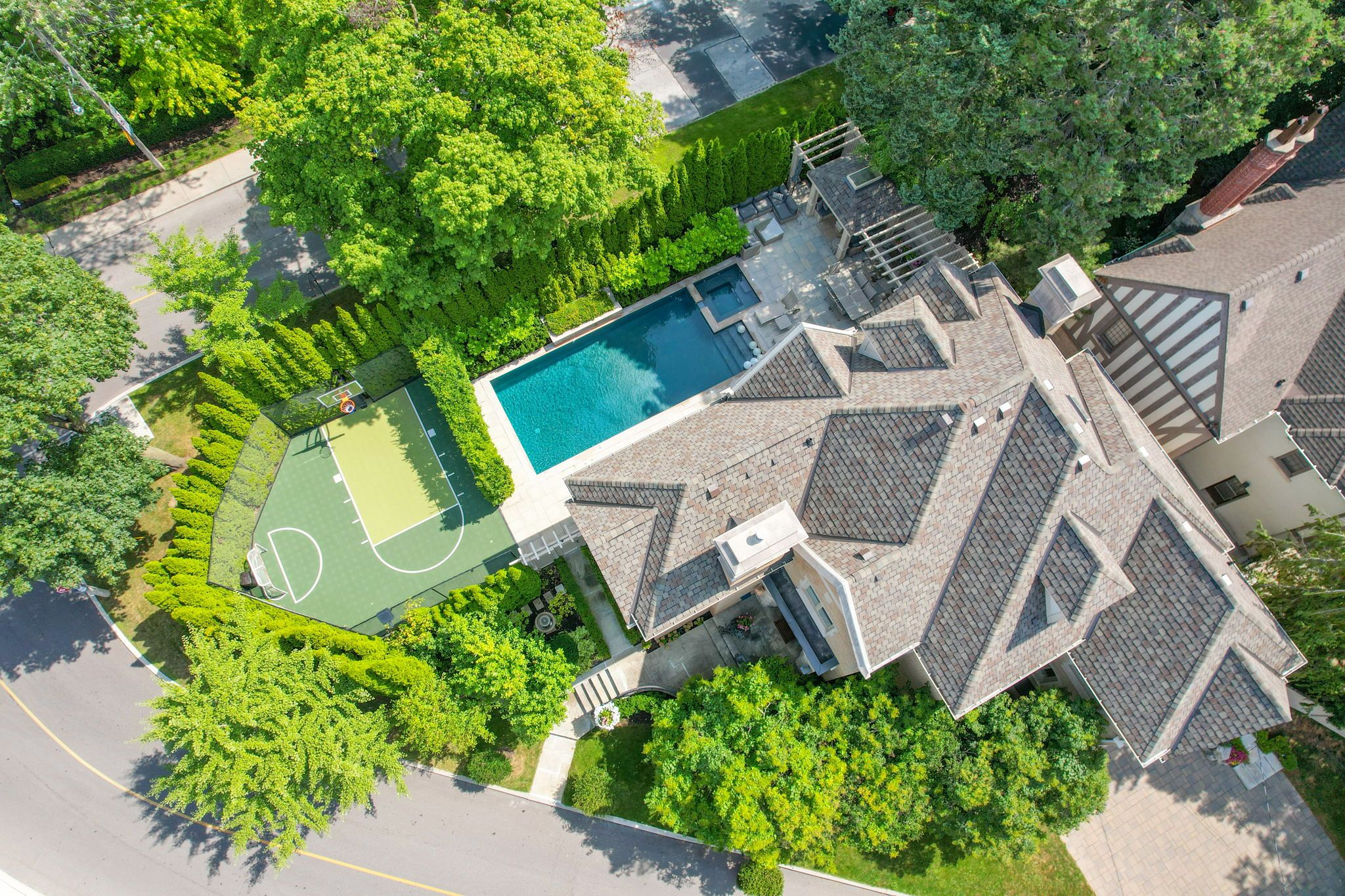 This stately tudor-style home with resort-like amenity rich rear yard of 100' in width. Classic elegance on one of forest hill's most prestigious streets. Nestled upon a stunning tree-lined premium juncture. Blending timeless charm with exceptional craftsmanship, including custom leaded windows, stone tile, rich hardwood floors, integrated speakers, crown moulding, wainscoting, and designer embellishments and lighting which grace every inch of its approximately 6,000 square feet of living space. The chef-inspired cameo crafted kitchen features wolf/sub-zero appliances, pot-filler, expansive counter space, and a bright breakfast area, perfect for effortless entertaining. Grand principal rooms complete the main level, along with a striking side staircase leading to four spacious bedrooms, each with its own ensuite and custom closets. The primary suite is a private retreat, offering wall-to-wall built-ins, a walk-in closet and lavish marble ensuite. Additional living spaces include a third-level great room which can be converted to a bedroom if needed, powder room and a fully finished lower level with a very convenient mudroom, nanny's suite, feature wet steam room with spa shower, recreation room and home theatre. This residence's rear gardens are equally impressive, with exquisite stonework, integrated lighting, irrigation and professional landscape design by renowned artist gardens. A charming english garden welcomes you, while the private backyard oasis (2020) features a built-in outdoor kitchen, pergola, cabana with gas firetable, multiple lounge areas, a todd pools built saltwater concrete pool with spa and waterfall, and a private sport court. A rare and refined offering designed for luxury & comfort.